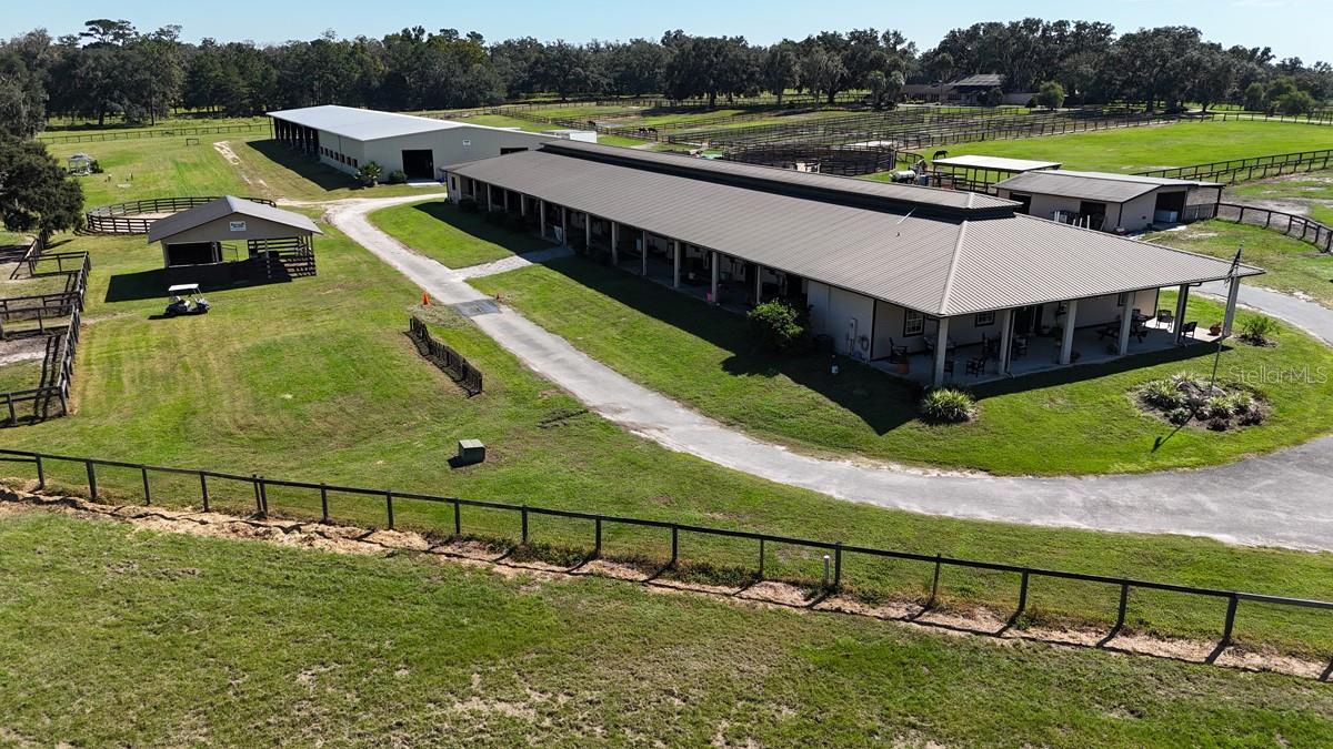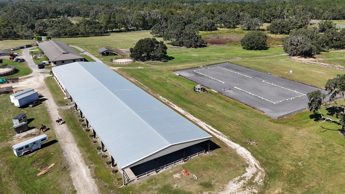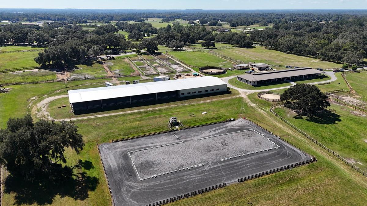 Bem-vindo ao Bocoy Stables, uma instalação requintada de treinamento e reprodução perfeitamente situada em 50 +/- acres de paisagens de tirar o fôlego, elaboradas por entusiastas equestres apaixonados. Esta propriedade excepcional possui vários celeiros especializados projetados para treinamento e potro, equipados com todas as necessidades que treinadores e criadores poderiam desejar. O principal celeiro abriga 22 barracas especificamente para éguas e potros reprodutores, enquanto um celeiro adjacente inclui 26 barracas, uma área coberta dedicada à limpeza e coleta de Fantasma e Galeo. O celeiro de potros é cuidadosamente projetado com seis barracas, cada uma equipada com câmeras de vigilância para monitoramento contínuo e um APT 1/1. Tanto o Barn Repremo quanto o celeiro de potros apresentam laboratórios de última geração, tornando esta instalação um cenário ideal para treinadores e criadores que buscam excelência. As comodidades adicionais incluem barracas espaçosas e emaranhadas, ventiladores de teto, prateleiras de lavagem interna e externa, barracas de limpeza, duas canetas redondas, um sistema de spray de mosca e um escritório de celeiro com ar-condicionado. Várias instalações de lavanderia, banheiros, salas de aderência e um edifício de armazenamento de alimentação e feno separado, todos mobiliados com câmeras de segurança, aprimoram a funcionalidade da propriedade. No total, existem 61 barracas complementadas por vários galpões, piquetes e pastagens pitorescas espalhadas por toda a fazenda. A arena principal, uma impressionante 80 'x 200', está equipada com a base GGT de alta qualidade, um sistema de irrigação avançado e um sistema de som premium, perfeitamente adequado para performances de estilo livre. Complementar a isso, a segunda arena mede aproximadamente 200 'x 300', apresentando um mirante de visualização e um campo de salto exuberante para o treinamento. Uma residência personalizada, com 2.709 vivos SF. Esta casa requintada é feita sob medida para entretenimento, inundada de luz natural e distinguida por uma planta harmoniosa. Inclui um layout atencioso de quartos divididos com três quartos privados e um banho de hóspedes lindamente projetado. Os tamanhos expansivos da sala, juntamente com uma infinidade de janelas grandes, criam uma atmosfera quente e convidativa. O elegante piso de madeira e azulejos elegantes adicionam um toque de sofisticação durante toda a residência. Saia para descobrir uma área generosa da piscina e um Lanai meticulosamente emparado, fornecendo um cenário idílico para reuniões e celebrações. Além da casa principal, a propriedade possui duas casas convidadas charmosas e um apartamento de celeiro, juntamente com duas conexões RV de 50 A e uma espaçosa garagem de RV de 40 pés para maior conveniência. Situado a apenas 6 quilômetros do renomado "Centro Equestre Mundial" dentro de uma área de preservação de terras agrícolas designada, esta localização privilegiada é ideal para todas as atividades equestres. O belos carvalhos vivos aprimora a paisagem pitoresca, complementada por duas entradas fechadas elétricas, garantindo acesso seguro a essa propriedade notável.