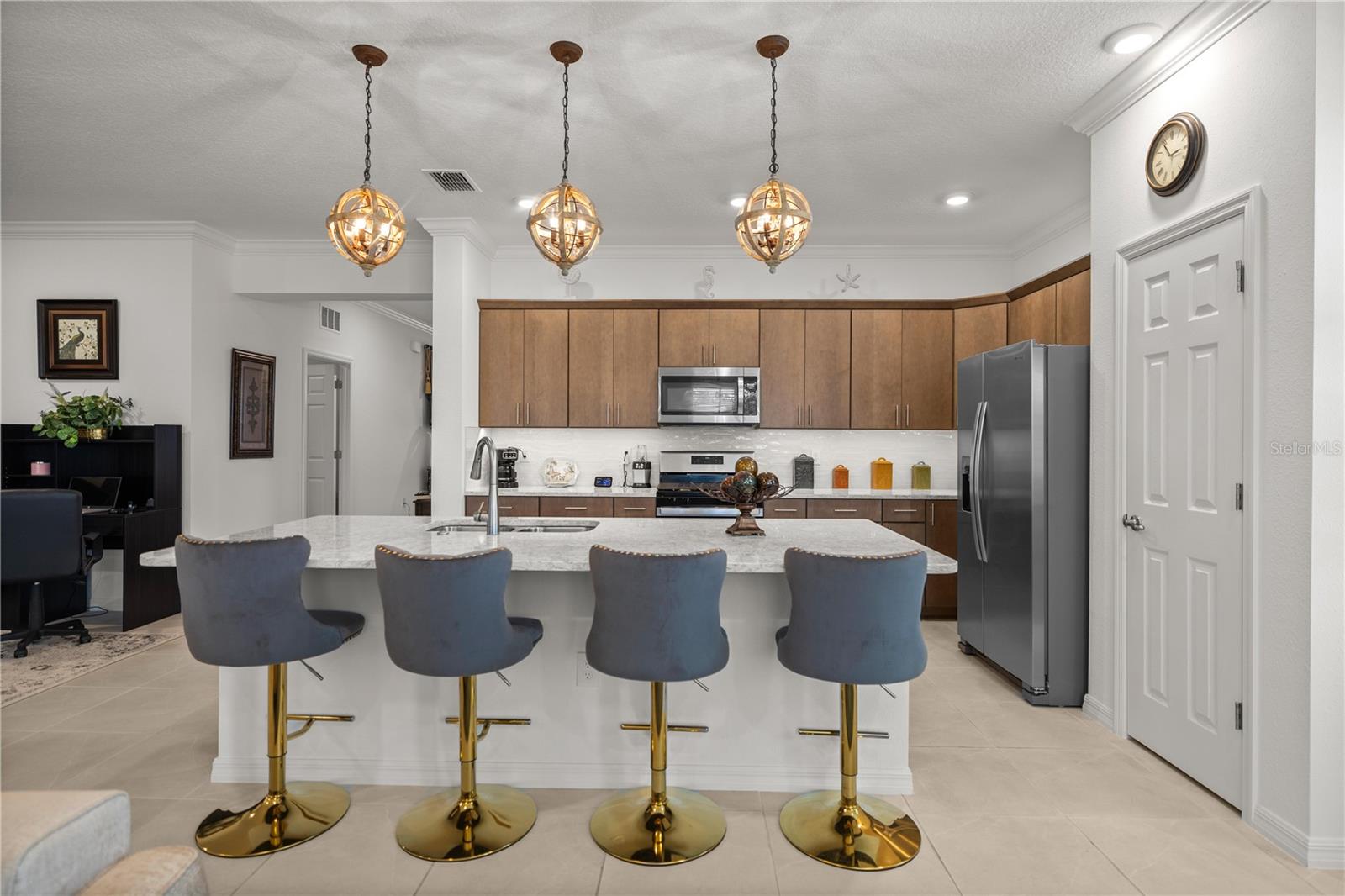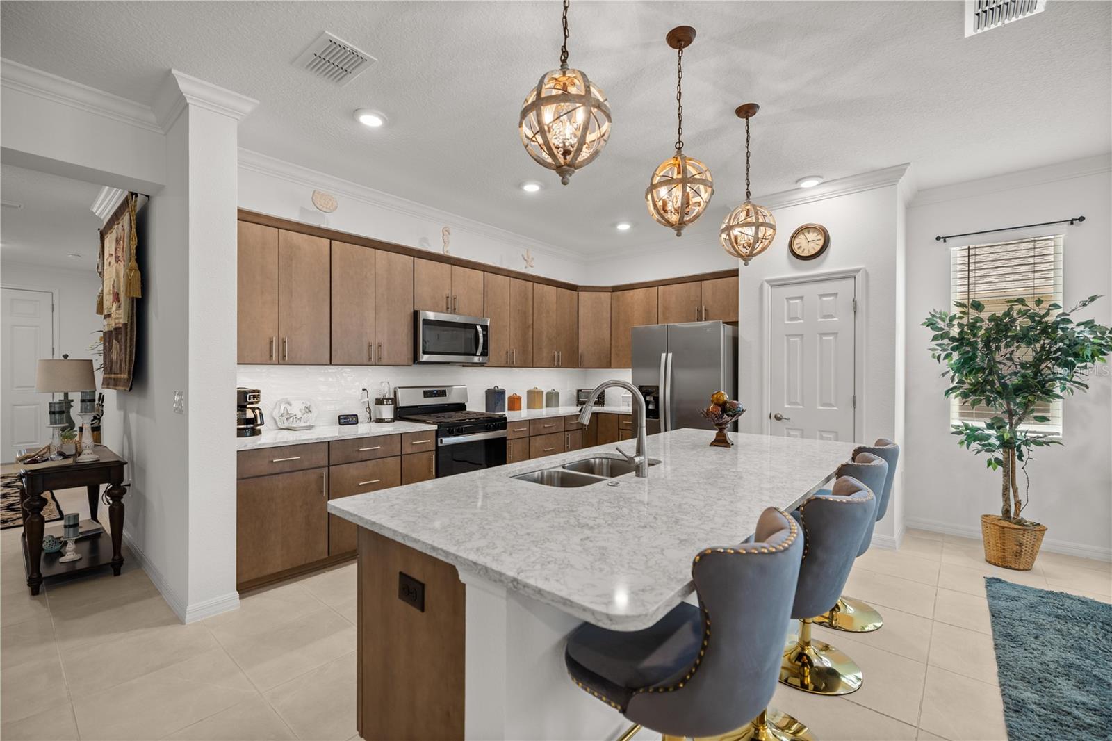 VENDEDORES MOTIVADOS! CASA INTELIGENTE! Modelo Sunflower 2023 pronto para morar em Weybourne Landing no On Top of The World. Esta casa SMART possui 3 quartos, 2 banheiros e uma garagem para 2 carros em um terreno paisagístico com mais de US$ 35 mil em atualizações. Os destaques incluem uma cozinha gourmet com bancadas de quartzo, ilha grande, iluminação sob o armário, eletrodomésticos de aço inoxidável e sancas por toda parte. A planta aberta conecta a cozinha, o jantar e a sala grande. A suíte principal oferece um amplo chuveiro de azulejos e acesso direto à lavanderia. Acessível para deficientes físicos com revestimento cerâmico 20x20 por toda parte. Aproveite a varanda com tela, a varanda frontal e a proximidade do clube, piscina, academia e muito mais. Perto de lojas, restaurantes, instalações médicas, Rainbow River e do Centro Equestre Mundial. Agende seu tour hoje – nenhuma oferta verbal será aceita.