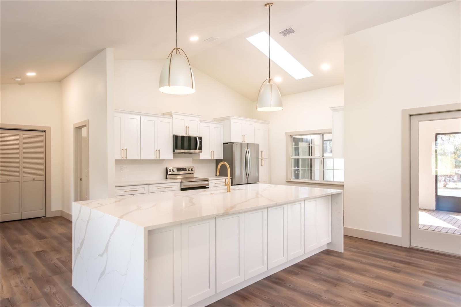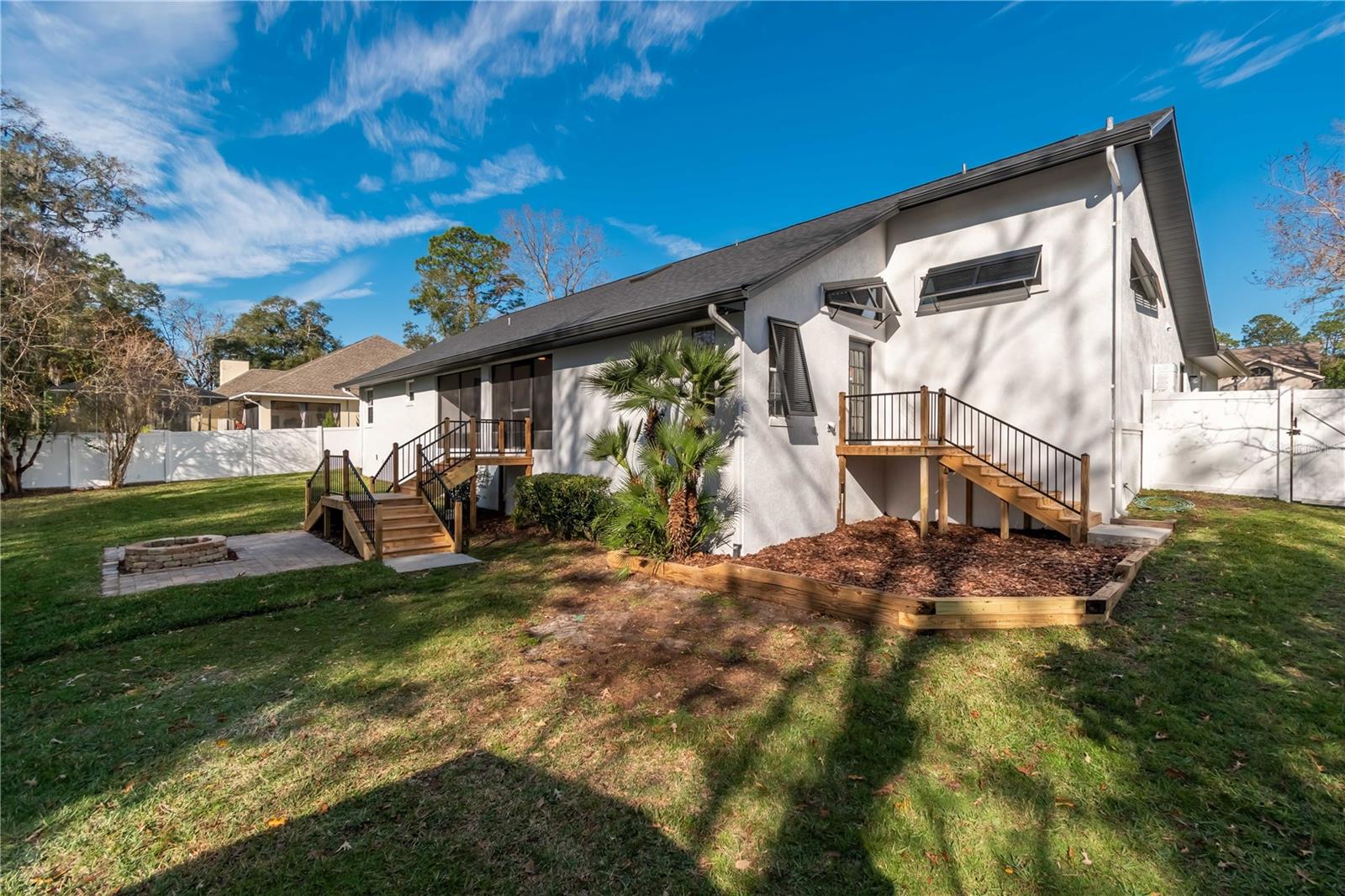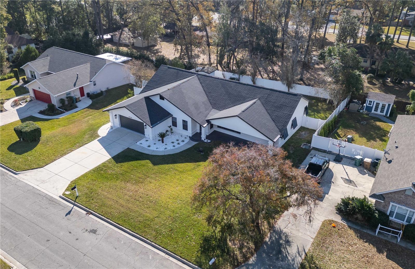 Situada no tranquilo bairro de Walnut Creek, a poucos minutos do centro de Ocala, esta casa lindamente renovada é imperdível! Repleta de apelo visual, a propriedade apresenta um telhado totalmente novo, pintura externa neutra e fresca, paisagismo simples, mas convidativo, com muito potencial para personalização e um espaçoso pátio frontal coberto completo com ventiladores de teto e amplo espaço para sentar ou vasos de plantas. Uma acolhedora entrada coberta dá o tom quando você entra. A ampla casa de 4 quartos e 2,5 banheiros oferece mais de 2.500 pés quadrados de espaço cuidadosamente projetado, com uma desejável planta aberta de quartos divididos e acabamentos de alta qualidade por toda parte. O hall de entrada flui facilmente para as áreas de estar, jantar e cozinha de conceito aberto, onde a conversa e a luz natural circulam livremente. A cozinha se destaca, com eletrodomésticos novos, armários de madeira maciça, backsplash de azulejos, claraboia, luminárias atualizadas e uma grande ilha central com balcão para café da manhã. A suíte principal é um retiro luxuoso, completo com acesso privado ao pátio traseiro e quintal, tetos altos, dois closets e banheiro privativo com banheira de jardim, pia dupla e box amplo. Uma lavanderia tranquila com armários embutidos e uma lavadora e secadora empilhadas novas está convenientemente localizada perto do lavabo e da entrada da garagem. Na parte de trás da casa, um pátio coberto com ventiladores de teto oferece um espaço relaxante para desfrutar de uma vista elevada do quintal. Desça até o deck que leva a uma aconchegante área de fogueira e ao amplo quintal cercado de privacidade, que também inclui um galpão de armazenamento adicional. A garagem anexa para 2 carros oferece soluções de arrumação extra com estantes embutidas e um recanto de arrumação. Localizada a poucos minutos de uma variedade de opções de compras, restaurantes, assistência médica e entretenimento em todo o vibrante centro de Ocala, esta casa oferece a combinação perfeita de estilo, conforto e conveniência para seu próximo proprietário!