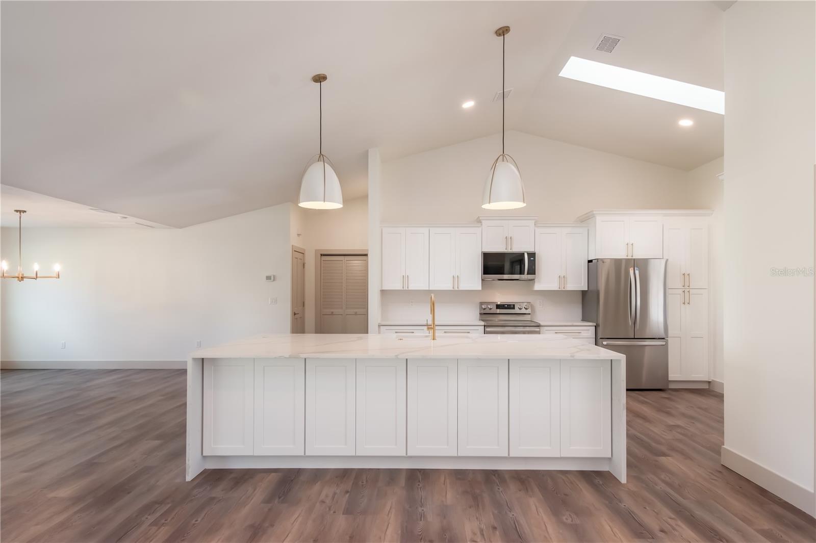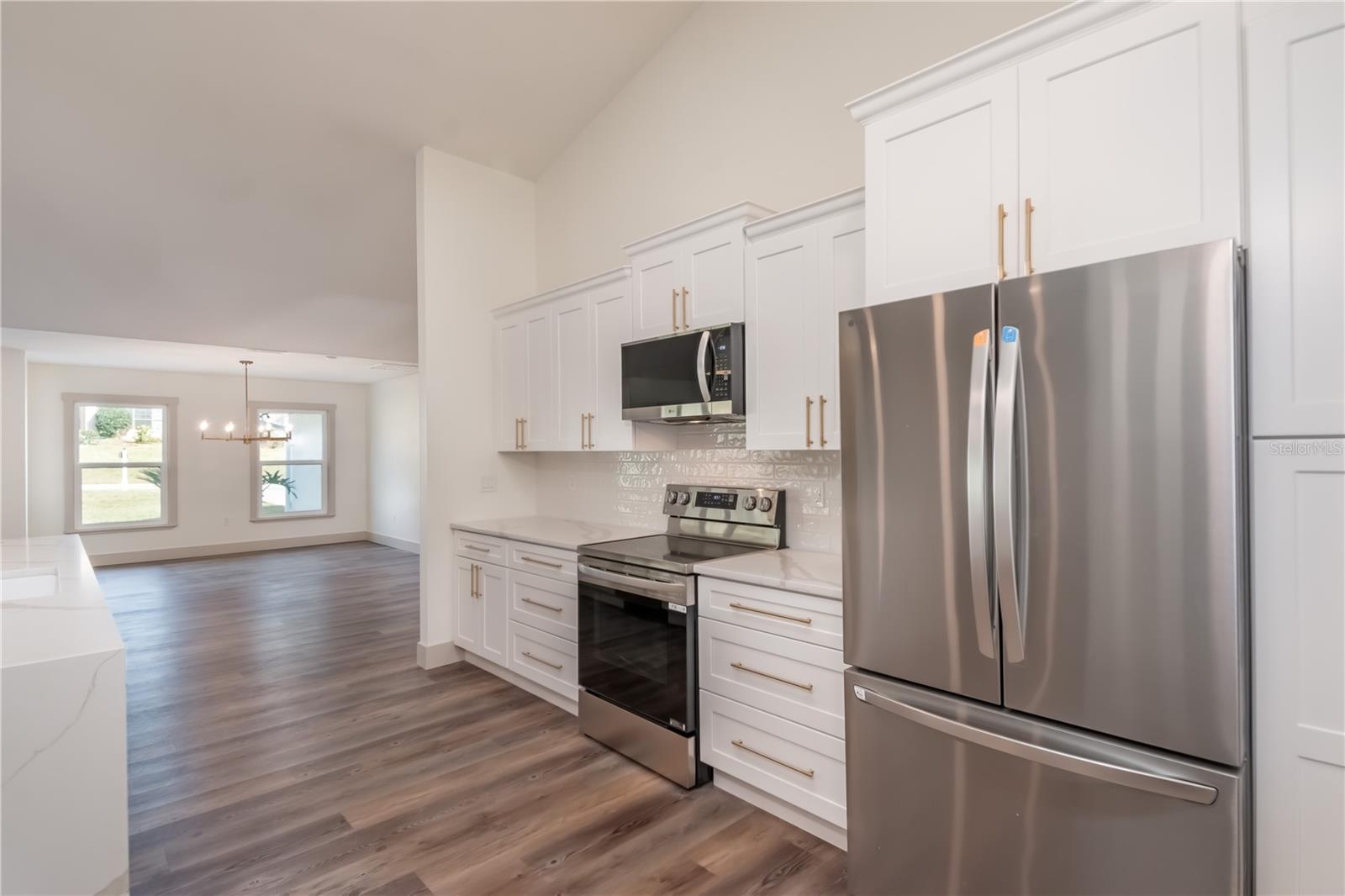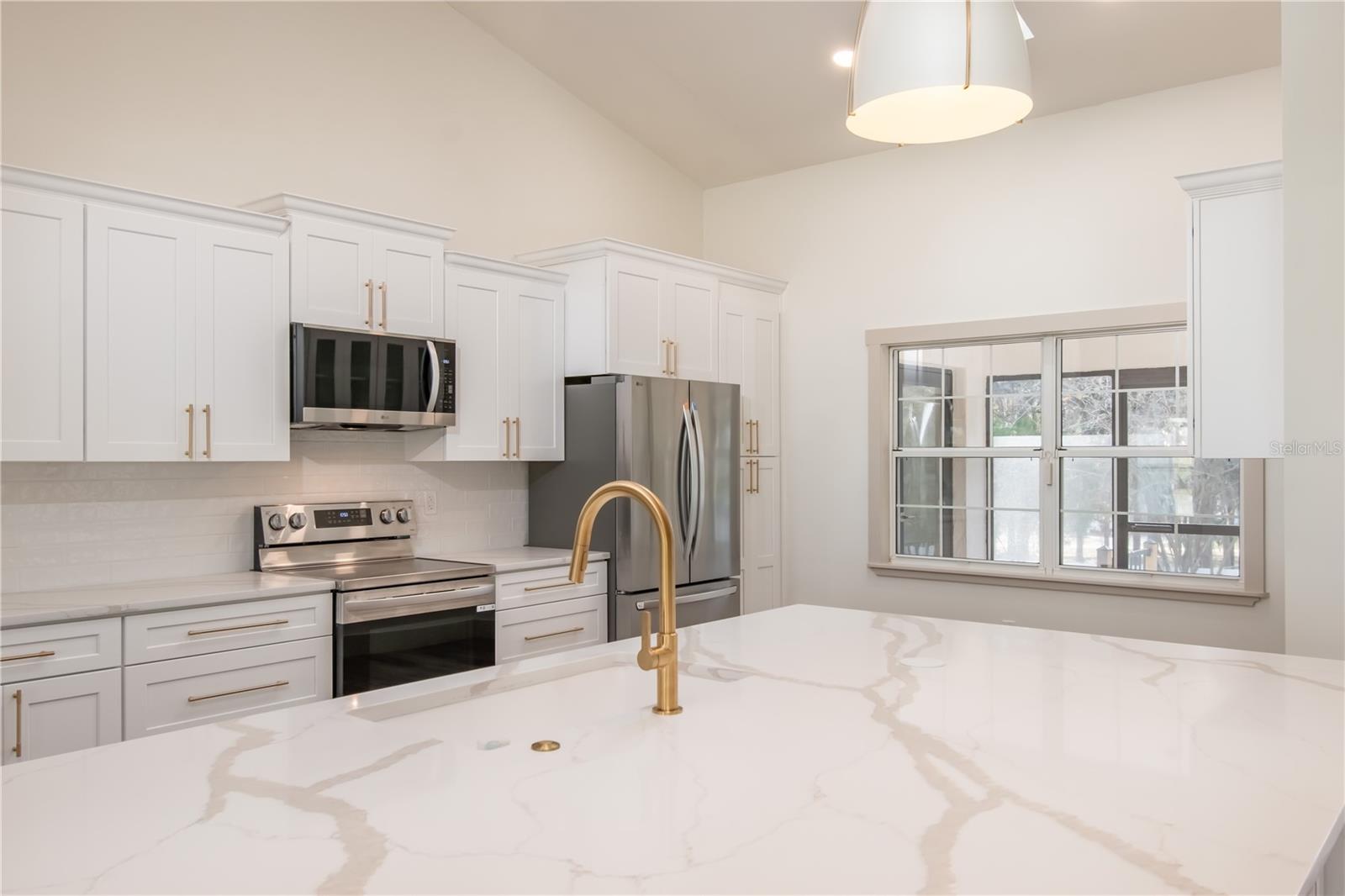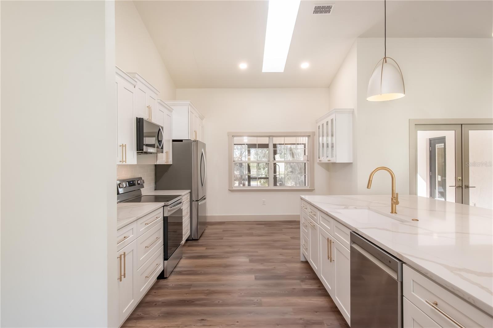 Situada no tranquilo bairro de Walnut Creek, a poucos minutos do centro de Ocala, esta casa lindamente renovada é imperdível! Repleta de apelo visual, a propriedade apresenta um telhado totalmente novo, pintura externa neutra e fresca, paisagismo simples, mas convidativo, com muito potencial para personalização e um espaçoso pátio frontal coberto completo com ventiladores de teto e amplo espaço para sentar ou vasos de plantas. Uma acolhedora entrada coberta dá o tom quando você entra. A ampla casa de 4 quartos e 2,5 banheiros oferece mais de 2.500 pés quadrados de espaço cuidadosamente projetado, com uma desejável planta aberta de quartos divididos e acabamentos de alta qualidade por toda parte. O hall de entrada flui facilmente para as áreas de estar, jantar e cozinha de conceito aberto, onde a conversa e a luz natural circulam livremente. A cozinha se destaca, com eletrodomésticos novos, armários de madeira maciça, backsplash de azulejos, claraboia, luminárias atualizadas e uma grande ilha central com balcão para café da manhã. A suíte principal é um retiro luxuoso, completo com acesso privado ao pátio traseiro e quintal, tetos altos, dois closets e banheiro privativo com banheira de jardim, pia dupla e box amplo. Uma lavanderia tranquila com armários embutidos e uma lavadora e secadora empilhadas novas está convenientemente localizada perto do lavabo e da entrada da garagem. Na parte de trás da casa, um pátio coberto com ventiladores de teto oferece um espaço relaxante para desfrutar de uma vista elevada do quintal. Desça até o deck que leva a uma aconchegante área de fogueira e ao amplo quintal cercado de privacidade, que também inclui um galpão de armazenamento adicional. A garagem anexa para 2 carros oferece soluções de arrumação extra com estantes embutidas e um recanto de arrumação. Localizada a poucos minutos de uma variedade de opções de compras, restaurantes, assistência médica e entretenimento em todo o vibrante centro de Ocala, esta casa oferece a combinação perfeita de estilo, conforto e conveniência para seu próximo proprietário!