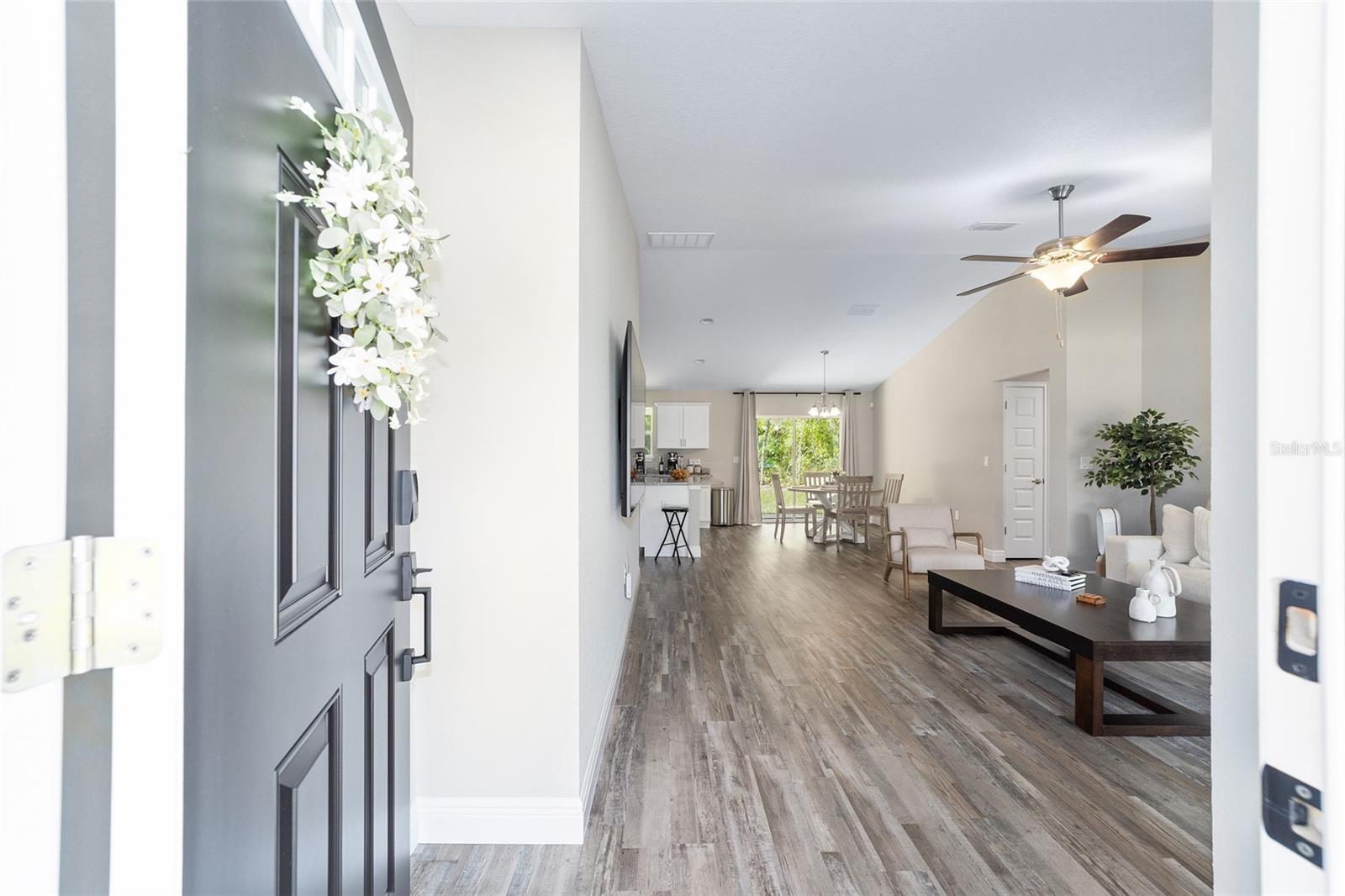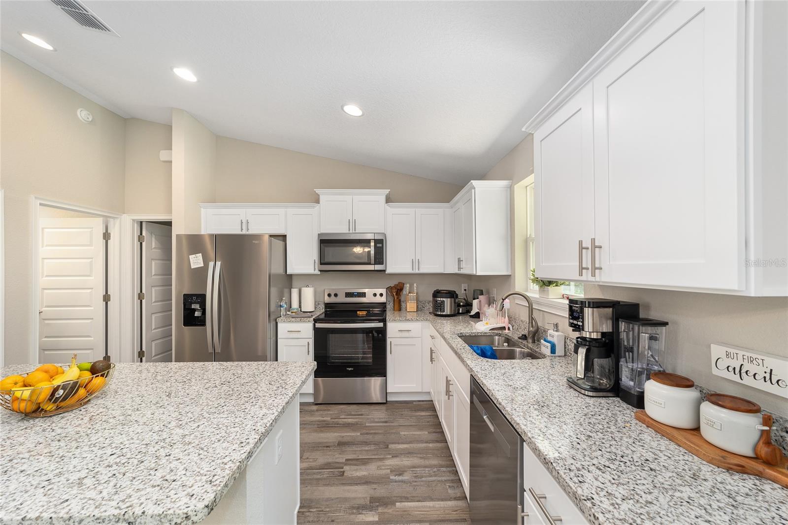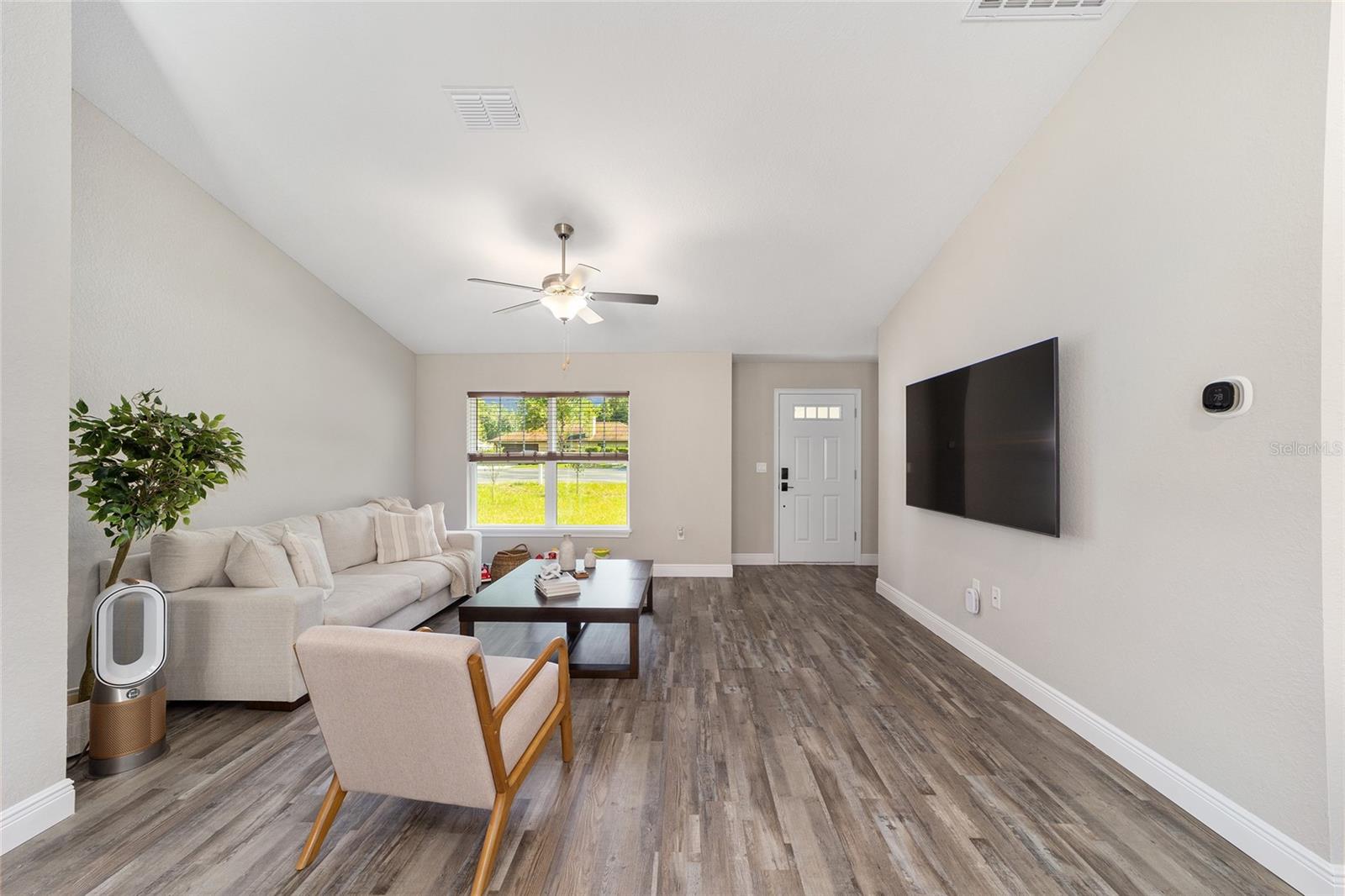 Em um terreno altamente desejável, esta casa possui 3 quartos com 2 banheiros completos. Viva de forma ampla com tetos abobadados ao entrar no layout de conceito aberto. A cozinha Eat-In, incluindo uma despensa convenientemente posicionada, é ideal para entretenimento com uma ilha grande com vista para a área de estar principal. A suíte principal possui tetos retangulares, closet, pia dupla e chuveiro embutido em azulejos. As características da casa incluem bancadas de granito e armários de madeira com fechamento suave. O piso em estilo de tábua é instalado em toda a casa e SEM TAPETE! O armário de roupa de cama no corredor de hóspedes e o armário interno na lavanderia são ideais para armazenamento adicional. Saia em seu pátio traseiro coberto - ventilador de teto incluído - com vista para seu quintal. A garantia do construtor está incluída - esta casa é imperdível. Pergunte sobre o fechamento de concessões de custos.