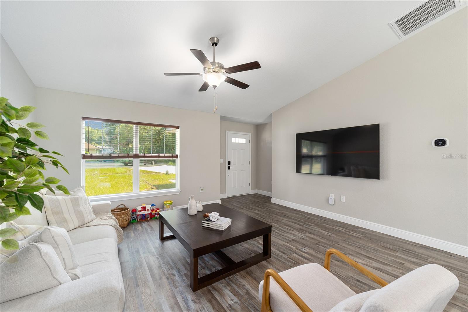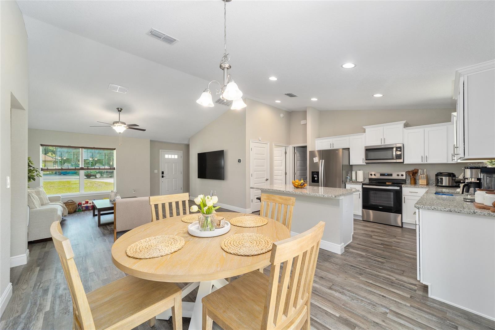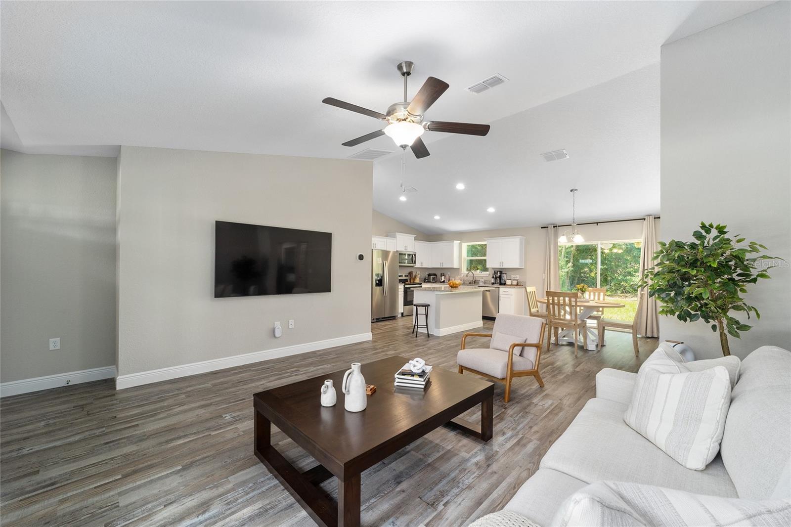Em um terreno altamente desejável, esta casa possui 3 quartos com 2 banheiros completos. Viva de forma ampla com tetos abobadados ao entrar no layout de conceito aberto. A cozinha Eat-In, incluindo uma despensa convenientemente posicionada, é ideal para entretenimento com uma ilha grande com vista para a área de estar principal. A suíte principal possui tetos retangulares, closet, pia dupla e chuveiro embutido em azulejos. As características da casa incluem bancadas de granito e armários de madeira com fechamento suave. O piso em estilo de tábua é instalado em toda a casa e SEM TAPETE! O armário de roupa de cama no corredor de hóspedes e o armário interno na lavanderia são ideais para armazenamento adicional. Saia em seu pátio traseiro coberto - ventilador de teto incluído - com vista para seu quintal. A garantia do construtor está incluída - esta casa é imperdível. Pergunte sobre o fechamento de concessões de custos.
