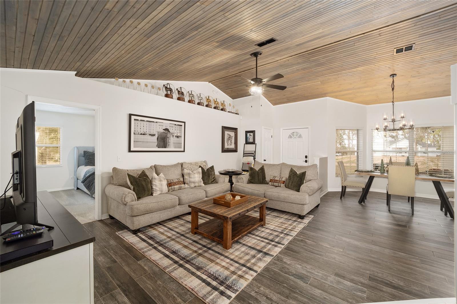 Novo preço nesta encantadora casa em colinas! O teto da catedral de madeira atualizado e as luminárias, juntamente com o piso de ladrilhos em forma de madeira e uma lareira aconchegante, faz você querer se reunir com a família. A cozinha também foi atualizada com bom gosto; Com bancadas em granito, aparelhos mais recentes, backsplash de ladrilhos, enorme pia da fazenda, nova área de bar embutida com geladeira de vinho e ainda um pouco de comer no local de sessão e assentos de barra de bancada para três. Uma boa planta baixa dividida, primária fora da sala de estar com seu próprio acesso aos rastreados em Lanai, armários dele e dela, dele e pias, separam a banheira e caminham no chuveiro. Lavanderia dentro da lavanderia mais a garagem que se tornou uma sala flexível sob calor e ar. Também não se esqueça do workshop/garagem 30x40 para o seu equipamento e armazenamento de brinquedos com 2 portas, água, elétrica, uma unidade CA de janela e isolamento. A casa fica no meio dos 2,31 acres, o que permite a distância dos vizinhos e esse país se sente a alguns minutos da West Highway 40 e um trajeto fácil para praticamente qualquer lugar; Apenas 15 minutos para o WEC, 20 a hits e 25 para o centro de Ocala.