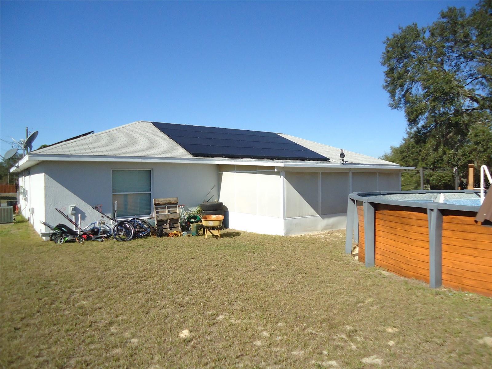 Convenientemente localizado perto do Lago Weir HS e não muito longe de Ocala ou The Villages. Quintal cercado com 2 portões e uma excelente varanda fechada nos fundos, bem como um deck aberto. A piscina de 24 pés de diâmetro acima do solo precisa de algum TLC. Este plano de divisão 3/2 tem uma lavanderia interna e uma bela sala de estar/jantar/cozinha aberta. Garagem para dois carros. Conjunto de painéis solares! Terreno limpo sem árvores. Prédio novo na área, mas sem muito trânsito.