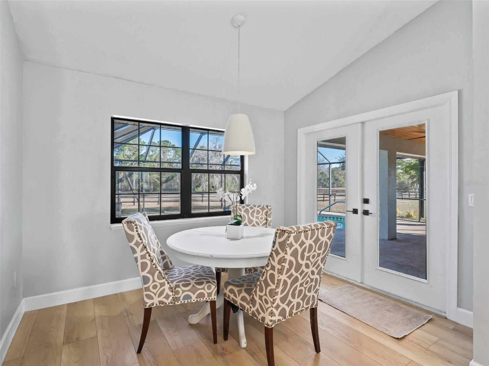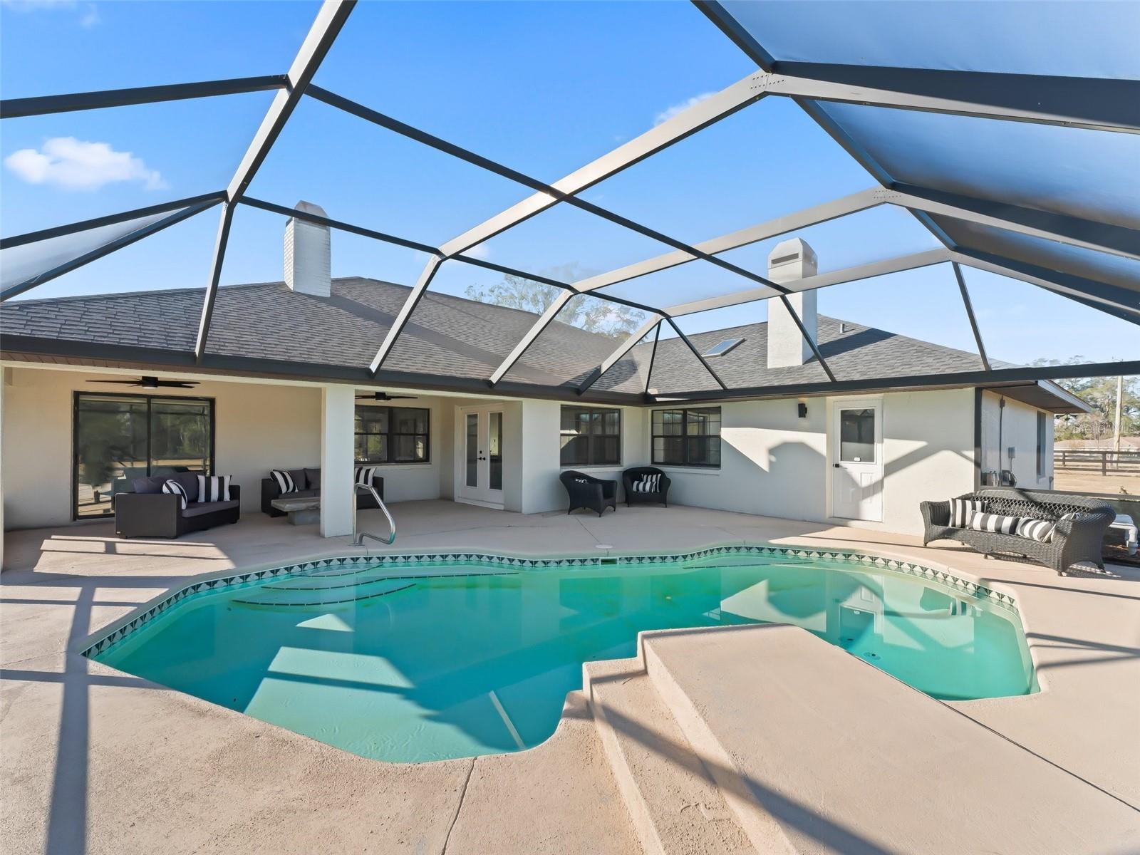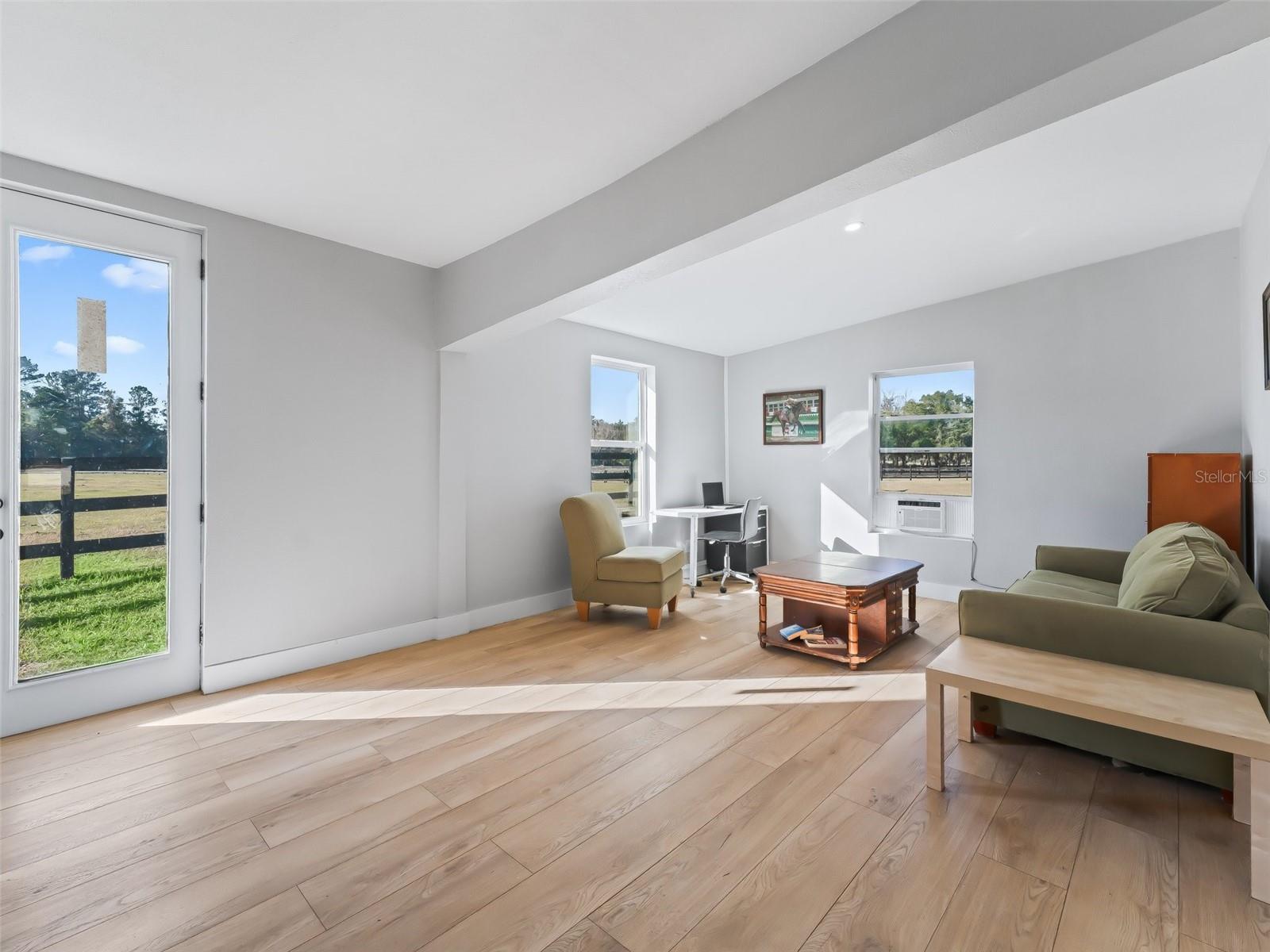 Fazenda turnkey excepcional de mais de 10 acres localizada na bela área de preservação das terras agrícolas do corredor dourado. A fazenda está convenientemente localizada a apenas 5 minutos para o WEC e 10 minutos para acertar, tornando-o excepcionalmente bem posicionado! Esta impressionante residência de 5 quartos e 3 banheiros foi completamente remodelada e atualizada da cabeça aos pés! A casa não apenas possui todos os novos telhados, mecânicos atualizados, elétricos e encanamentos, mas também possui um interior elegante com acabamentos luxuosos por toda parte. Apaixone -se pelo piso plano aberto, cozinha gourmet e ilha com vista para a área de estar com vista para a piscina e fazenda. A casa também tem um plano de quarto dividido, área de escritório separada e asa mestre separada, tornando -a uma casa que todos vão adorar! A piscina de água salgada remodelada é coberta por uma nova gaiola de tela que oferece um local deslumbrante para relaxar e ver os piquetes exuberantes. A fazenda é completa com um celeiro de corredor central personalizado de 7 barraca, com áreas cobertas de lavagem e higiene. O espaço coberto adicional foi cuidadosamente projetado para fornecer espaço para barracas adicionais (para permitir 11 no total) ou manter seus brinquedos e equipamentos secos e protegidos. O celeiro também possui uma sala de aderência 24x12, eficiência e banho. Adjacente ao celeiro, você encontrará uma arena de All Weather, recém -instalada e irrigada 60x 120 GGT. Seus cavalos vão adorar os grandes piquetes e a área cultivada e todas as conveniências de possuir uma fazenda tão bonita no coração da comunidade agrícola Ocala!
