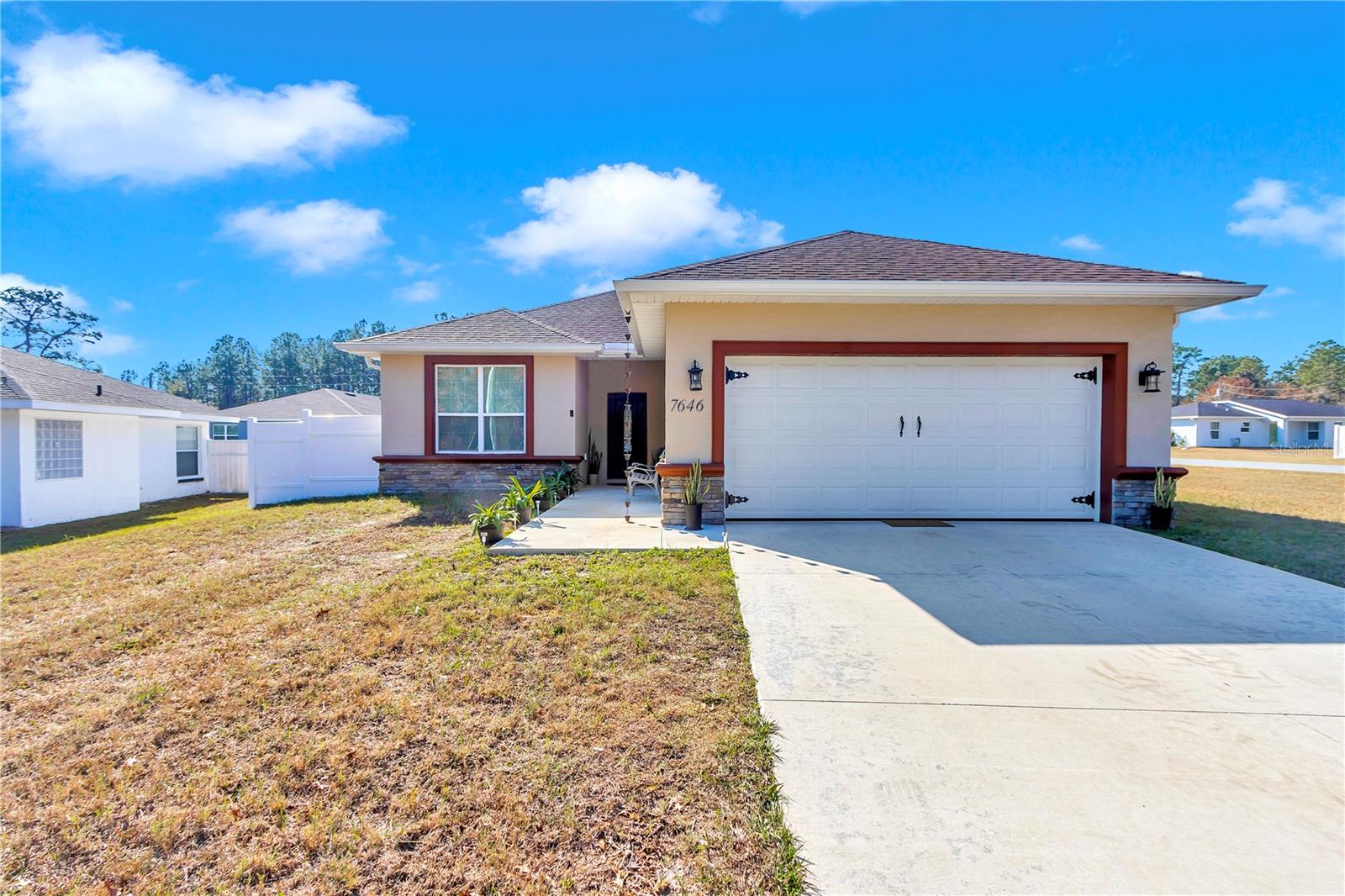 Casa personalizada e um achado raro em Marion Oaks (sem HOA e sem CDD) As atualizações e acabamentos de luxo nesta casa são como nenhum outro neste bairro. Um imperdível ver! Construído em 2024, situado em um lote de canto de grandes dimensões ** ao norte de 484. Esta casa tem 3 quartos e 3 banheiros nos quais todos os quartos têm seu próprio banheiro privativo. Este é um cenário ideal para as famílias que procuram algo semelhante a ter uma suíte de sogro. A casa apresenta tetos de 12 pés e elegantes ladrilhos de madeira de porcelana por toda parte, janelas grandes, criando uma estética perfeita e moderna. Armários de madeira personalizados de 42 polegadas, lindas bancada de granito, com atualizações de cozinha, como o preenchimento de panela de alcance, molduras de coroas de armários personalizados, pia personalizada, puxões personalizados e para cima, aparelhos de aço inoxidável "Samsung", juntamente com lavadora e secadora .. outras atualizações Inclua banho/chuveiros de azulejos de parede a parede, chuveiros e torneiras personalizados, portas e hardware de entrada personalizados e iluminação personalizada. Esta casa foi projetada para estilo e funcionalidade. O exterior é igualmente impressionante com cerca de vinil de 6 pés com portas de 6 pés, sistema de irrigação em torno da propriedade. Não perca a oportunidade de chamar isso de 2024 bem projetado para 2024 de sua nova casa. Agende sua exibição hoje!