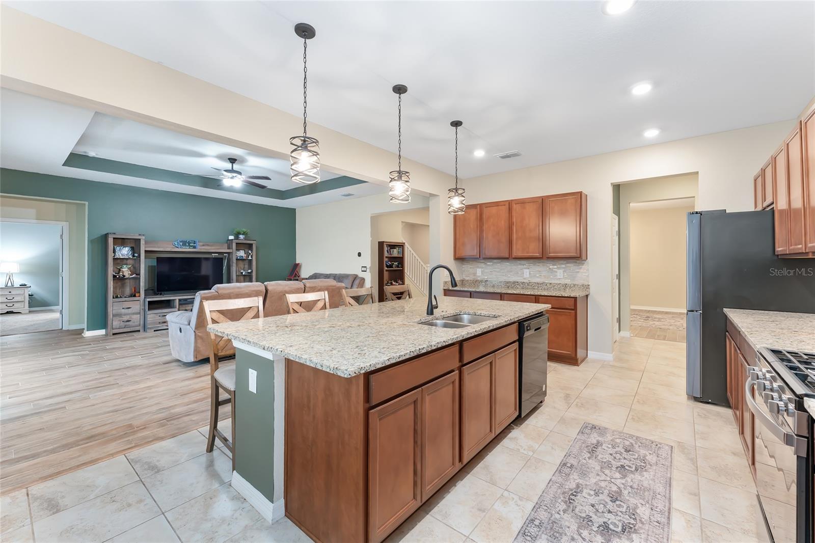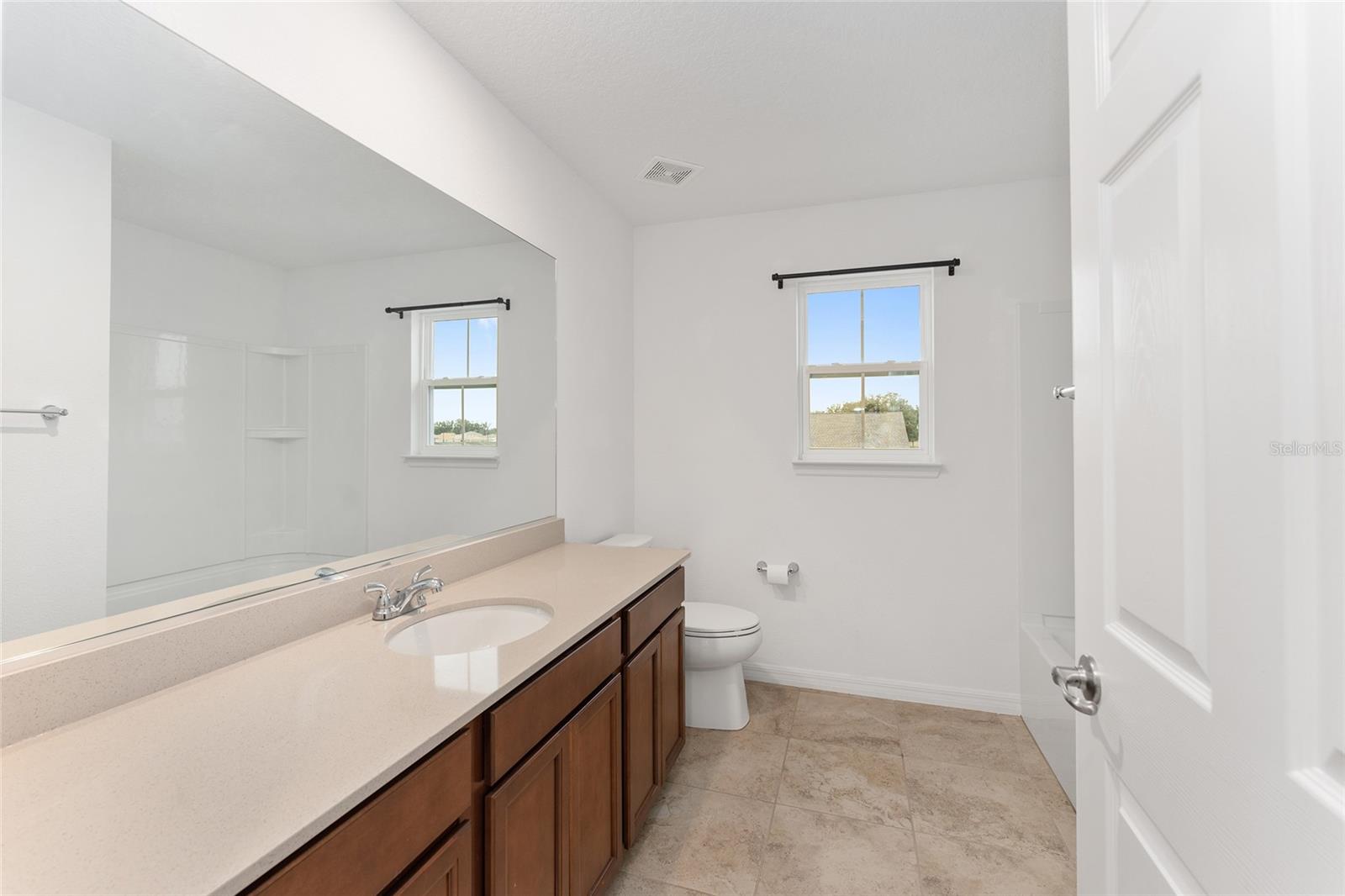 Bem -vindo para casa neste modelo de Jasmine, localizado no bairro de Roan Hills, no município de Calesa! Esta propriedade fica em um lote de canto e possui 4 quartos, 3 banheiros e 3 carros em tandem. O Jasmine oferece uma suíte primária no térreo com banho de 5 peças e entra no armário. O quarto 2 também está no andar de baixo e adjacente a um segundo banheiro completo. Sua cozinha possui uma gama de gás, muitos armários, uma grande ilha com assentos de bar e despensa. Há um espaço de jantar dedicado e um grande lanai coberto (34x12 pés) para entretenimento. No andar de cima, você apreciará o espaço do loft para o seu teatro ou hobbies. Os quartos e 4 estão no andar de cima e compartilham o terceiro banheiro completo. Com uma garagem em tandem de 3 carros, você tem muito espaço para suas bicicletas, carrinho de golfe e outros brinquedos. Outras atualizações para a casa incluem uma varanda da frente envolvente, sotaque de pedra no exterior, tetos de bandeja, pacotes de iluminação adicionais e quintal cercado. O Township de Calesa é uma comunidade planejada mestre fechada, com uma piscina comunitária, splash pad, playground, quadra de basquete, caminhos de carrinho de golfe, parques de cães e quilômetros de trilhas para caminhada. Sua baixa taxa mensal de HOA cobre o acesso às comodidades e uma associação à natação e treinamento aquáticos da Flórida (rápido) até 4 pessoas.