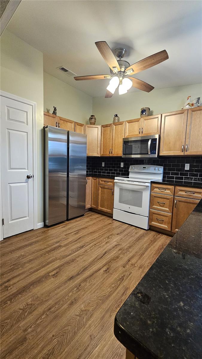 Esta casa de movimentação atualizada Ready possui um layout de plano dividido de 3 quartos e 2 banheiros na comunidade Palm Cay de 55 mais de residências unifamiliares em Ocala, FL. A comunidade oferece um portão guardado de 24 horas e tem uma baixa taxa de HOA. Novo telhado (2024), um painel de disjuntores de 200 A atualizado (2022), um novo revestimento de isolamento de 1/4 ”(2023), uma nova porta de entrada de garagem (2023) e uma nova porta da frente e janela da sala de lavanderia (2023). O aquecedor de água tem apenas dois anos de idade e a casa tem uma nova qualidade de 6 paniltans e janelas. A sala apresenta tetos da catedral e uma bela janela de sacada de caixa. A cozinha remodelada também possui tetos de catedral e inclui armários de encerramento macio, bancadas em granito, um backsplash de azulejos e uma pia de aço inoxidável. Os banheiros renovados consistem em um banheiro principal com um chuveiro e um segundo banheiro com uma banheira. Uma garagem para dois carros de 20 'x 20' que inclui uma porta de garagem resistente, uma nova porta de entrada e uma nova janela. O lanai de 10 'x 18', convenientemente localizado na área de cozinha/jantar, possui um controle deslizante mais recente com janelas fechadas de slides. A espaçosa lavanderia inclui um armário de armazenamento e vem com uma lavadora e secadora e pia de utilidade. As comodidades comunitárias incluem um grande clube com uma biblioteca, sala de bilhar, sala de cartas, sala de artesanato e uma cozinha de catering. Os moradores podem desfrutar de uma piscina externa. Esta casa está convenientemente localizada no sudoeste de Ocala, a uma curta distância das compras, restaurantes, Hospitais Equestres, VA e outras instalações de saúde. Os carrinhos de golfe são permitidos e o armazenamento de RV/barco pode estar disponível por uma taxa mensal. A propriedade fica a minutos da I-75, uma hora de Gainesville e uma hora e meia da Disney.