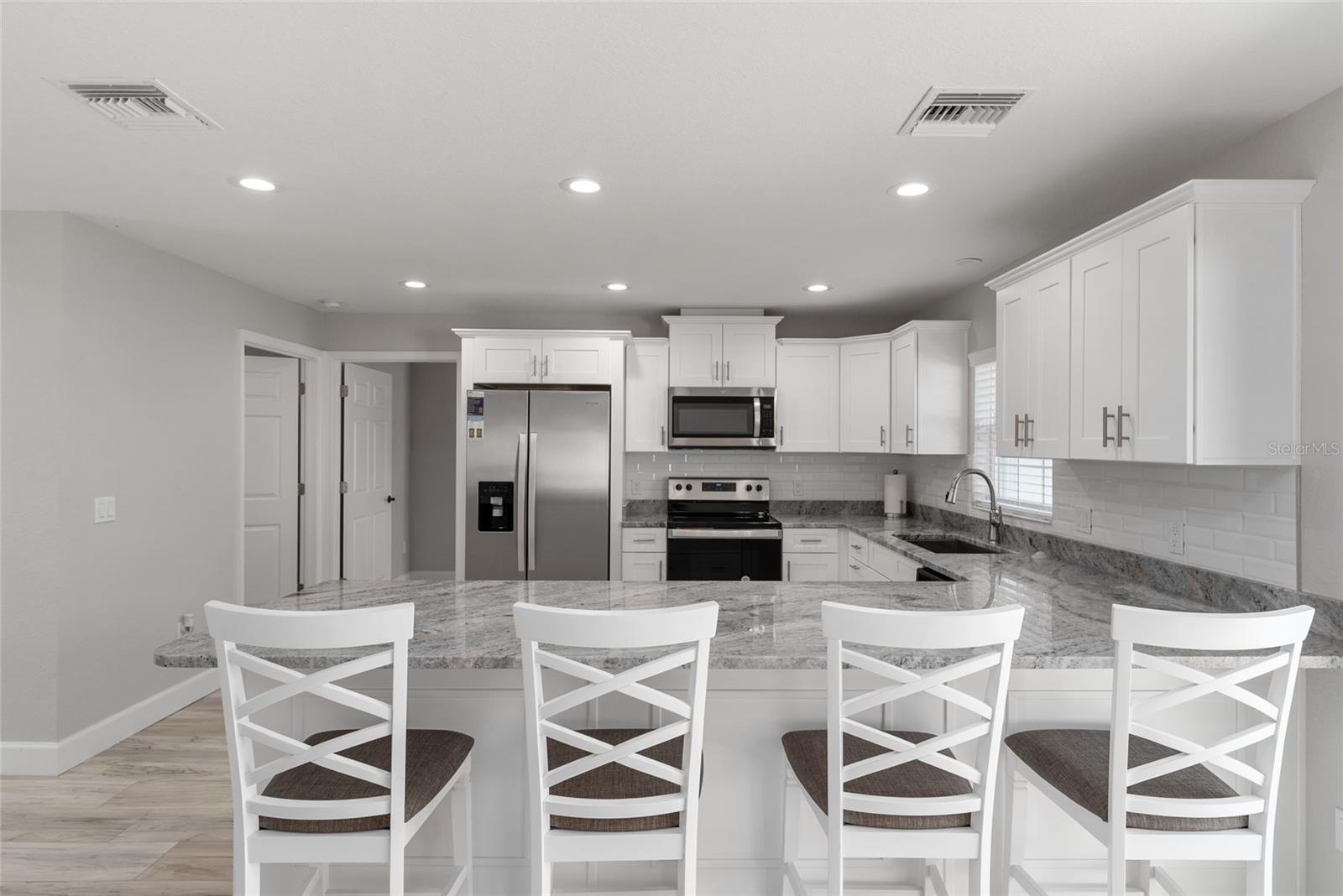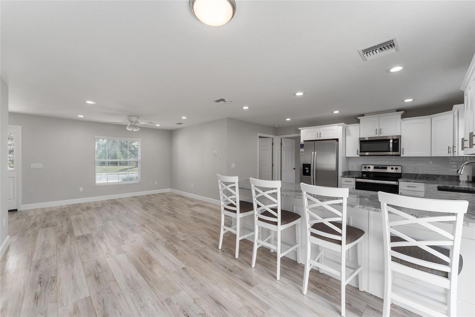 Descubra a mistura perfeita de luxo moderno e confortável vivendo neste lindamente projetado de 3 quartos | Casa de 2 banheiros situada em um espaçoso lote de canto na desejável comunidade de Oaks de outono. Ao entrar, você será recebido por uma planta baixa brilhante e arejada que promove um fluxo contínuo nos espaços de estar. O interior recém -pintado exala uma vibração contemporânea, destacada por equipamentos elegantes e pisos premium que criam uma atmosfera convidativa. O coração da casa - a cozinha - é uma delícia de chef! Este oásis culinário possui bancadas de granito elegantes, utensílios de aço inoxidável de última geração, um chique de backsplash de ladrilhos de metrô e uma conveniente descarte de lixo alojada dentro da elegante pia de drop-in. Você vai adorar a barra de café da manhã de 10 pés, perfeita para refeições casuais ou convidados divertidos. Retire para o quarto primário sereno, projetado para relaxamento e conforto. Este espaço tranquilo apresenta um luxuoso banheiro privativo completo com vaidades duplas, um espaçoso chuveiro e um closet considerável para todas as suas necessidades de armazenamento. No lado oposto da casa, você encontrará dois generosos quartos de hóspedes, cada um equipado com closets, proporcionando amplo espaço para a família ou os visitantes. Esses quartos compartilham um banheiro elegante de hóspedes com uma vaidade com tampo de granito de 5 pés e uma banheira/chuveiro combo conveniente. A praticidade encontra conforto com uma garagem de dois carros que oferece acesso direto à casa, além de uma porta de entrada lateral adicional que leva ao quintal lateral. Desfrute de paz de espírito nesta comunidade restrita de ações, completa com calçadas adoráveis para passear sem o fardo das taxas do HOA. Abrace o estilo de vida vibrante que Ocala, FL, tem que mostrar nesta residência lindamente decorada. Não perca a chance de chamar isso de casa imaculada de sua!