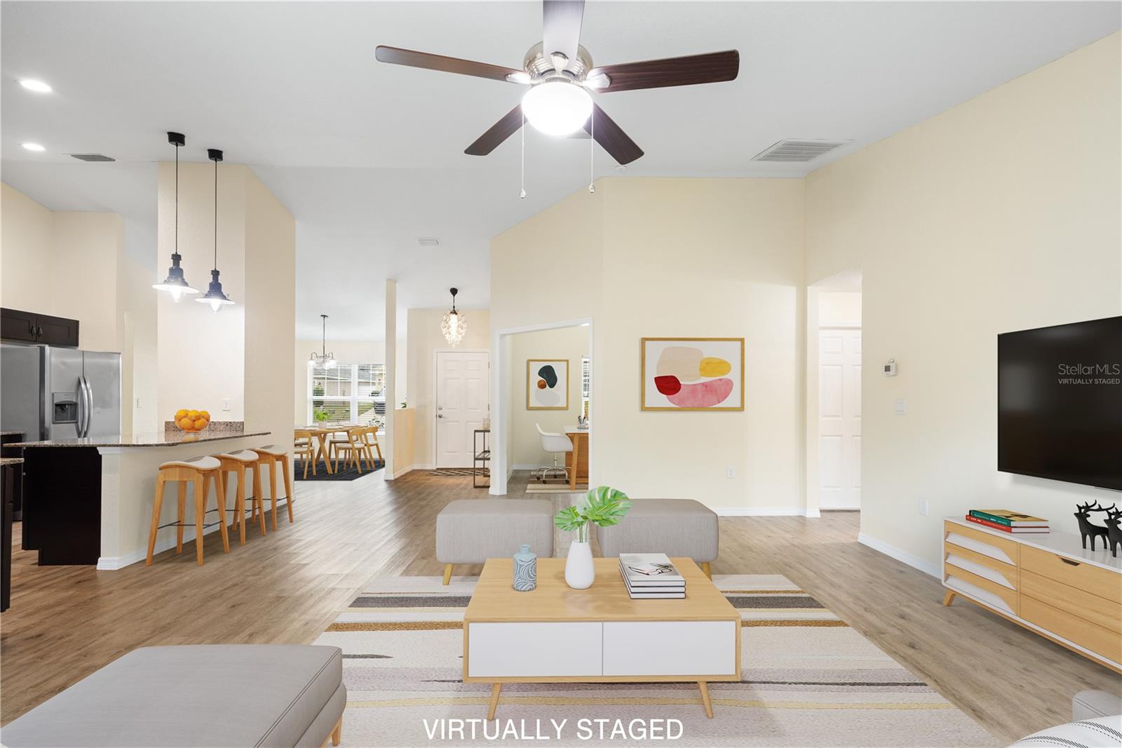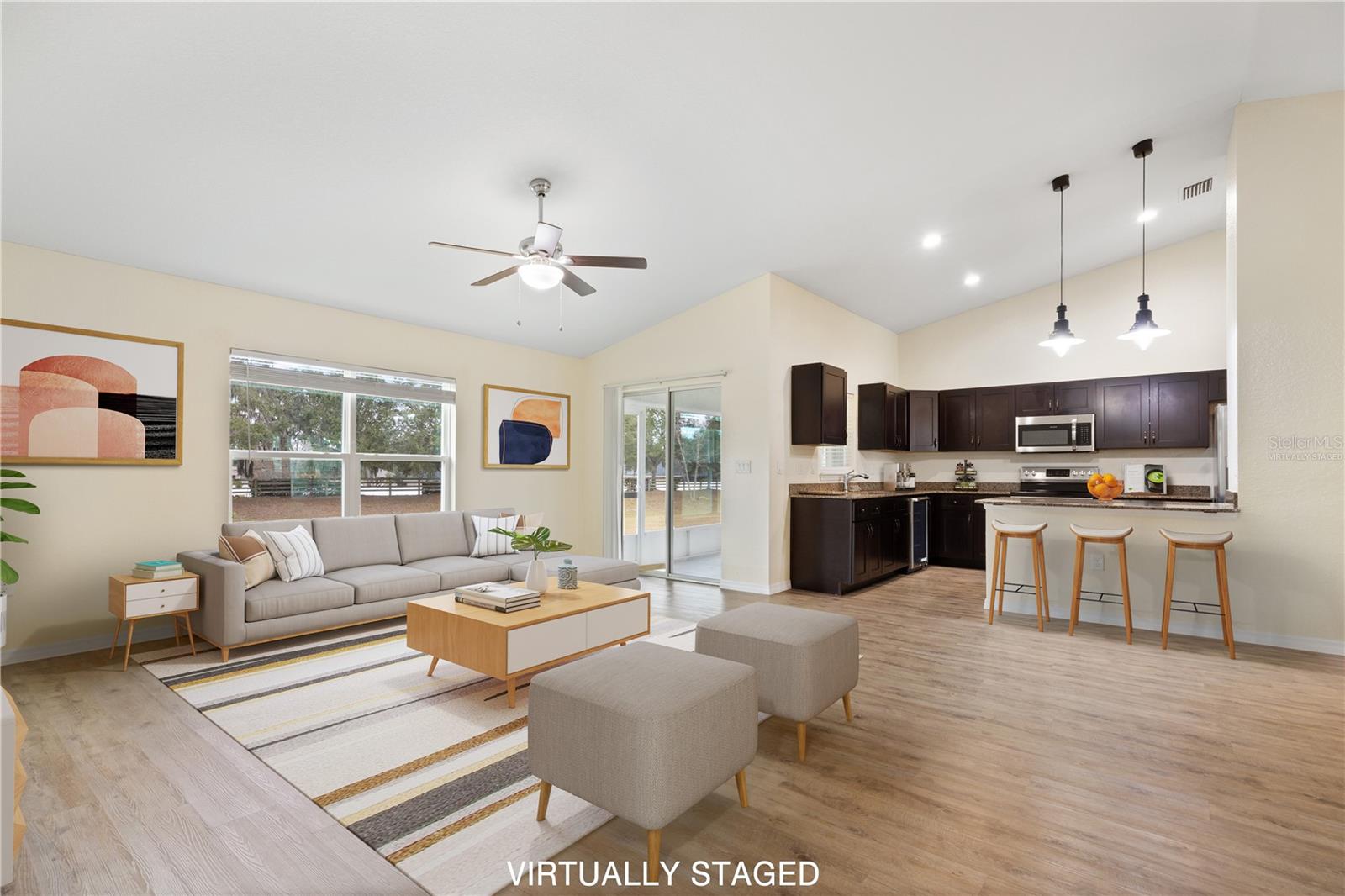 Uma ou mais fotos foram virtualmente encenadas. Descubra a combinação perfeita de conforto e elegância nesta deslumbrante casa construída em 2020 pela ALDANA CONTRACTING LLC, situada no exclusivo condomínio fechado de St. James Park, em NW Ocala. Esta joia pronta para morar possui 1.760 pés quadrados de área útil. com três quartos aconchegantes e acarpetados e dois banheiros, garantindo ampla privacidade e retiro para qualquer pessoa. O coração da casa possui piso laminado elegante e uma cozinha moderna equipada com bancadas em granito e eletrodomésticos em aço inoxidável, perfeita para aventuras culinárias. O escritório/estudo/escritório adicionado oferece um espaço flexível para trabalho ou relaxamento. Ao ar livre, desfrute da serenidade de uma varanda traseira com tela e vista para uma área de retenção bem cuidada, ideal para noites tranquilas ou reuniões de fim de semana. Completa com uma espaçosa garagem 20x22, caixa de correio privada e sistema de irrigação eficiente, esta casa fica num generoso lote de 106x110, oferecendo luxo e praticidade. Não perca a oportunidade de fazer desta casa requintada o seu novo lar!