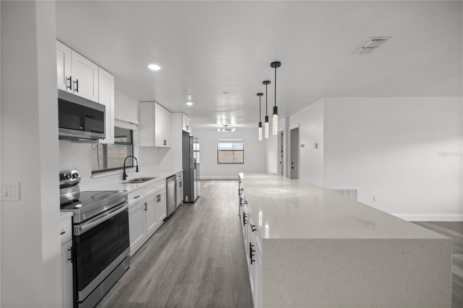 Uma ou mais fotos foram praticamente encenadas. Esta casa lindamente remodelada de 3 quartos e 2 banheiros oferece uma experiência de vida moderna e confortável. A cozinha de conceito aberto apresenta uma espaçosa ilha de granito com armários equipados com tomadas de energia de ambos os lados, proporcionando flexibilidade para carregar dispositivos ou usar aparelhos. A grande sala de estar se integra perfeitamente à cozinha, criando um espaço convidativo para reuniões. A aconchegante área de jantar é banhada em luz natural, aumentando o conforto para a família e os amigos. Todos os aparelhos, incluindo fogão, microondas, geladeira e máquina de lavar louça, são novos e têm garantias, contribuindo para o apelo moderno da cozinha. Uma espaçosa lavanderia aumenta a conveniência da casa. O quintal apresenta um balcão e uma área exibida, perfeita para hospedar celebrações com entes queridos. Situado em 0,23 acres de vegetação exuberante, há amplo espaço para considerar adicionar uma piscina futura ou uma cozinha de verão. A propriedade também inclui uma garagem de 2 carros e um jardim de frente lindamente paisagístico com um gramado e garagem bem conservados, completando esta magnífica casa. US $ 5000 oferecidos aos compradores no fechamento!