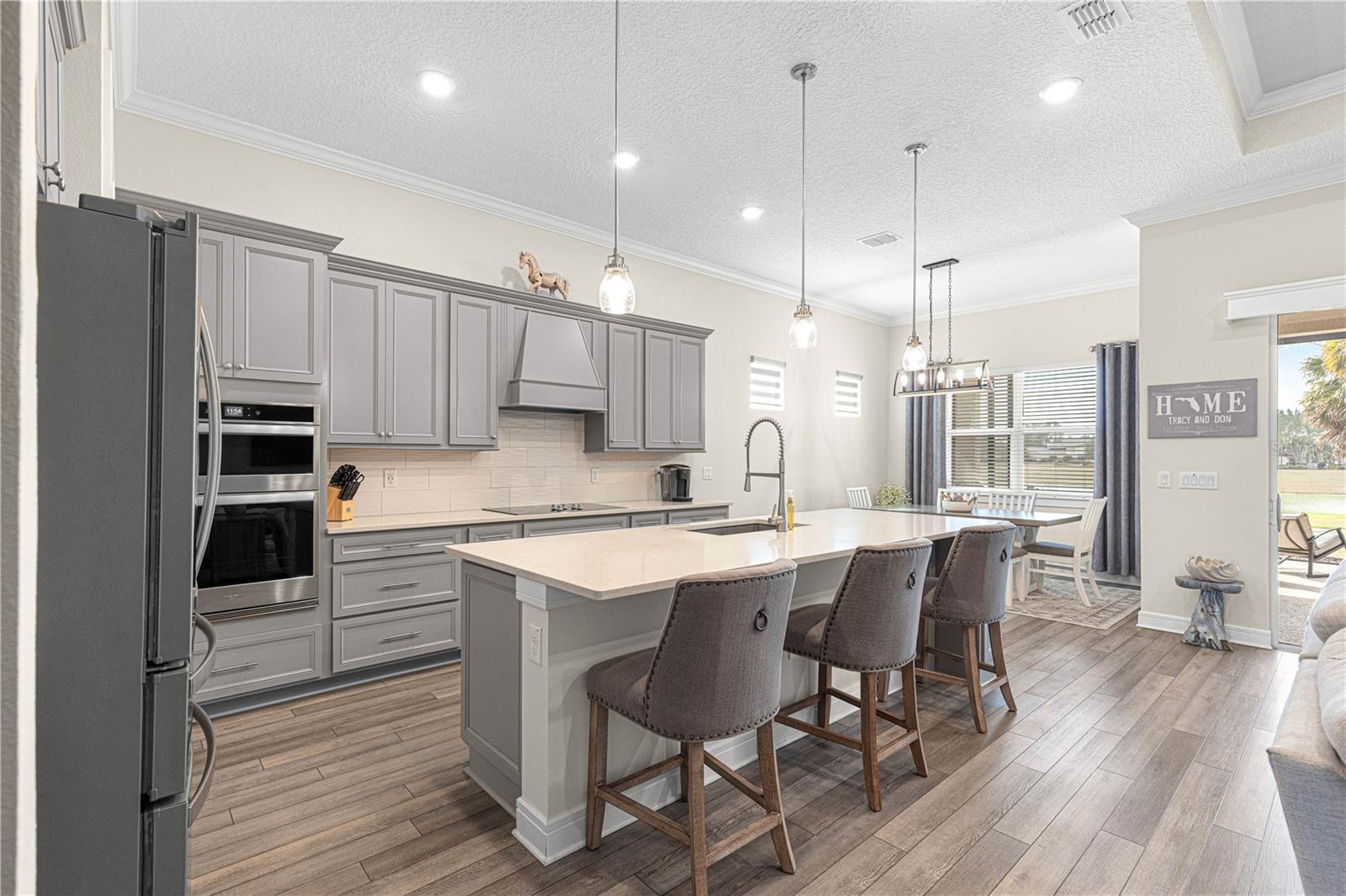 ENORME melhoria de preço para este lindo modelo Prestige! Situado em um dos melhores lotes de Stone Creek; as atualizações nesta casa espetacular são rivalizadas apenas pela beleza do campo de golfe e pelas vistas da Reflection Bay. Conseguir um novo lote de construção que se aproxime deste seria quase impossível. Esta casa não apenas possui inúmeras atualizações de construtor, mas os proprietários têm um número significativo de recursos personalizados de alta qualidade. Deixe-se levar pelo apelo da calçada com a calçada decorativa, o paisagismo lindamente projetado, com meio-fio e elementos de pedra que continuam ao redor da casa. Depois de se surpreender com as vistas incríveis da varanda e da área de entretenimento do pátio de pedra recém-instalada, você descobrirá que encontrará uma cozinha que é uma delícia para o chef. Fornos embutidos, armários atualizados com capô de madeira sobre o fogão, jantar na ilha considerável e uma enorme quantidade de armazenamento aumentam o apelo desta casa. Outras melhorias incluem bancadas de granito, eletrodomésticos de luxo em aço inoxidável e uma grande despensa. A sala de reunião possui teto falso com ventilador e portas de vidro deslizantes que oferecem vistas deslumbrantes do quintal. O quarto principal possui teto falso e banheiro privativo com armários atualizados, box amplo com entrada zero e pia dupla, além de dois armários para armazenamento extra. O quarto de hóspedes também inclui banheiro privativo, com armários atualizados e combinação de banheira/chuveiro. Há uma maravilhosa sala flexível para escritório, música ou espaço extra para dormir quando os hóspedes visitam. A garagem dispõe de arrecadação no sótão com escadas rebatíveis, bem como pavimento em epóxi. Esta casa tem um espaço exterior incomparável com vistas deslumbrantes! A varanda coberta estendida está preparada para uma televisão montada na parede, e há uma gaiola enorme, próxima a uma área pavimentada, perfeita para entretenimento ao ar livre e grelhados. O lote fica do outro lado do lago da área da piscina do resort. Relaxe em seu espaço privado com sua bebida favorita enquanto ouve música ocasional tocada no Stonewater Club nas belas noites da Flórida. Stone Creek é uma comunidade importante com mais de 55 anos, com uma abundância de clubes, grupos de interesse e comodidades. Não existem casas no mercado com este tipo de vista...faça hoje mesmo a sua visita para conhecer este fabuloso imóvel.
