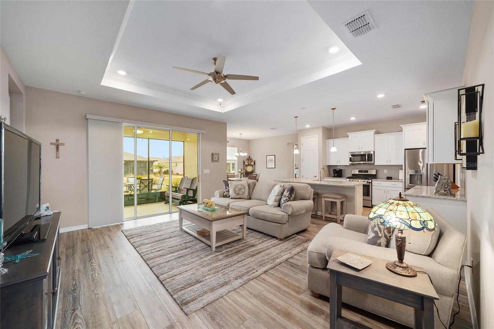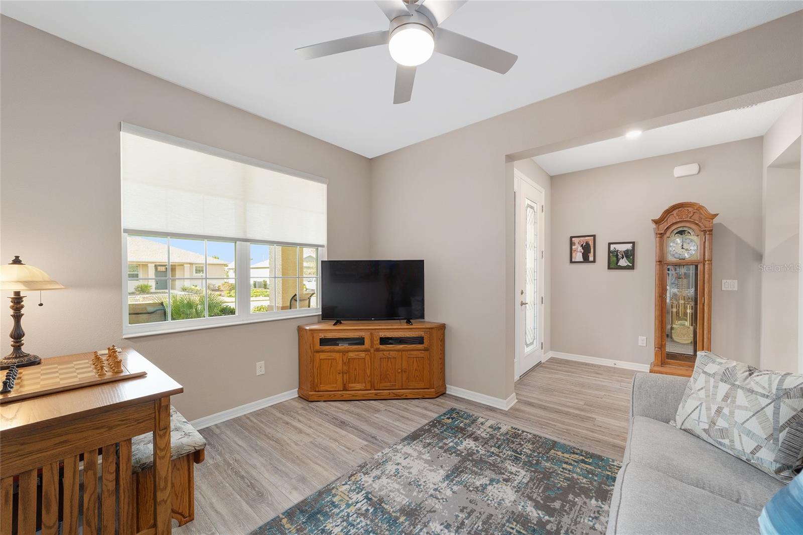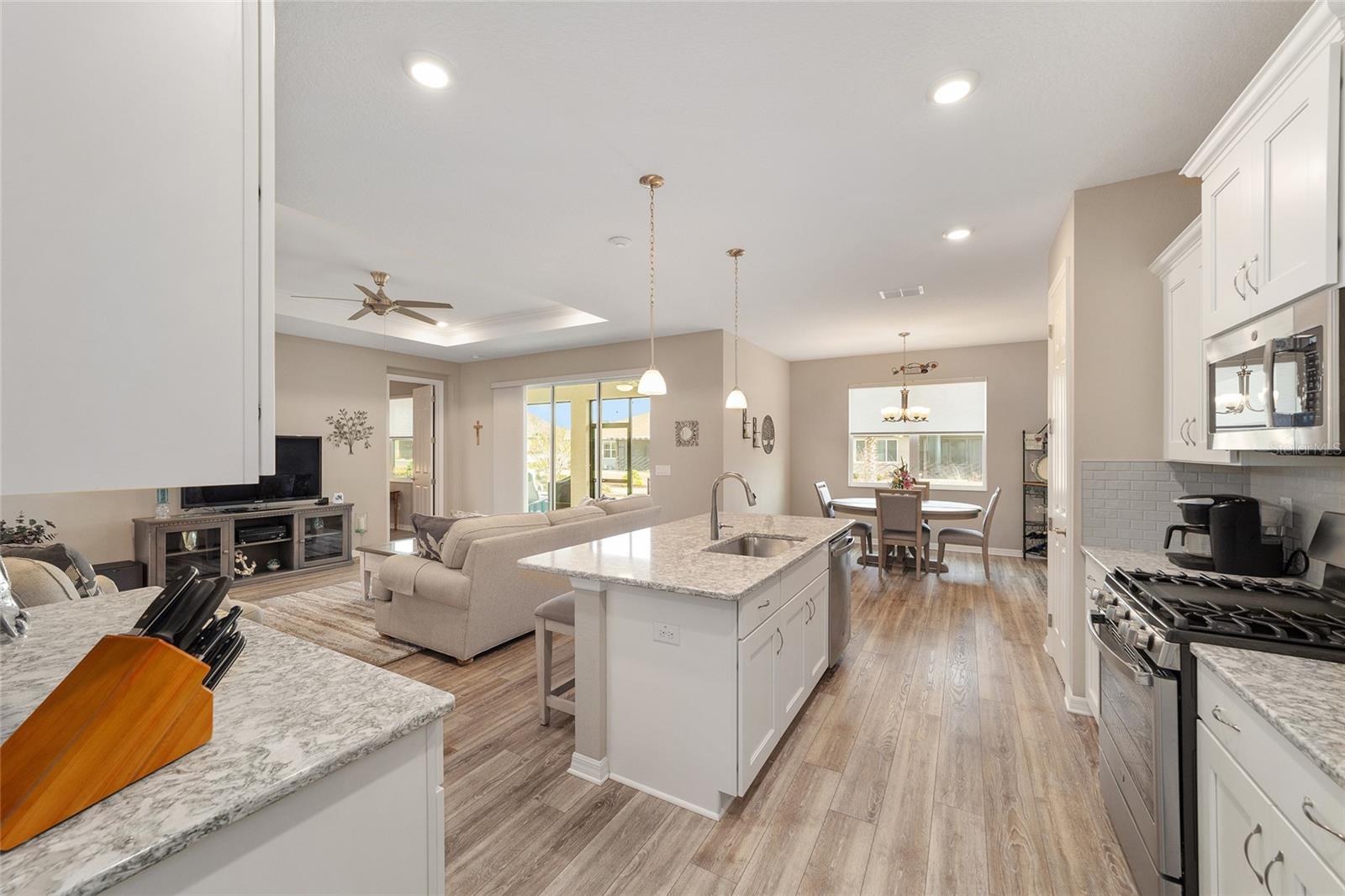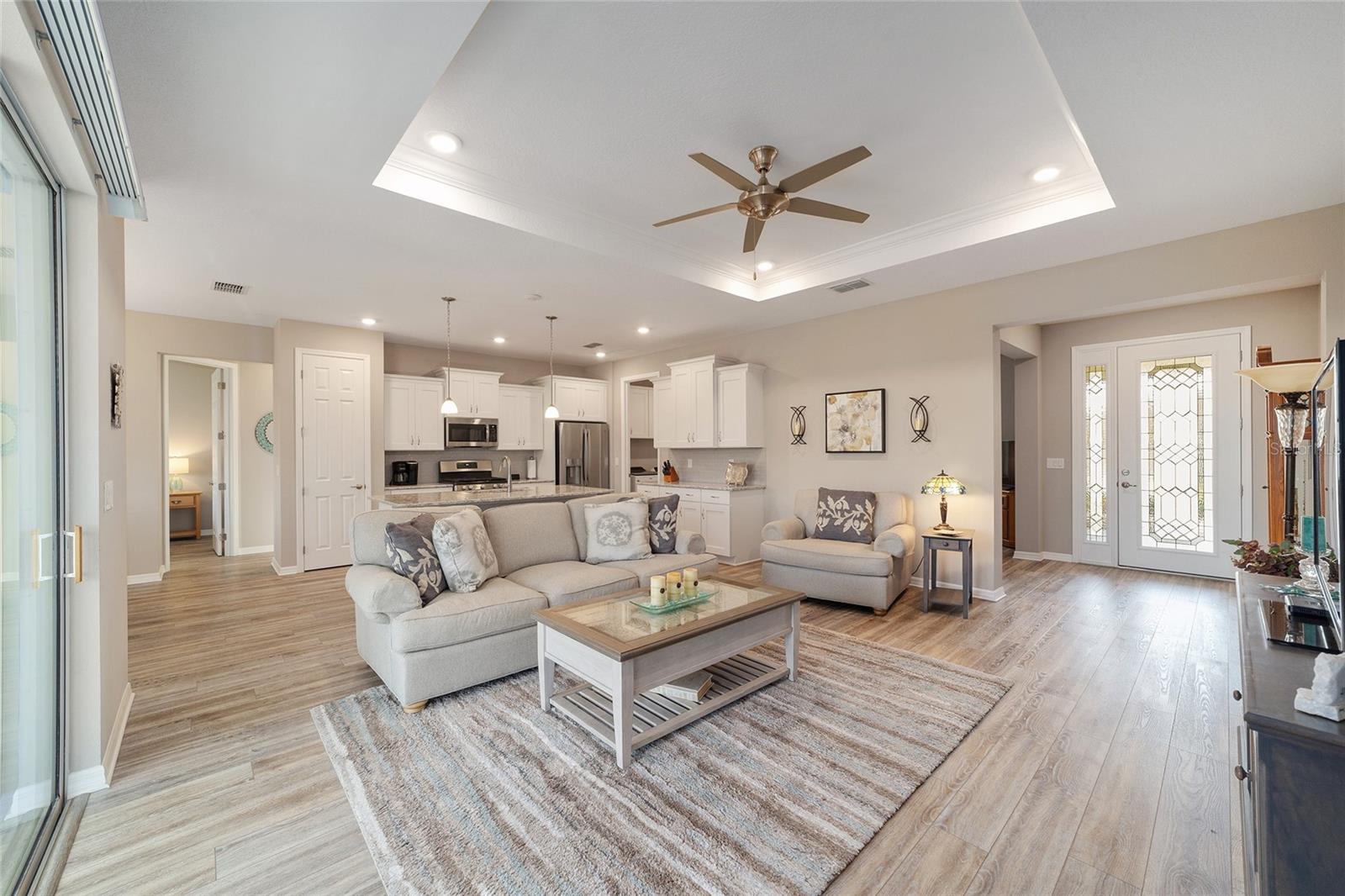 Carrinho de golfe incluído!! Entre neste modelo Livingston 2020, situado em Avalon, no On Top of the World (OTOW), uma comunidade importante com mais de 55 anos em Ocala FL, oferecendo todas as comodidades que você poderia desejar! Com dois quartos convidativos, dois banheiros e uma versátil sala Flex bônus, há amplo espaço para uma vida confortável e entretenimento. A planta aberta apresenta tetos de bandeja com iluminação embutida e luxuoso piso de pranchas de vinil por toda parte. Encontrará um espaço acolhedor que pode servir tanto como espaço de jantar formal como como copa, adaptado ao seu estilo de vida! Crie delícias culinárias nesta cozinha deslumbrante, que possui bancadas Cambria Quartz e eletrodomésticos de aço inoxidável, incluindo um cooktop a gás de 36" que convida você a começar a cozinhar! Os armários estilo shaker, o elegante backsplash cinza do metrô e um bar para refeições tornam este espaço perfeito para desfrutar de bebidas com os amigos ou café da manhã com os netos. A suíte principal é o seu retiro pessoal, oferecendo um quarto espaçoso, um amplo closet e um lindo banheiro completo com pias duplas e um lindo box amplo de azulejos, perfeito para se dedicar a alguns cuidados pessoais, o aconchegante segundo quarto vem com um conveniente armário no corredor e está localizado ao lado do segundo banheiro, que possui uma penteadeira única e uma combinação de banheira/chuveiro atualizada - ideal para relaxar após um dia emocionante de pickleball nas quadras OTOW. Esta casa está repleta de atualizações, mas é impressionante. realmente se destaca, aprimorado por um paisagismo lindamente projetado nos quintais da frente e de trás, além de um charmoso pátio na parte traseira. Prepare-se para relaxar e viver sua melhor vida neste tesouro aconchegante e levemente habitado. Além disso, há vários clubes, academias de ginástica, quadras de bocha, raquetebol e muito mais para mantê-lo ativo! Está com fome? Não há problema! Uma variedade de restaurantes e centros comerciais estão a apenas um passeio de carrinho de golfe. Situado no coração de Ocala, você está a uma curta distância do renomado World Equestrian Center e do centro de Ocala, e a uma ou duas horas de vários parques temáticos, como o Disney World, aeroportos para viagens convenientes e praias para sua melhor experiência no centro-norte da Flórida. encanto que esta casa encantadora e comunidade vibrante tem para desfrutar!
