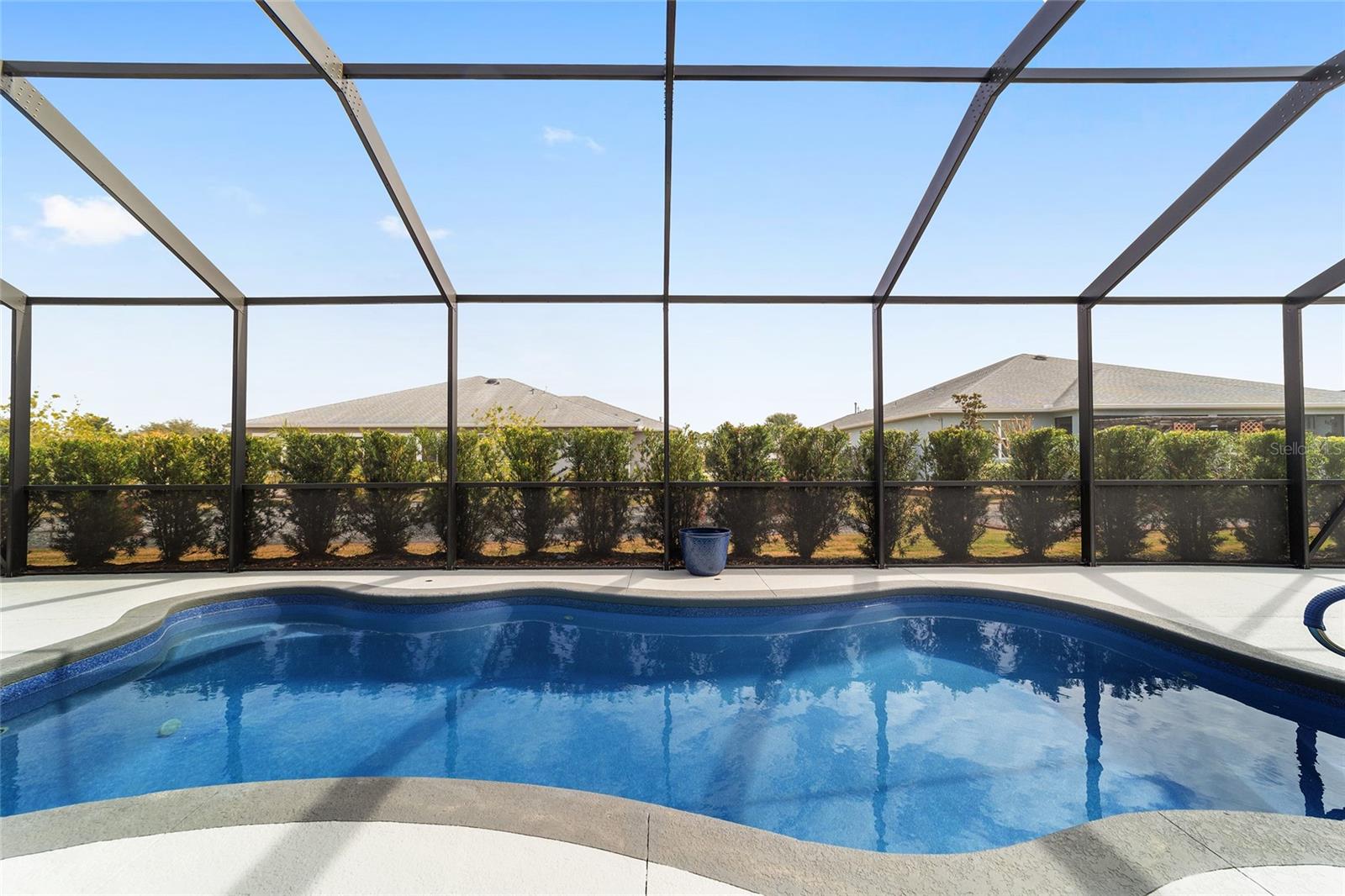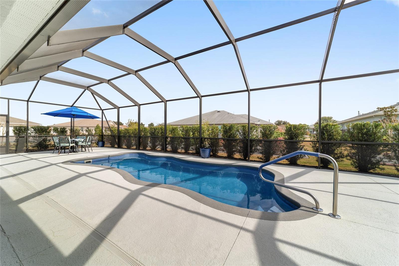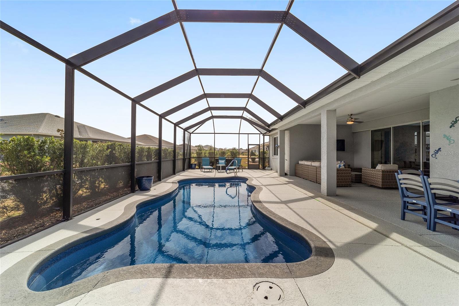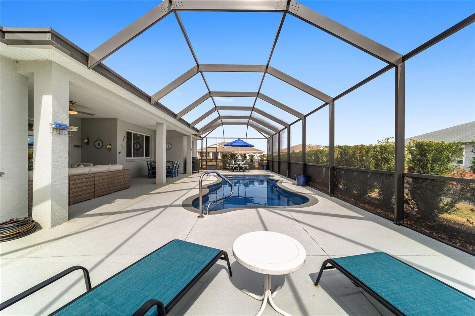 Aberdeen com piscina! Localizado em um espaçoso terreno de esquina com 0,41 acres no bairro de Stirling Meadow, em Candler Hills. Esta casa tem 3 quartos, 3 banheiros, uma sala flexível e garagem para 3 carros! A cozinha gourmet é o sonho de qualquer chef, com bancada de quartzo, grande ilha, armários brancos escalonados, forno embutido, cooktop com coifa, backsplash de azulejos, gavetas com soft-close e despensa ampliada com prateleiras de arame. A casa possui luxuoso piso de pranchas de vinil por toda parte. A sala de estar oferece uma bandeja de teto, ventilador de teto e um controle deslizante triplo que leva à varanda com tela, criando uma experiência de vida interna e externa perfeita. A sala flexível com portas francesas, ventilador de teto, persianas e carpete é perfeita para home office ou escritório (atualmente configurada como home theater e disponível para venda separadamente). O segundo quarto principal inclui closet, ventilador de teto e persianas, banheiro privativo com box amplo, pia individual grande com bancada de quartzo, azulejos e armário de linho. A suíte principal possui teto retangular, ventilador de teto, janela tripla com vista para a varanda, closet com estantes personalizadas e um segundo closet. O banheiro privativo inclui duas pias individuais grandes com bancadas de quartzo, um box amplo de azulejos e um armário de roupa de cama. O 3º quarto com ventilador permite privacidade aos seus convidados na frente da casa. O terceiro banheiro tem pia única de quartzo e banheira/chuveiro. A lavanderia foi embutida em armários, pia e inclui lavadora/secadora branca. A área externa é o sonho de qualquer artista, com uma enorme varanda com tela, uma área coberta com dois ventiladores de teto e uma piscina subterrânea de fibra de vidro cercada por arbustos privativos. As características adicionais incluem garagem para 2 carros com piso em epóxi e sistema mini-split, além de garagem para 1 carro para armazenamento extra ou oficina. Esta casa é verdadeiramente uma mistura de luxo e conforto, pronta para ser o seu retiro privado. Agende seu passeio hoje mesmo! Localizado no principal condomínio fechado e ativo de Ocala com mais de 55 anos, repleto de comodidades. incluindo acesso de carrinho de golfe a 2 shopping centers.