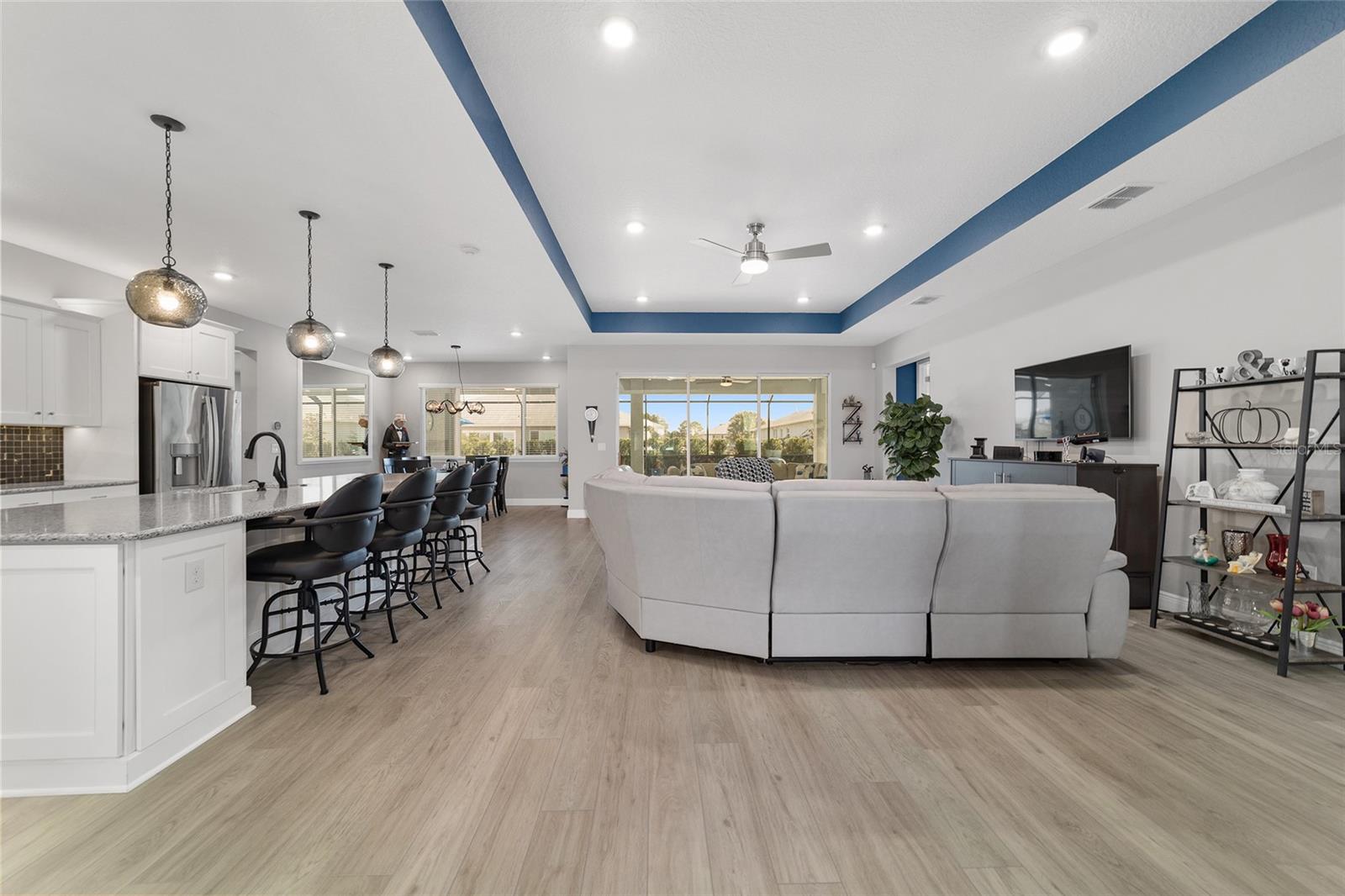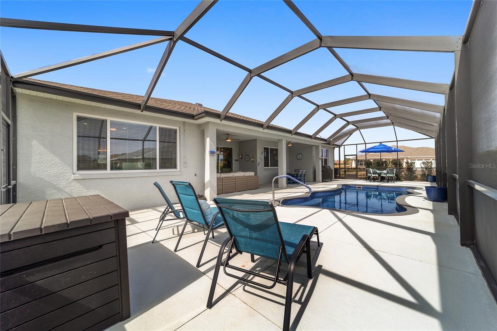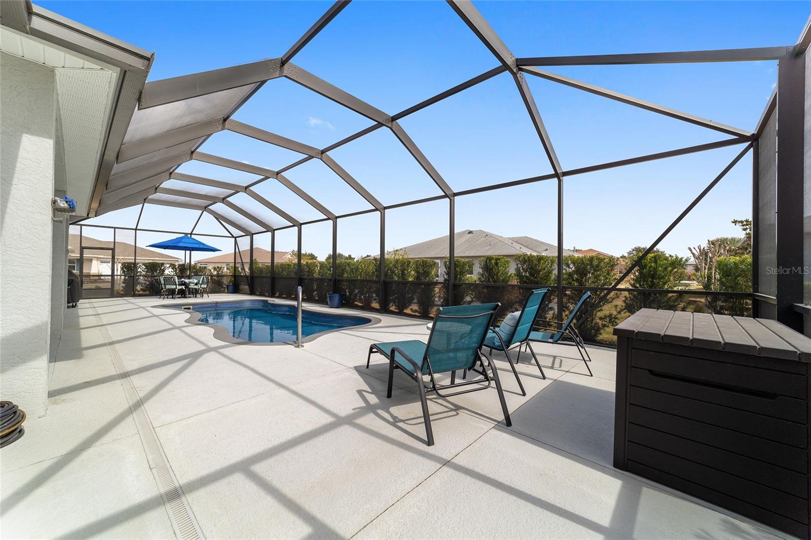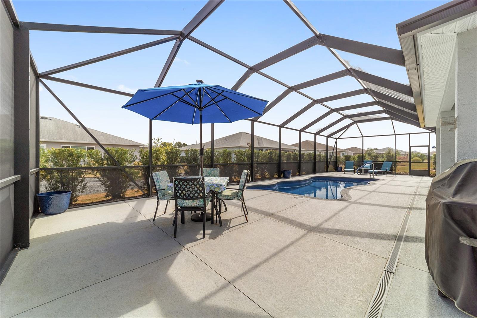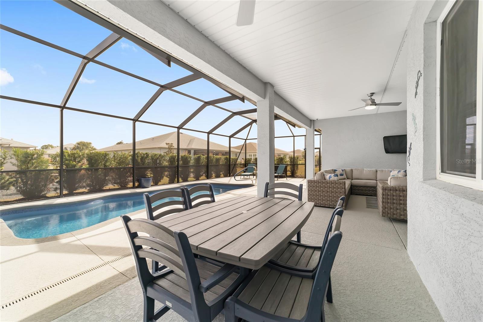 Aberdeen com piscina! Localizado em um espaçoso terreno de esquina com 0,41 acres no bairro de Stirling Meadow, em Candler Hills. Esta casa tem 3 quartos, 3 banheiros, uma sala flexível e garagem para 3 carros! A cozinha gourmet é o sonho de qualquer chef, com bancada de quartzo, grande ilha, armários brancos escalonados, forno embutido, cooktop com coifa, backsplash de azulejos, gavetas com soft-close e despensa ampliada com prateleiras de arame. A casa possui luxuoso piso de pranchas de vinil por toda parte. A sala de estar oferece uma bandeja de teto, ventilador de teto e um controle deslizante triplo que leva à varanda com tela, criando uma experiência de vida interna e externa perfeita. A sala flexível com portas francesas, ventilador de teto, persianas e carpete é perfeita para home office ou escritório (atualmente configurada como home theater e disponível para venda separadamente). O segundo quarto principal inclui closet, ventilador de teto e persianas, banheiro privativo com box amplo, pia individual grande com bancada de quartzo, azulejos e armário de linho. A suíte principal possui teto retangular, ventilador de teto, janela tripla com vista para a varanda, closet com estantes personalizadas e um segundo closet. O banheiro privativo inclui duas pias individuais grandes com bancadas de quartzo, um box amplo de azulejos e um armário de roupa de cama. O 3º quarto com ventilador permite privacidade aos seus convidados na frente da casa. O terceiro banheiro tem pia única de quartzo e banheira/chuveiro. A lavanderia foi embutida em armários, pia e inclui lavadora/secadora branca. A área externa é o sonho de qualquer artista, com uma enorme varanda com tela, uma área coberta com dois ventiladores de teto e uma piscina subterrânea de fibra de vidro cercada por arbustos privativos. As características adicionais incluem garagem para 2 carros com piso em epóxi e sistema mini-split, além de garagem para 1 carro para armazenamento extra ou oficina. Esta casa é verdadeiramente uma mistura de luxo e conforto, pronta para ser o seu retiro privado. Agende seu passeio hoje mesmo! Localizado no principal condomínio fechado e ativo de Ocala com mais de 55 anos, repleto de comodidades. incluindo acesso de carrinho de golfe a 2 shopping centers.