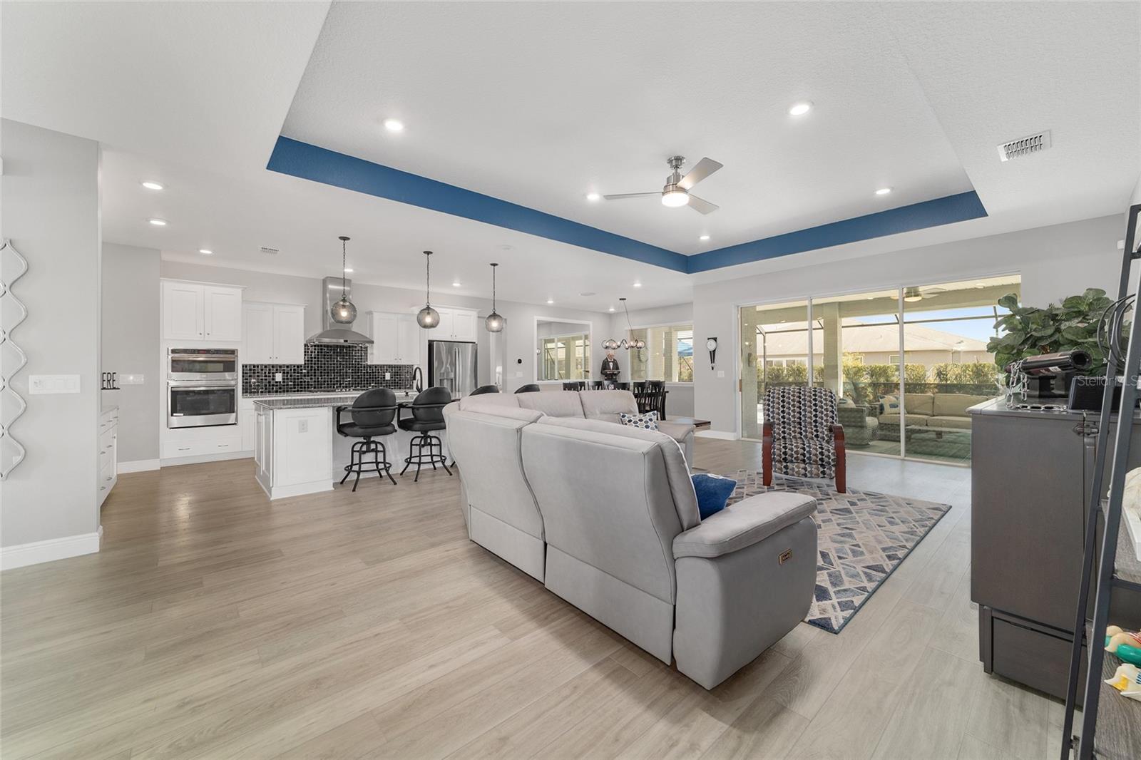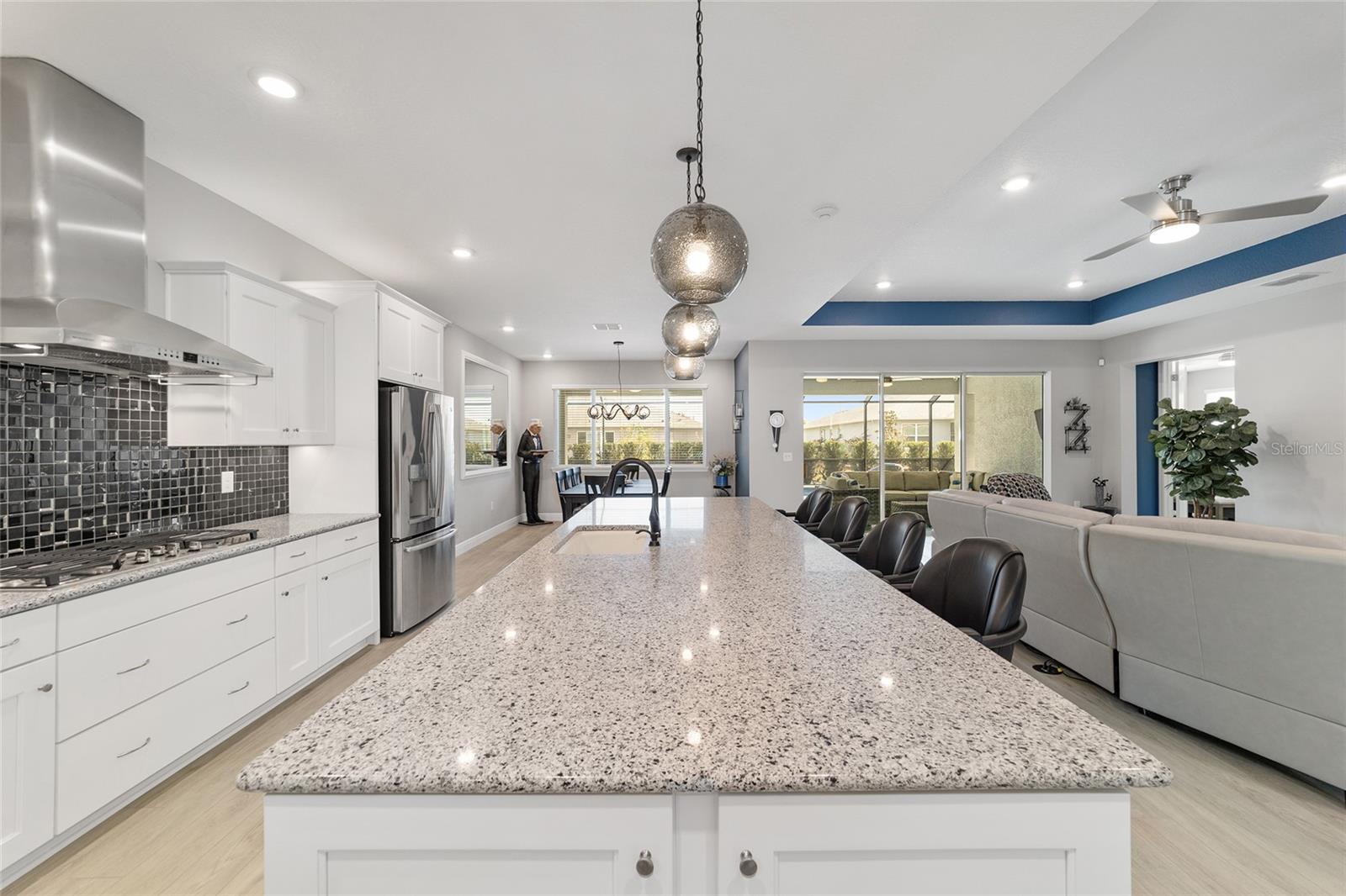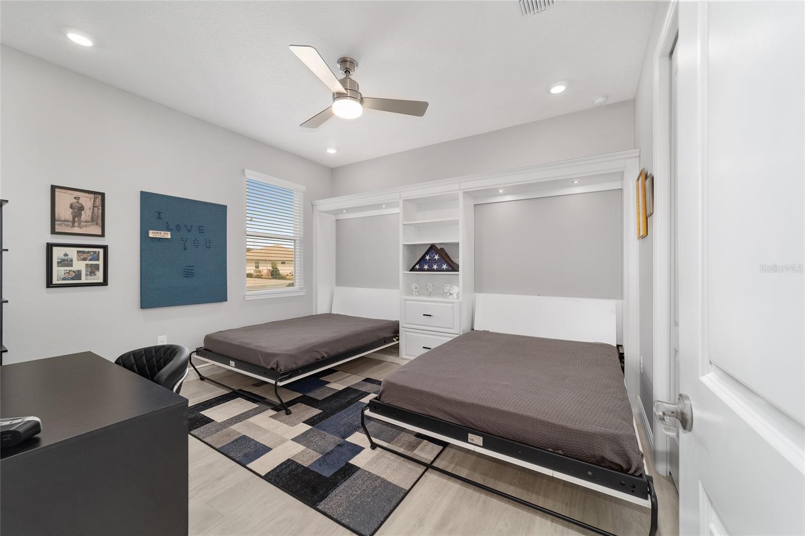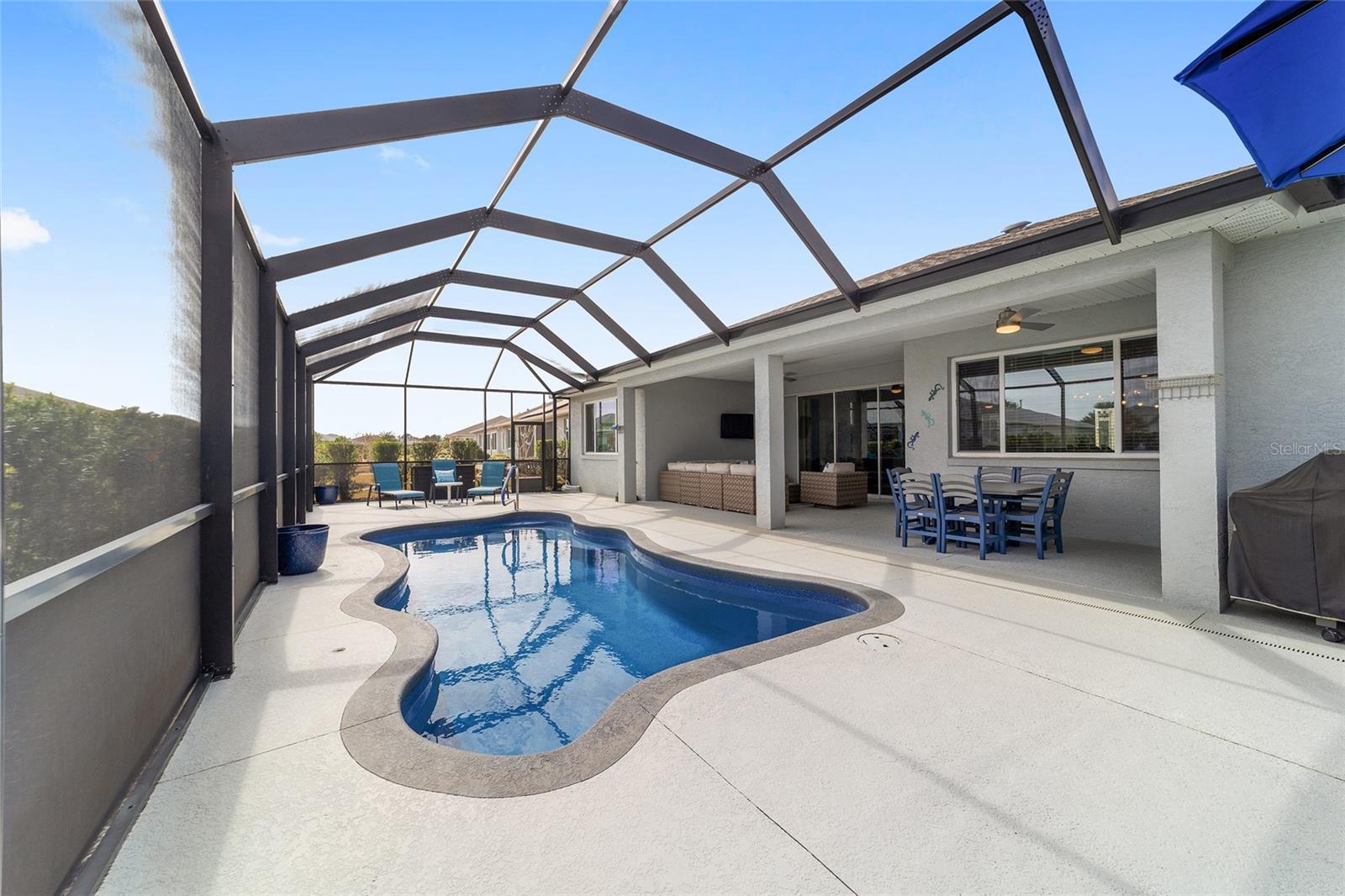 Aberdeen com piscina! Localizado em um espaçoso terreno de esquina com 0,41 acres no bairro de Stirling Meadow, em Candler Hills. Esta casa tem 3 quartos, 3 banheiros, uma sala flexível e garagem para 3 carros! A cozinha gourmet é o sonho de qualquer chef, com bancada de quartzo, grande ilha, armários brancos escalonados, forno embutido, cooktop com coifa, backsplash de azulejos, gavetas com soft-close e despensa ampliada com prateleiras de arame. A casa possui luxuoso piso de pranchas de vinil por toda parte. A sala de estar oferece uma bandeja de teto, ventilador de teto e um controle deslizante triplo que leva à varanda com tela, criando uma experiência de vida interna e externa perfeita. A sala flexível com portas francesas, ventilador de teto, persianas e carpete é perfeita para home office ou escritório (atualmente configurada como home theater e disponível para venda separadamente). O segundo quarto principal inclui closet, ventilador de teto e persianas, banheiro privativo com box amplo, pia individual grande com bancada de quartzo, azulejos e armário de linho. A suíte principal possui teto retangular, ventilador de teto, janela tripla com vista para a varanda, closet com estantes personalizadas e um segundo closet. O banheiro privativo inclui duas pias individuais grandes com bancadas de quartzo, um box amplo de azulejos e um armário de roupa de cama. O 3º quarto com ventilador permite privacidade aos seus convidados na frente da casa. O terceiro banheiro tem pia única de quartzo e banheira/chuveiro. A lavanderia foi embutida em armários, pia e inclui lavadora/secadora branca. A área externa é o sonho de qualquer artista, com uma enorme varanda com tela, uma área coberta com dois ventiladores de teto e uma piscina subterrânea de fibra de vidro cercada por arbustos privativos. As características adicionais incluem garagem para 2 carros com piso em epóxi e sistema mini-split, além de garagem para 1 carro para armazenamento extra ou oficina. Esta casa é verdadeiramente uma mistura de luxo e conforto, pronta para ser o seu retiro privado. Agende seu passeio hoje mesmo! Localizado no principal condomínio fechado e ativo de Ocala com mais de 55 anos, repleto de comodidades. incluindo acesso de carrinho de golfe a 2 shopping centers.