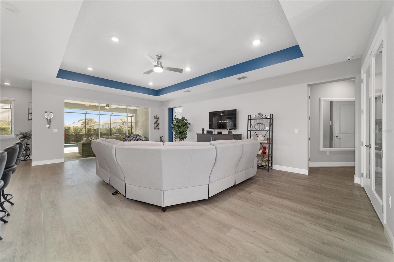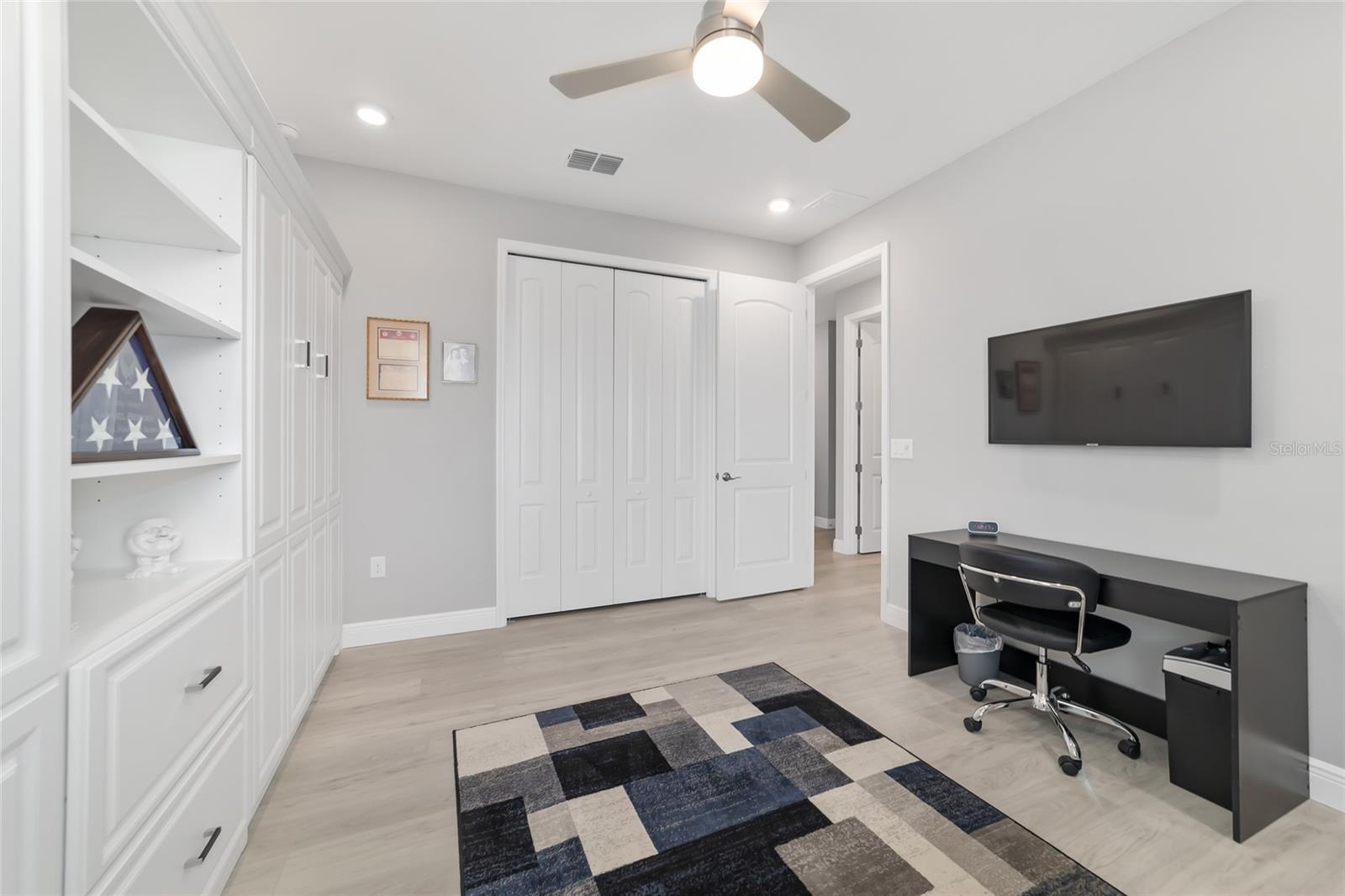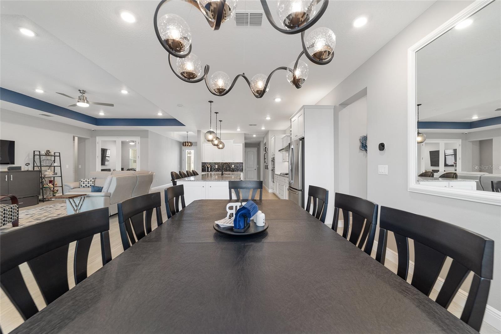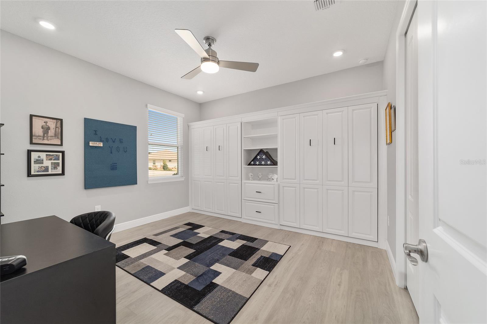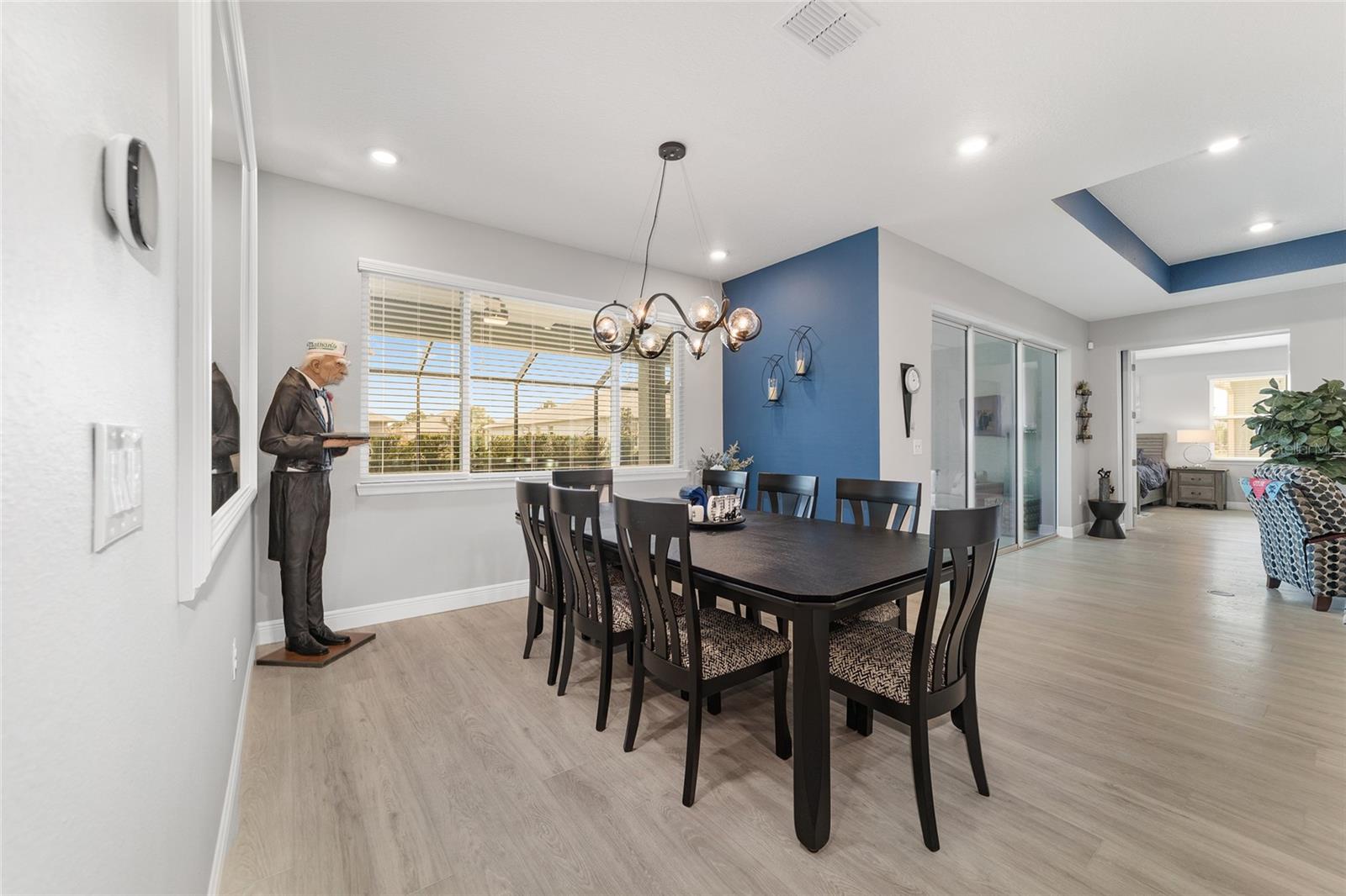 Aberdeen com piscina! Localizado em um espaçoso terreno de esquina com 0,41 acres no bairro de Stirling Meadow, em Candler Hills. Esta casa tem 3 quartos, 3 banheiros, uma sala flexível e garagem para 3 carros! A cozinha gourmet é o sonho de qualquer chef, com bancada de quartzo, grande ilha, armários brancos escalonados, forno embutido, cooktop com coifa, backsplash de azulejos, gavetas com soft-close e despensa ampliada com prateleiras de arame. A casa possui luxuoso piso de pranchas de vinil por toda parte. A sala de estar oferece uma bandeja de teto, ventilador de teto e um controle deslizante triplo que leva à varanda com tela, criando uma experiência de vida interna e externa perfeita. A sala flexível com portas francesas, ventilador de teto, persianas e carpete é perfeita para home office ou escritório (atualmente configurada como home theater e disponível para venda separadamente). O segundo quarto principal inclui closet, ventilador de teto e persianas, banheiro privativo com box amplo, pia individual grande com bancada de quartzo, azulejos e armário de linho. A suíte principal possui teto retangular, ventilador de teto, janela tripla com vista para a varanda, closet com estantes personalizadas e um segundo closet. O banheiro privativo inclui duas pias individuais grandes com bancadas de quartzo, um box amplo de azulejos e um armário de roupa de cama. O 3º quarto com ventilador permite privacidade aos seus convidados na frente da casa. O terceiro banheiro tem pia única de quartzo e banheira/chuveiro. A lavanderia foi embutida em armários, pia e inclui lavadora/secadora branca. A área externa é o sonho de qualquer artista, com uma enorme varanda com tela, uma área coberta com dois ventiladores de teto e uma piscina subterrânea de fibra de vidro cercada por arbustos privativos. As características adicionais incluem garagem para 2 carros com piso em epóxi e sistema mini-split, além de garagem para 1 carro para armazenamento extra ou oficina. Esta casa é verdadeiramente uma mistura de luxo e conforto, pronta para ser o seu retiro privado. Agende seu passeio hoje mesmo! Localizado no principal condomínio fechado e ativo de Ocala com mais de 55 anos, repleto de comodidades. incluindo acesso de carrinho de golfe a 2 shopping centers.