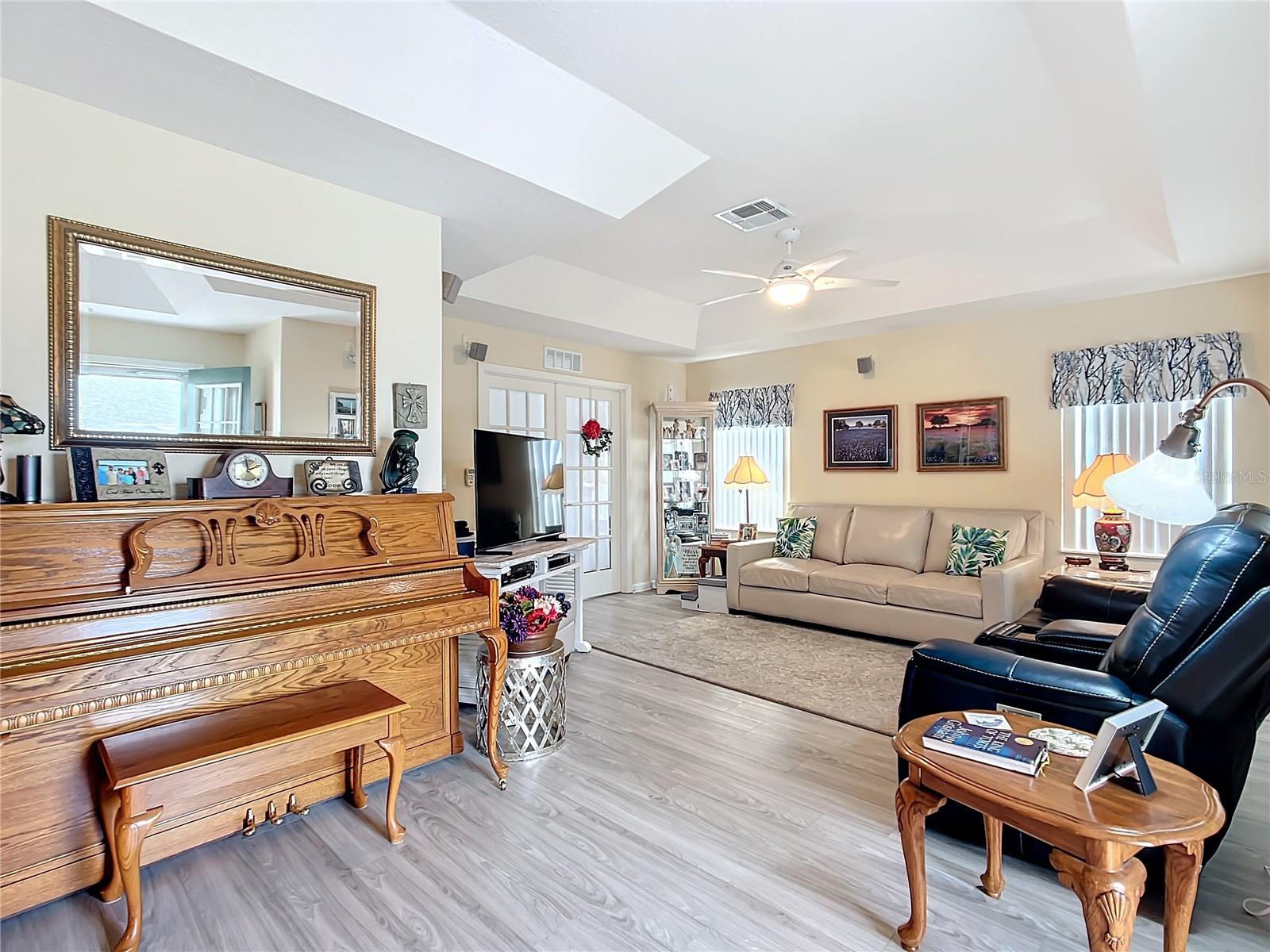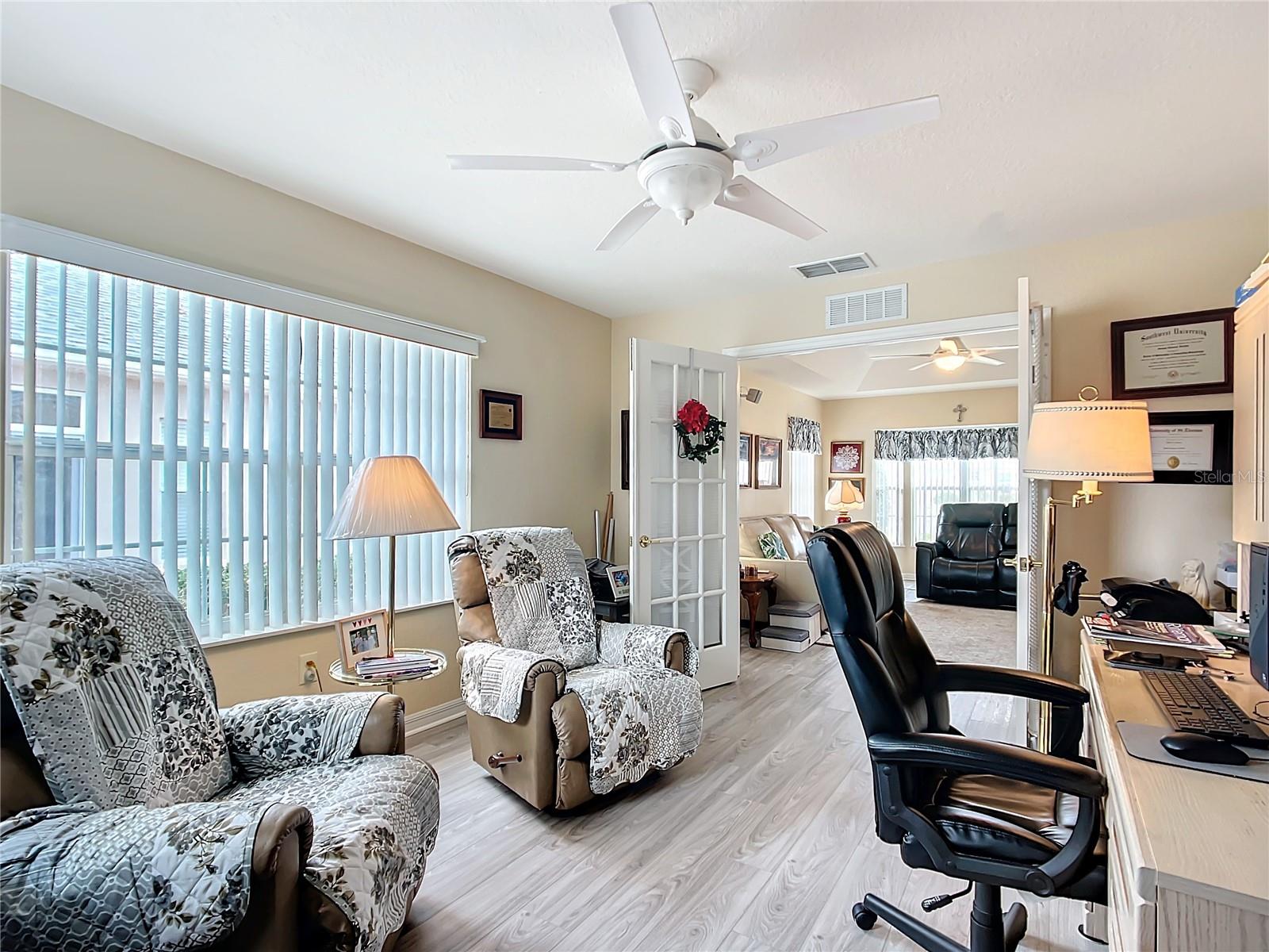 Descubra o melhor na Flórida que vive nesta bela casa de 2 quartos e 2 banheiros, com uma cova versátil, localizada na área de fontes da comunidade de campo de golfe de 55 ou 55 Oak Run. A vida graciosa aguarda nesta versátil casa de piso plano aberto, com portas francesas duplas que se abrem para a espaçosa sala de estar e sala de jantar formal com piso laminado de baixa manutenção, uma paleta de cores neutra e tetos impressionantes da bandeja. Aprecie a cozinha bem equipada com um recanto para refeições casuais, iluminação embutida, uma despensa de armário e muitos armários para suas necessidades de armazenamento. O Den, acessado através de portas francesas de vidro, oferece espaço flexível perfeito para um escritório em casa ou sala de hobby. Relaxe na suíte do proprietário, com um generoso closet e um banho de suíte com uma vaidade de pia dupla e chuveiro. Os bônus adicionados incluem um telhado novo (instalado em setembro de 2022), uma lavanderia interna, um pátio ao ar livre perfeito para churrascos e uma garagem para dois carros. A comunidade de Oak Run oferece uma riqueza de comodidades, incluindo um campo de golfe de 18 buracos, fitness center, tênis e quadras de pickleball, 6 piscinas, 5 banheiras de hidromassagem e uma variedade de clubes. Quer você prefira refeições casuais ou requintadas, esta comunidade tem tudo. Além disso, sua localização central fornece fácil acesso a compras, instalações médicas, parques públicos e muito mais. Venha ver esta casa hoje - está pronto para recebê -lo em seu novo e relaxado estilo de vida da Flórida!