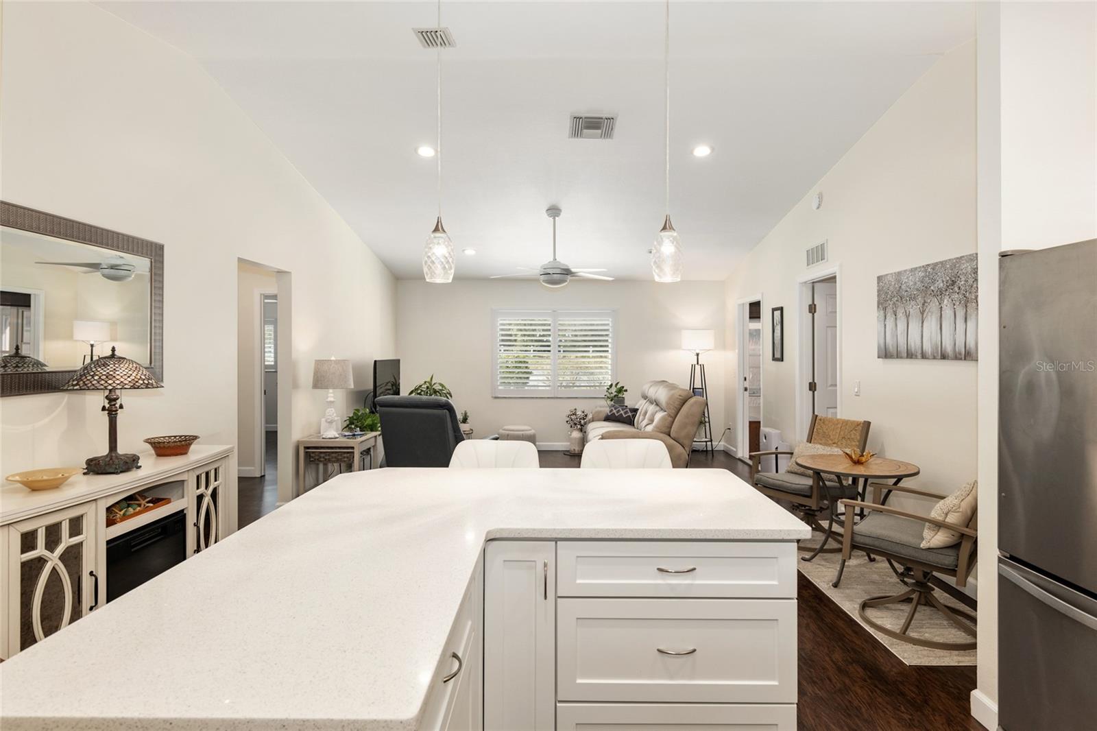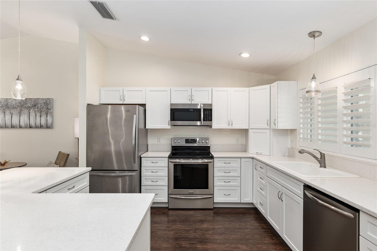 Vendedor motivado! Você se apaixonará por esta bela casa de Sienna Model, na área de Crescent Ridge, no topo do mundo. Este plano dividido, conceito aberto, em uma casa completamente atualizada, inclui pisos pesados, LVP por toda parte e ladrilhos nos banheiros. A cozinha aberta apresenta bancadas brilhantes e de quartzo branco, muito espaço no armário com gavetas suaves, uma Susan preguiçosa na ilha da cozinha e utensílios de aelee inoxidáveis. Os tetos abobadados e a iluminação embutida iluminam a grande sala de estar e os quartos divididos oferecem privacidade quando você tem convidados. As vaidades do banheiro são atualizadas com torneiras e quartzo moem, pias atualizadas e banheiros altos e com conforto e chuveiro mestre atualizado. Os armários são adornados com portas de vidro. A garagem e o pátio foram atualizados com pavimentadoras de pedra. A casa possui uma sala de três estações e uma Lanai adicional. Persianas de plantações com eficiência energética instaladas em toda a casa em 4/2024 com uma garantia vitalícia, feita especialmente para o clima da Flórida. Roof 2010, A/C 2016, Aquecedor de Água 2020, Windows World Isolle Windows, 2015. No topo do mundo é a principal comunidade de Ocala, o fechamento e ativo de mais de 55 anos, carregado de comodidades e inclui acesso ao carrinho de golfe a três shopping centers. Ligue para mais informações.