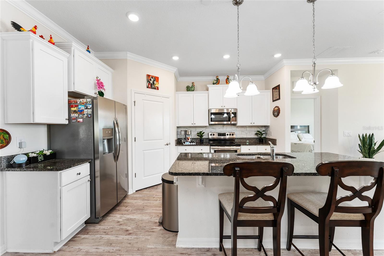Linda casa à beira -mar 3/2/2 em JB Ranch, uma popular comunidade fechada SW 55+. Esta casa de 2019 tem US $ 30 mil em atualizações, está pronta para a mudança e tem vistas bonitas da água da maioria dos quartos. Piso plano aberto. As áreas de estar têm tetos altos, moldagem por coroa e piso de tábua de vinil de luxo. A cozinha possui uma ilha grande com bar de café da manhã, balcões de granito, retiradas, backsplash, eletrodomésticos e uma despensa. O quarto primário tem um banheiro privativo com pias duplas, balcões de granito, chuveiro com assento, armário de água, armário de linho e um enorme armário com acesso à lavanderia. Plano de quarto dividido. O terceiro quarto com portas francesas está sendo usado como um escritório. Lavanderia inclui lavadora/secadora. A sala da Flórida fechada por vidro tem vista para a vista da água e possui tons de controle remoto. O JB Ranch é uma ótima comunidade, com uma piscina de entrada zero, clube, centro de fitness, quadras de pickleball e muito mais. A taxa mensal de US $ 215 cobre cuidados de gramado, serviço de lixo e comodidades. Excelente localização conveniente para compras, restaurantes, médicos, entretenimento, WEC e I-75! Ótima qualidade de vida com baixa manutenção morando!