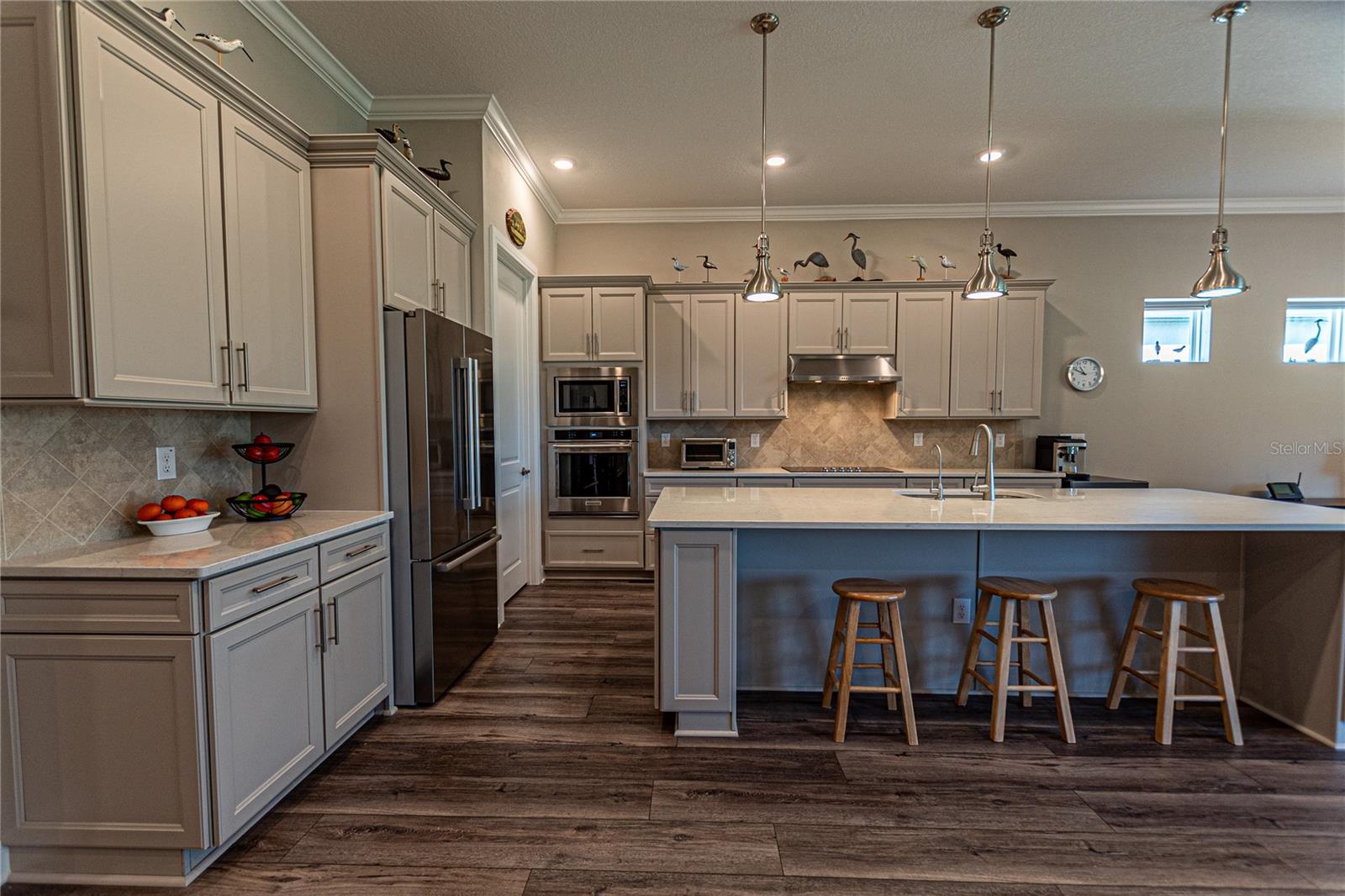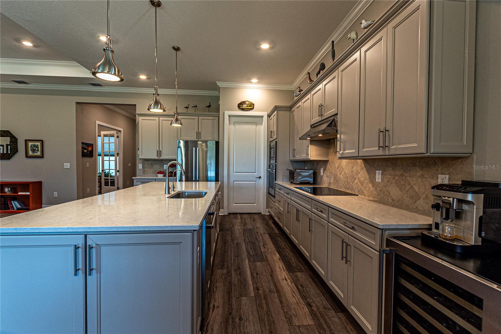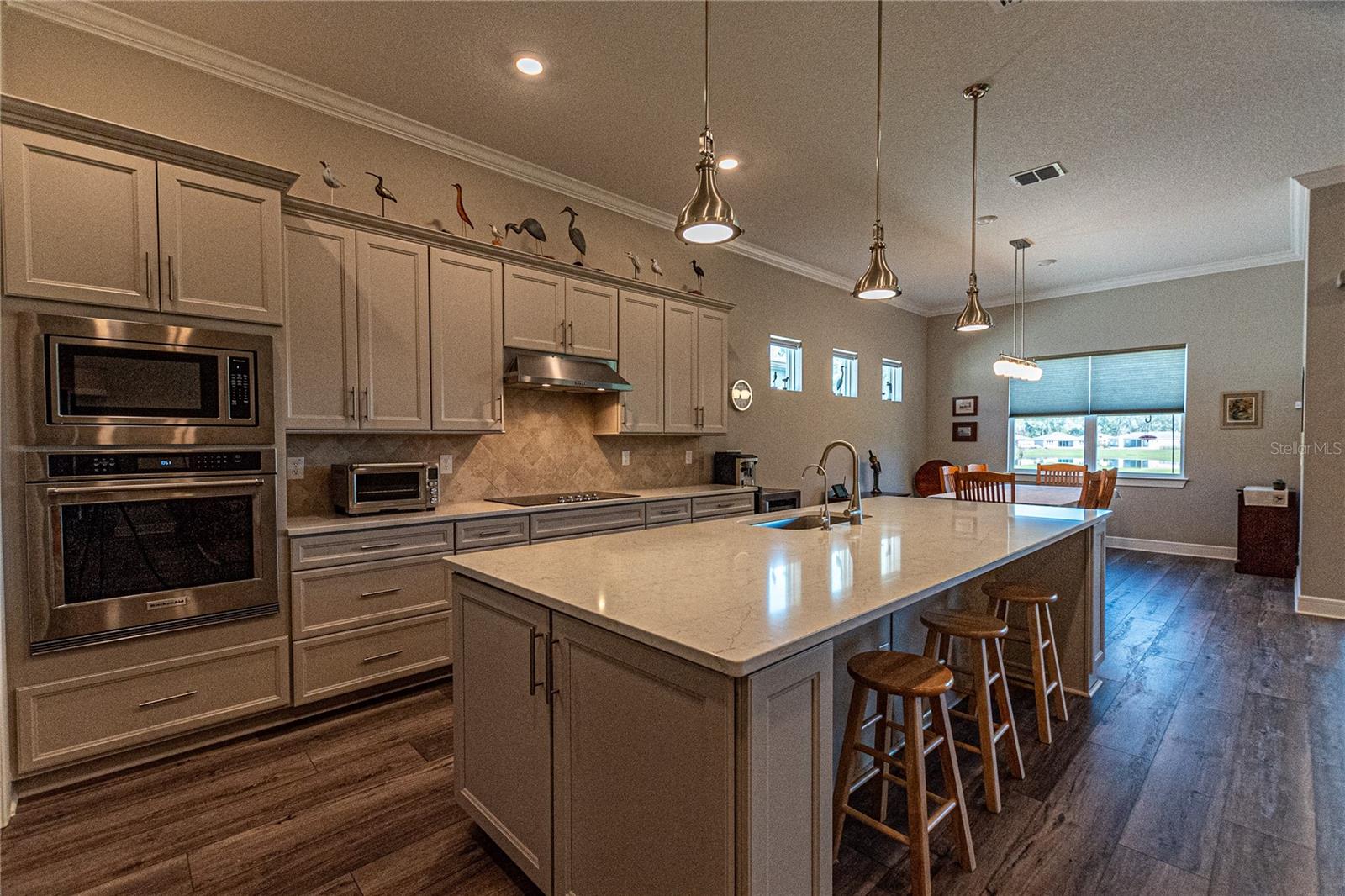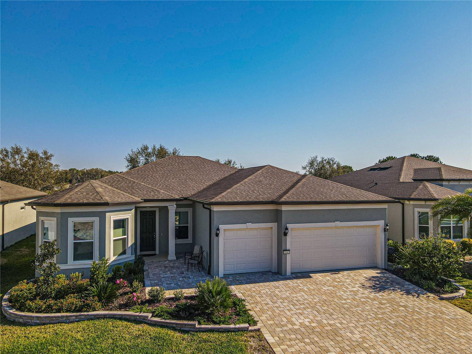 CAMPO DE GOLFE E CASA PREMIER FRENTE À ÁGUA! Descubra em Stone Creek by Del Webb, uma residência que equilibra perfeitamente estilo, funcionalidade e acabamentos premium. Situada no 14º green e com vistas deslumbrantes para o campo de golfe e para o lago, esta casa oferece um layout convidativo projetado para a vida contemporânea. Desfrute de 2.522 pés quadrados de área de estar bem equipada com 3 quartos, 3 banheiros, além de um escritório adicional, ideal para um escritório doméstico ou quarto de hóspedes. A propriedade é aprimorada por uma calçada de tijolos, juntamente com pátios frontais e traseiros que expandem perfeitamente seu espaço ao ar livre. O elegante paisagismo de tijolos e uma varanda com tela aumentam o charme. A casa apresenta tratamentos de janela de cima para baixo e de baixo para cima da Hunter-Douglas, sancas e tetos de bandeja que elevam os quartos. Piso LVP durável e armários de madeira cinza de bom gosto - com gavetas removíveis, portas com fechamento suave e detalhes em sancas - criam um ambiente sofisticado, mas funcional. A cozinha é uma delícia para o chef, completa com um elegante backsplash de azulejos, bancadas de quartzo e eletrodomésticos de última geração, incluindo uma geladeira Bosch embutida no forno de parede, micro-ondas e fogão. O quarto principal foi projetado como um retiro privado, com um enorme closet e um banheiro privativo com box amplo. Aproveite a facilidade de uma lavadora e secadora Samsung, filtro de água de osmose reversa instalado sob a pia da cozinha e um carregador EV dedicado no garagem para maior comodidade. Esta propriedade excepcional é perfeita para quem procura uma mistura de comodidades modernas e detalhes refinados. Seus espaços abertos e cheios de luz e seu design inteligente fazem dele um verdadeiro destaque. Agende sua exibição privada hoje mesmo!