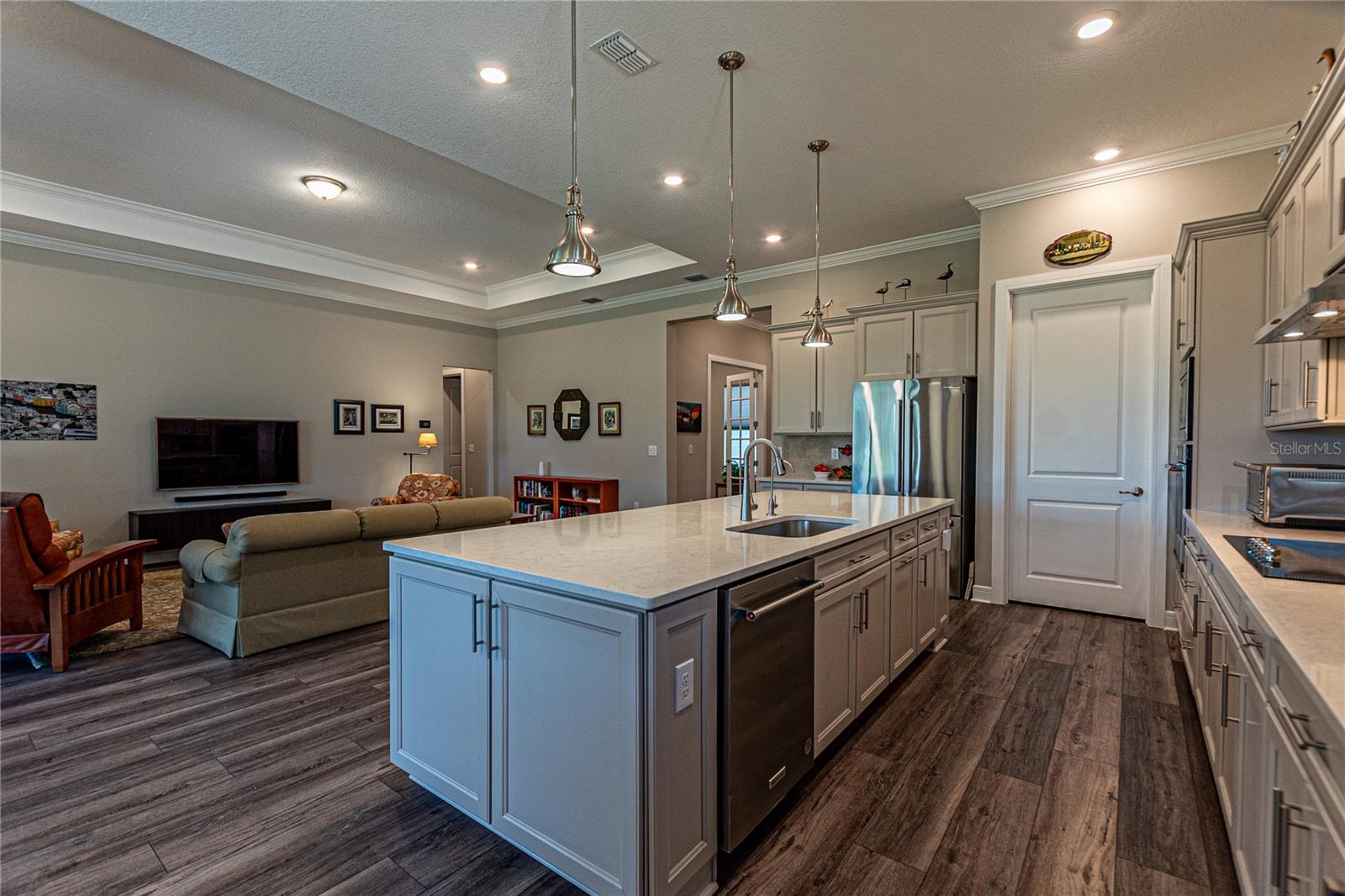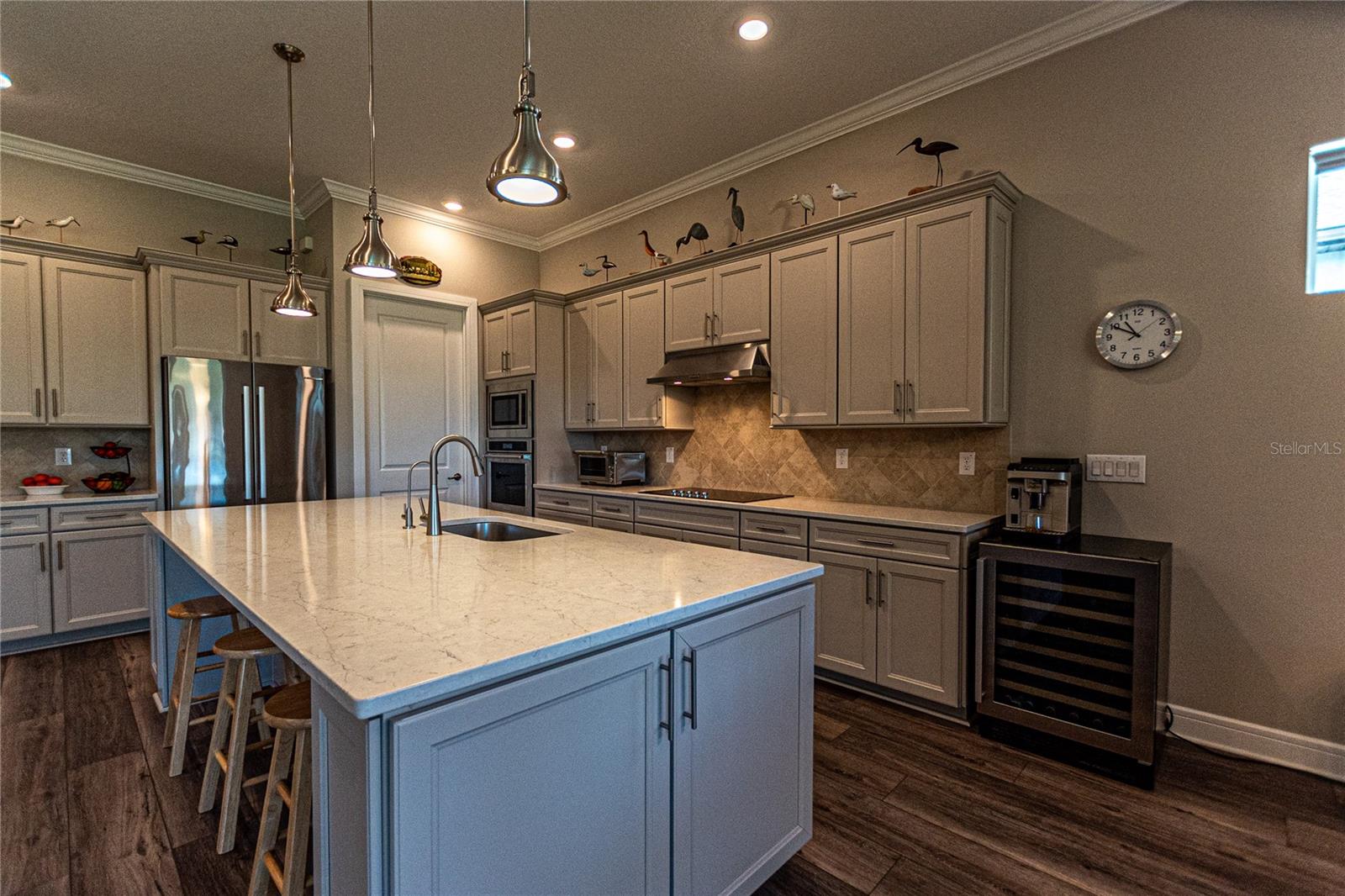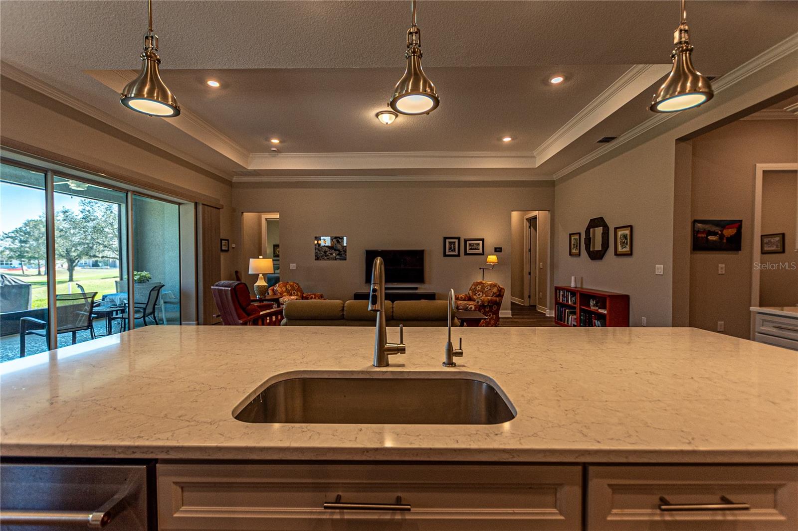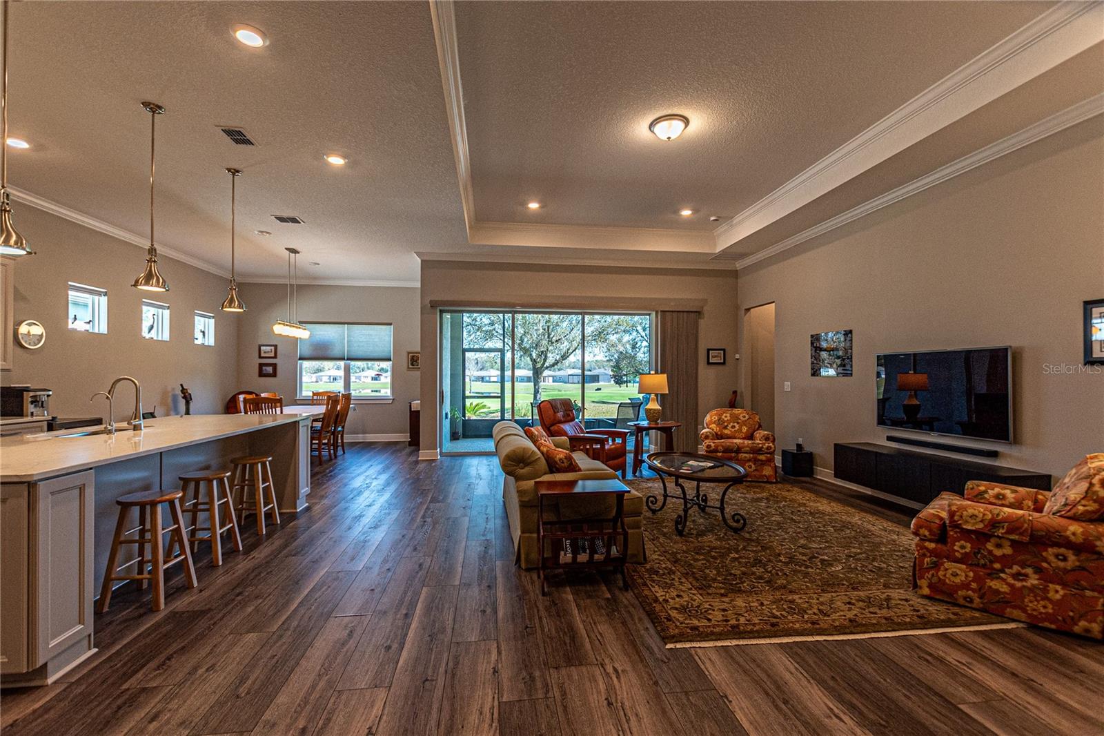 CAMPO DE GOLFE E CASA PREMIER FRENTE À ÁGUA! Descubra em Stone Creek by Del Webb, uma residência que equilibra perfeitamente estilo, funcionalidade e acabamentos premium. Situada no 14º green e com vistas deslumbrantes para o campo de golfe e para o lago, esta casa oferece um layout convidativo projetado para a vida contemporânea. Desfrute de 2.522 pés quadrados de área de estar bem equipada com 3 quartos, 3 banheiros, além de um escritório adicional, ideal para um escritório doméstico ou quarto de hóspedes. A propriedade é aprimorada por uma calçada de tijolos, juntamente com pátios frontais e traseiros que expandem perfeitamente seu espaço ao ar livre. O elegante paisagismo de tijolos e uma varanda com tela aumentam o charme. A casa apresenta tratamentos de janela de cima para baixo e de baixo para cima da Hunter-Douglas, sancas e tetos de bandeja que elevam os quartos. Piso LVP durável e armários de madeira cinza de bom gosto - com gavetas removíveis, portas com fechamento suave e detalhes em sancas - criam um ambiente sofisticado, mas funcional. A cozinha é uma delícia para o chef, completa com um elegante backsplash de azulejos, bancadas de quartzo e eletrodomésticos de última geração, incluindo uma geladeira Bosch embutida no forno de parede, micro-ondas e fogão. O quarto principal foi projetado como um retiro privado, com um enorme closet e um banheiro privativo com box amplo. Aproveite a facilidade de uma lavadora e secadora Samsung, filtro de água de osmose reversa instalado sob a pia da cozinha e um carregador EV dedicado no garagem para maior comodidade. Esta propriedade excepcional é perfeita para quem procura uma mistura de comodidades modernas e detalhes refinados. Seus espaços abertos e cheios de luz e seu design inteligente fazem dele um verdadeiro destaque. Agende sua exibição privada hoje mesmo!