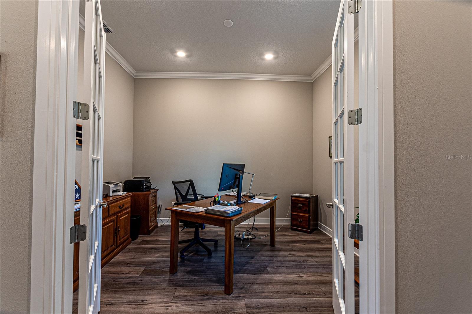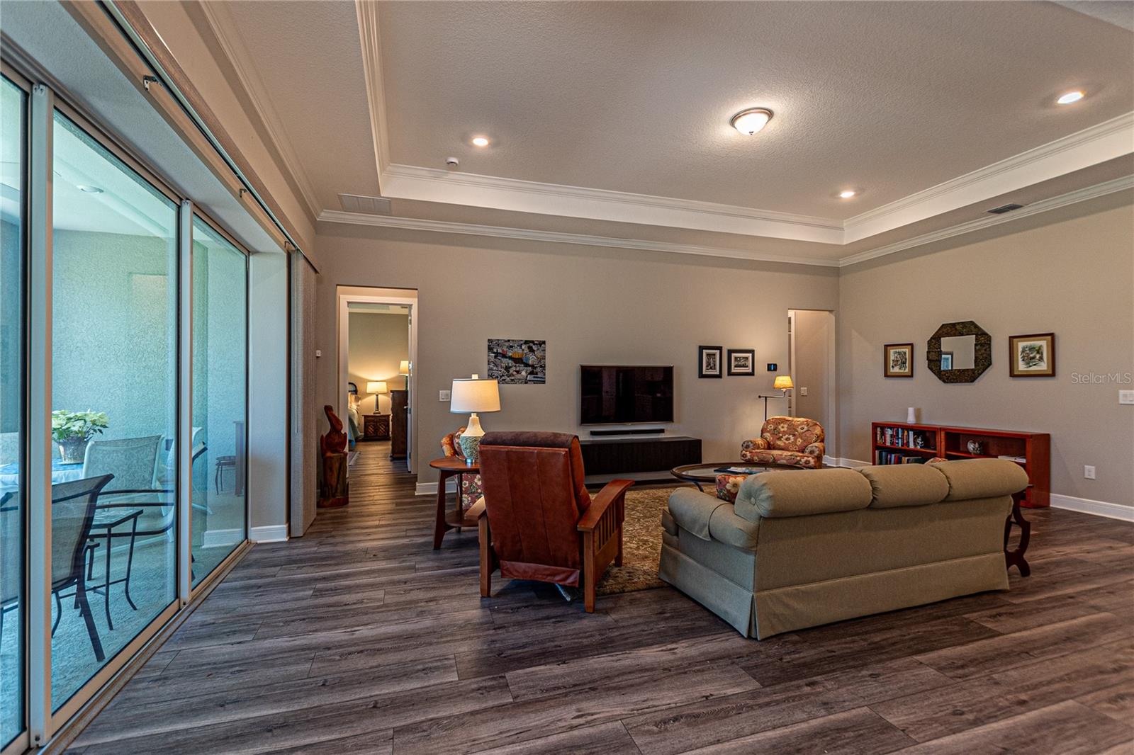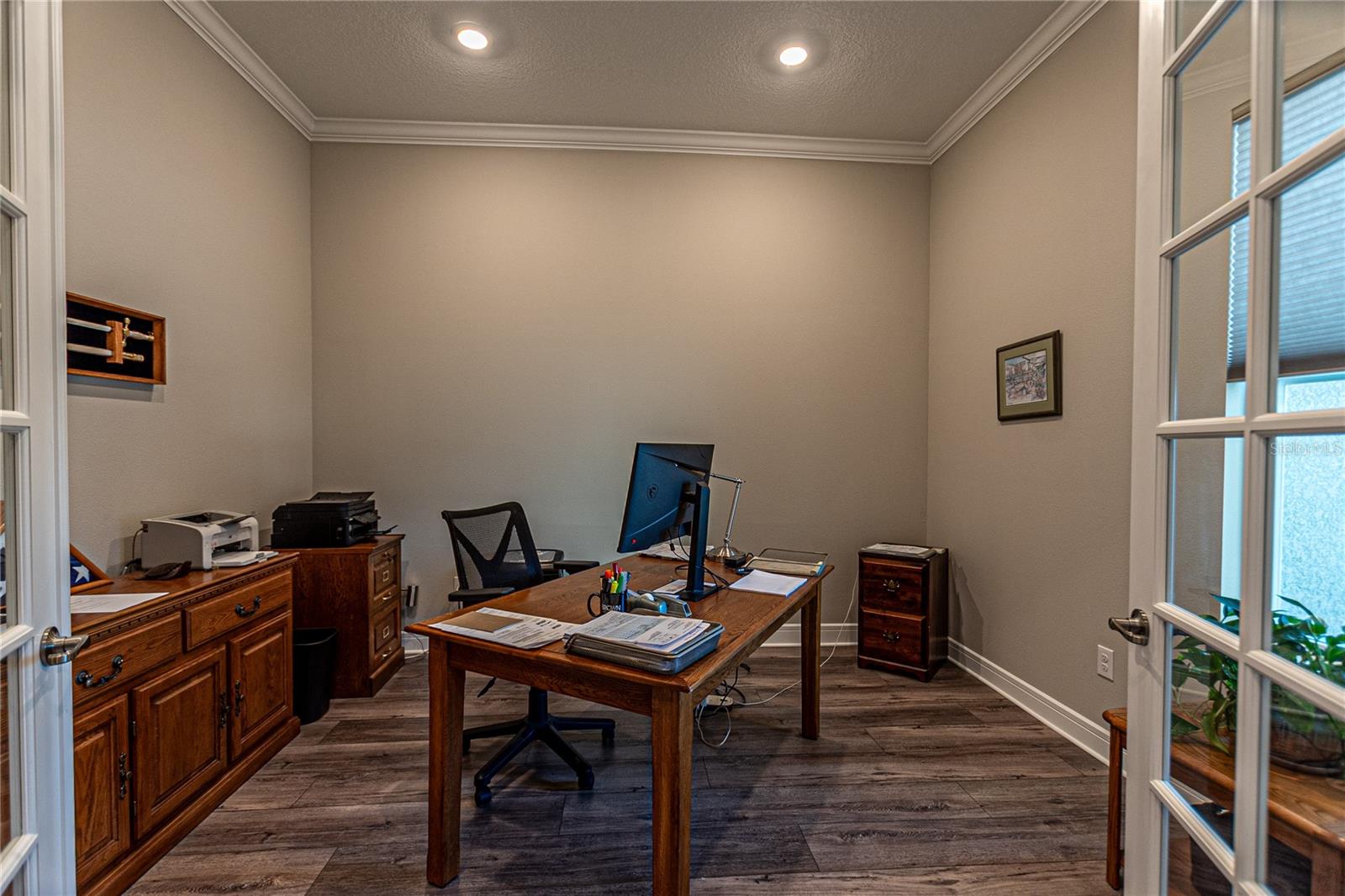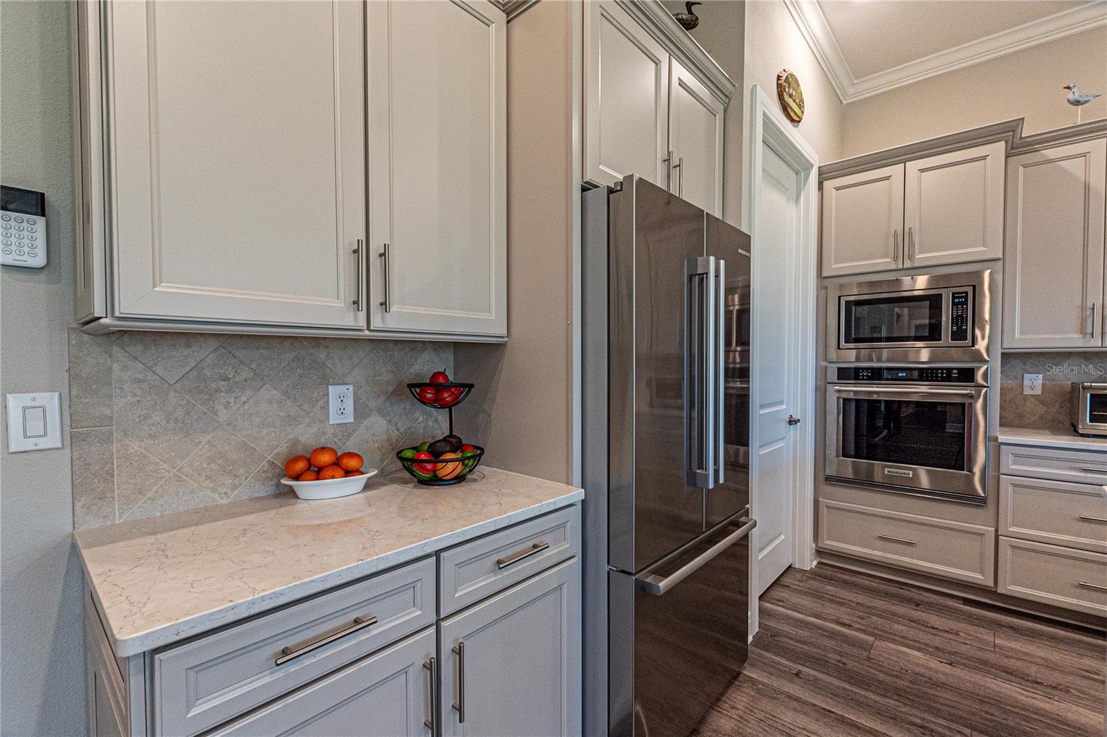 CAMPO DE GOLFE E CASA PREMIER FRENTE À ÁGUA! Descubra em Stone Creek by Del Webb, uma residência que equilibra perfeitamente estilo, funcionalidade e acabamentos premium. Situada no 14º green e com vistas deslumbrantes para o campo de golfe e para o lago, esta casa oferece um layout convidativo projetado para a vida contemporânea. Desfrute de 2.522 pés quadrados de área de estar bem equipada com 3 quartos, 3 banheiros, além de um escritório adicional, ideal para um escritório doméstico ou quarto de hóspedes. A propriedade é aprimorada por uma calçada de tijolos, juntamente com pátios frontais e traseiros que expandem perfeitamente seu espaço ao ar livre. O elegante paisagismo de tijolos e uma varanda com tela aumentam o charme. A casa apresenta tratamentos de janela de cima para baixo e de baixo para cima da Hunter-Douglas, sancas e tetos de bandeja que elevam os quartos. Piso LVP durável e armários de madeira cinza de bom gosto - com gavetas removíveis, portas com fechamento suave e detalhes em sancas - criam um ambiente sofisticado, mas funcional. A cozinha é uma delícia para o chef, completa com um elegante backsplash de azulejos, bancadas de quartzo e eletrodomésticos de última geração, incluindo uma geladeira Bosch embutida no forno de parede, micro-ondas e fogão. O quarto principal foi projetado como um retiro privado, com um enorme closet e um banheiro privativo com box amplo. Aproveite a facilidade de uma lavadora e secadora Samsung, filtro de água de osmose reversa instalado sob a pia da cozinha e um carregador EV dedicado no garagem para maior comodidade. Esta propriedade excepcional é perfeita para quem procura uma mistura de comodidades modernas e detalhes refinados. Seus espaços abertos e cheios de luz e seu design inteligente fazem dele um verdadeiro destaque. Agende sua exibição privada hoje mesmo!