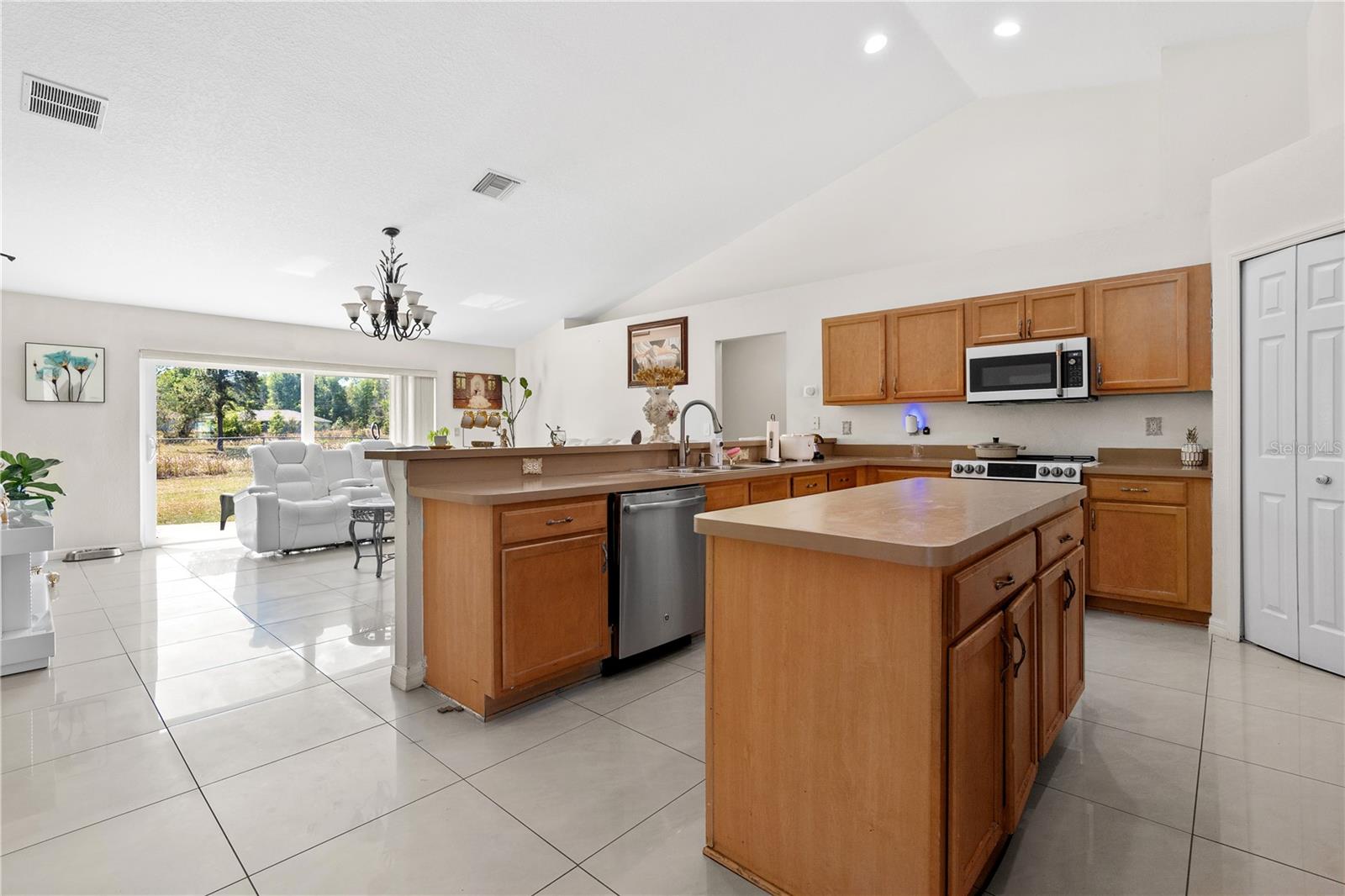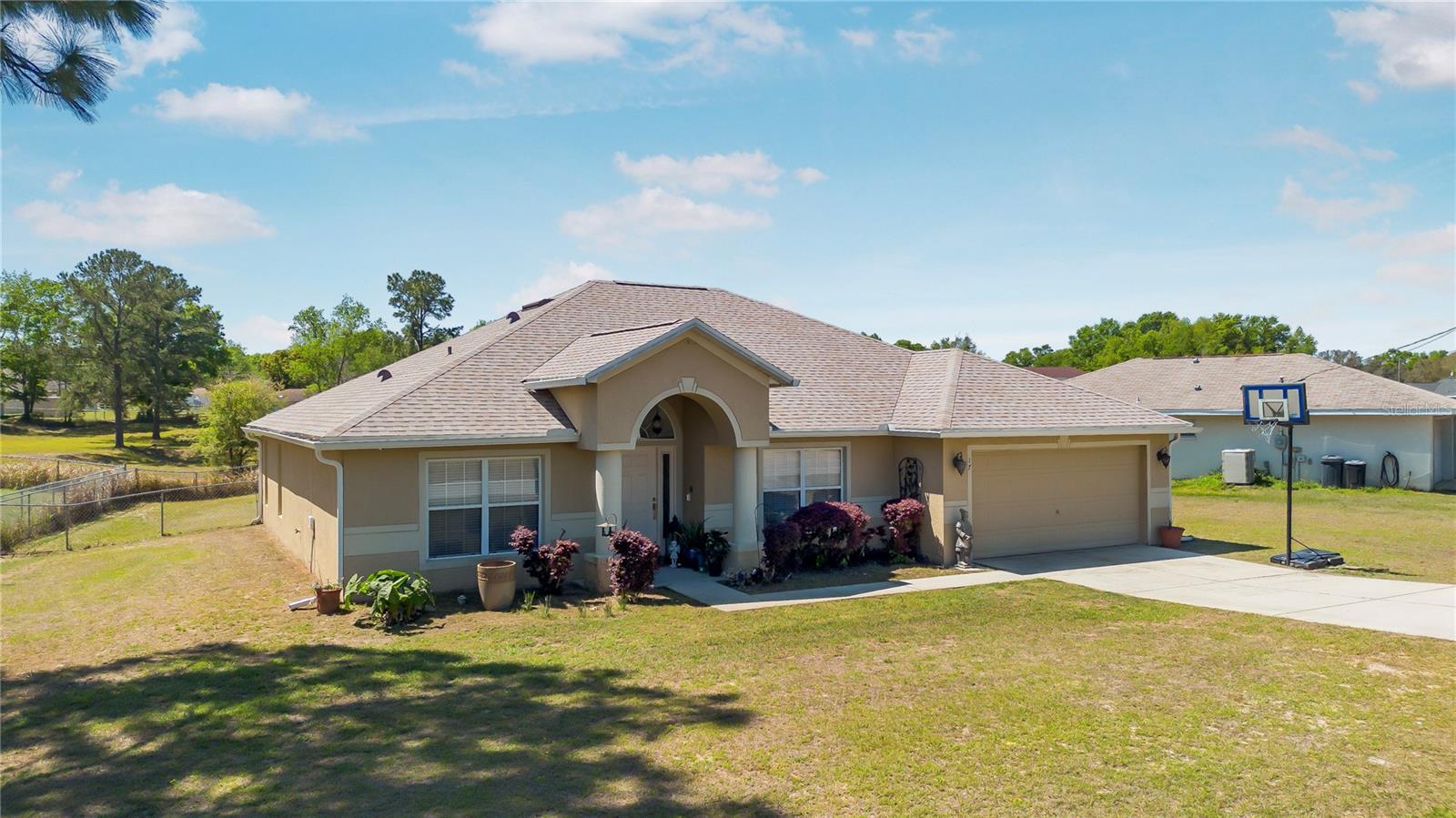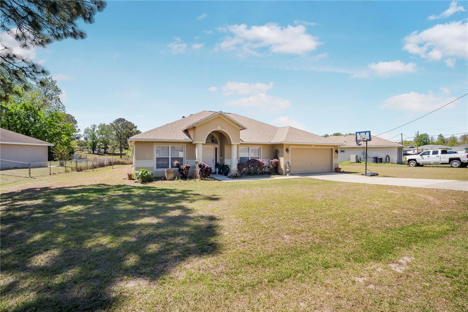 Não, HOA! Bem-vindo a esta residência requintada com três quartos espaçosos e dois banheiros luxuosos. Descubra toques atenciosos, como um espelho Bluetooth no banheiro de hóspedes, para ouvir facilmente sua música favorita, etc., enquanto aplica sua maquiagem. Os tetos da catedral adicionam volume a um espaço claro e luminoso. Vários lustres dão ainda mais luxo a este espaço tão amplo. A casa apresenta uma planta de quartos divididos, ótima para privacidade e conforto. A cozinha muito ampla possui uma ilha central que é ótima para receber familiares e amigos. A casa está definitivamente planejada para facilitar os movimentos. O piso tem grandes porcelanatos e ventiladores em todos os quartos. Por último, mas não menos importante, está um cômodo flexível que pode ser usado como 4º quarto. Da sala de família ao pátio externo há uma grande porta de vidro deslizante personalizada, que joia. Além disso, NÃO HÁ casas construídas atrás desta maravilhosa casa para que você possa desfrutar de momentos tranquilos e sem estresse no encantador pátio ao ar livre, sem perturbações, enquanto observa o pôr do sol. Este é definitivamente um caminho para viver no estilo de vida da Flórida. Há ótimas escolas por toda parte, Walmart, Públicos, Entretenimento, Restaurantes, Hospitais e diversas instalações de atendimento expresso, Trilhas para caminhada, Parques, há tanta coisa para fazer aqui. Além disso, "Ocala possui o maior centro equestre do mundo no coração da Flórida". Não muito longe fica o Silver Spring Shores Community Center, que tem 2 piscinas, quadras de pickleball, quadras de basquete, sala de bilhar, biblioteca e até aulas de cerâmica. Há um lago atrás do Centro Comunitário com mesas ao ar livre para aqueles dias tranquilos. Novas portas de vidro deslizantes e teto personalizados instalados em 2023. Corra! Sua casa espera por você!!