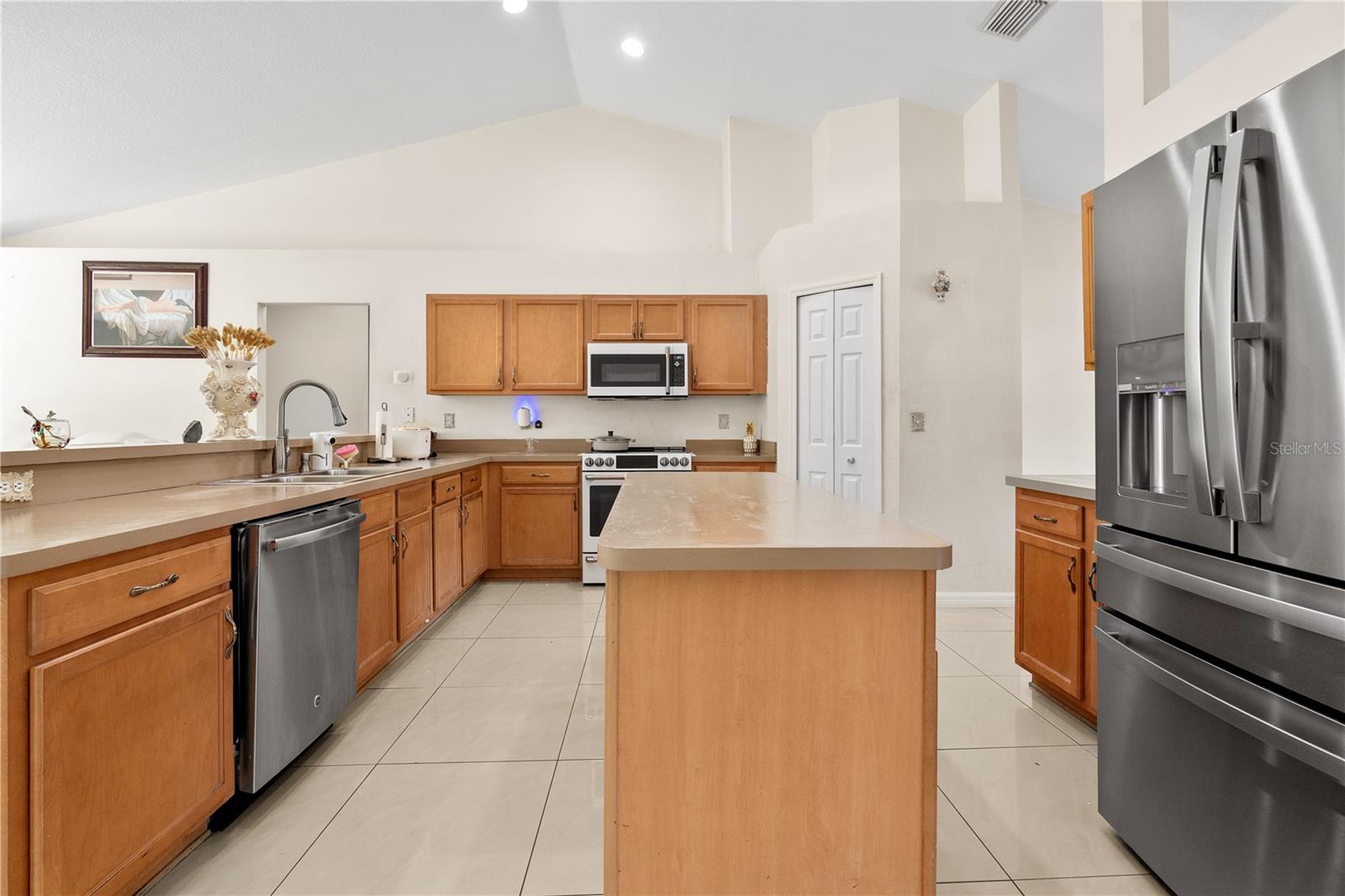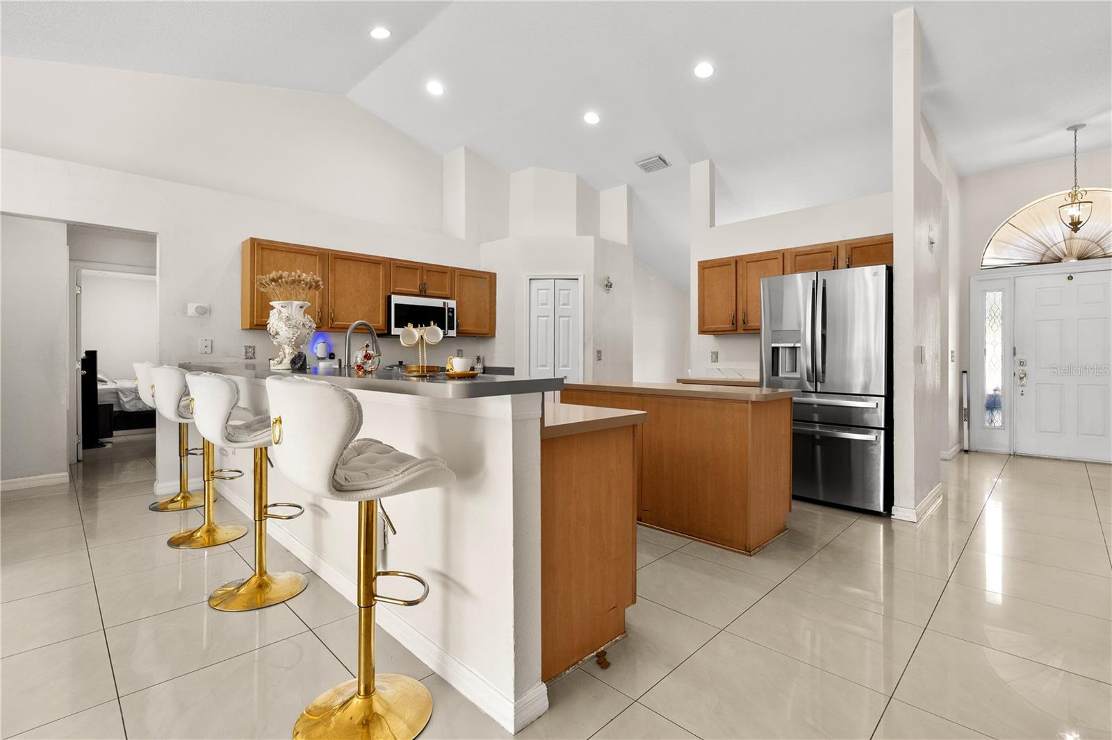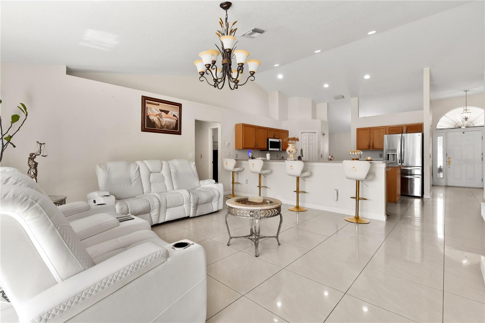 Não, HOA! Bem-vindo a esta residência requintada com três quartos espaçosos e dois banheiros luxuosos. Descubra toques atenciosos, como um espelho Bluetooth no banheiro de hóspedes, para ouvir facilmente sua música favorita, etc., enquanto aplica sua maquiagem. Os tetos da catedral adicionam volume a um espaço claro e luminoso. Vários lustres dão ainda mais luxo a este espaço tão amplo. A casa apresenta uma planta de quartos divididos, ótima para privacidade e conforto. A cozinha muito ampla possui uma ilha central que é ótima para receber familiares e amigos. A casa está definitivamente planejada para facilitar os movimentos. O piso tem grandes porcelanatos e ventiladores em todos os quartos. Por último, mas não menos importante, está um cômodo flexível que pode ser usado como 4º quarto. Da sala de família ao pátio externo há uma grande porta de vidro deslizante personalizada, que joia. Além disso, NÃO HÁ casas construídas atrás desta maravilhosa casa para que você possa desfrutar de momentos tranquilos e sem estresse no encantador pátio ao ar livre, sem perturbações, enquanto observa o pôr do sol. Este é definitivamente um caminho para viver no estilo de vida da Flórida. Há ótimas escolas por toda parte, Walmart, Públicos, Entretenimento, Restaurantes, Hospitais e diversas instalações de atendimento expresso, Trilhas para caminhada, Parques, há tanta coisa para fazer aqui. Além disso, "Ocala possui o maior centro equestre do mundo no coração da Flórida". Não muito longe fica o Silver Spring Shores Community Center, que tem 2 piscinas, quadras de pickleball, quadras de basquete, sala de bilhar, biblioteca e até aulas de cerâmica. Há um lago atrás do Centro Comunitário com mesas ao ar livre para aqueles dias tranquilos. Novas portas de vidro deslizantes e teto personalizados instalados em 2023. Corra! Sua casa espera por você!!