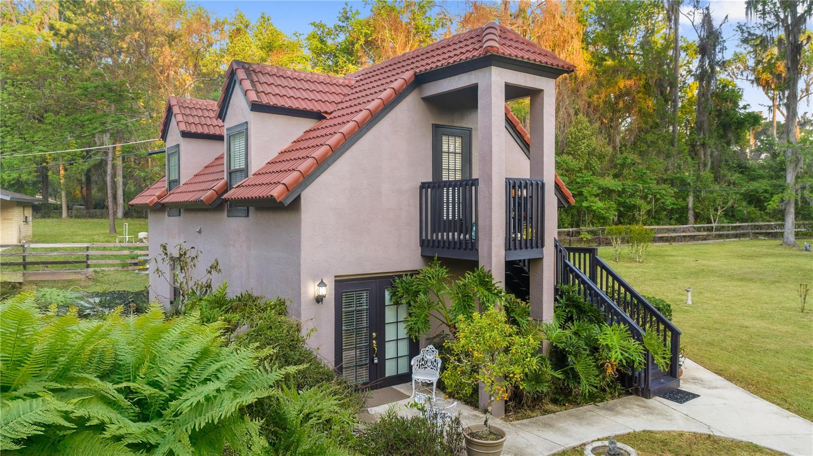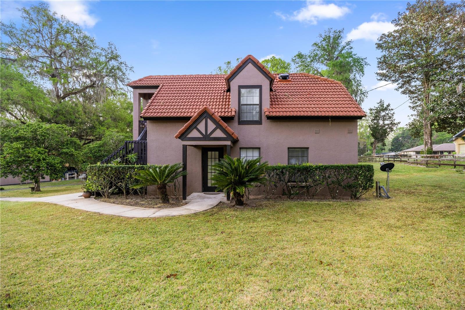 PERFEITO PARA FAMÍLIAS MULTIGERACIONAIS OU PRODUÇÃO DE RENDA! Situadas em 1,45 acres, estas duas casas atemporais em estilo country francês exalam o charme europeu do velho mundo com elementos rústicos e elegância discreta. A casa principal oferece 3 quartos, além de escritório, 3,5 banheiros e um design dramático de três níveis, com uma impressionante lareira de pedra servindo como ponto focal da grande área de estar. Ricos pisos de madeira de carvalho, entrada em parquet, venezianas e estantes e armários de pinho nodosos adicionam calor e personalidade por toda parte. A espaçosa suíte principal inclui uma sala de estar com vista para o aviário, enquanto o primeiro andar apresenta uma pitoresca cozinha de chef com piso de cerâmica Saltillo e eletrodomésticos de aço inoxidável, conectando-se perfeitamente à aconchegante sala familiar e à varanda envidraçada. Este espaço leva à convidativa piscina e pátio de 16 x 36, onde o doce aroma do jasmim preenche o ar. A charmosa Carriage House é uma adição versátil, oferecendo 1 quarto, 2 banheiros completos (primeiro andar acessível para cadeiras de rodas), uma cozinha completa e um escritório - perfeito para família extensa ou como propriedade de renda. A propriedade tem um belo paisagismo, com fontes de água serenas, estátuas e um ambiente semelhante a um parque que cria um santuário tranquilo. As comodidades adicionais incluem garagem para 2 carros, campo de ténis, telheiro com arrecadação anexa, área de lazer com baloiços e barras de escalada e um elegante portão de aço, acrescentando o toque perfeito de sofisticação a esta extraordinária propriedade. A curta distância do centro de Ocala, restaurantes, grandes hospitais, Florida Horse Park, World Equestrian Center e muito mais! Não espere e marque hoje mesmo a sua consulta!