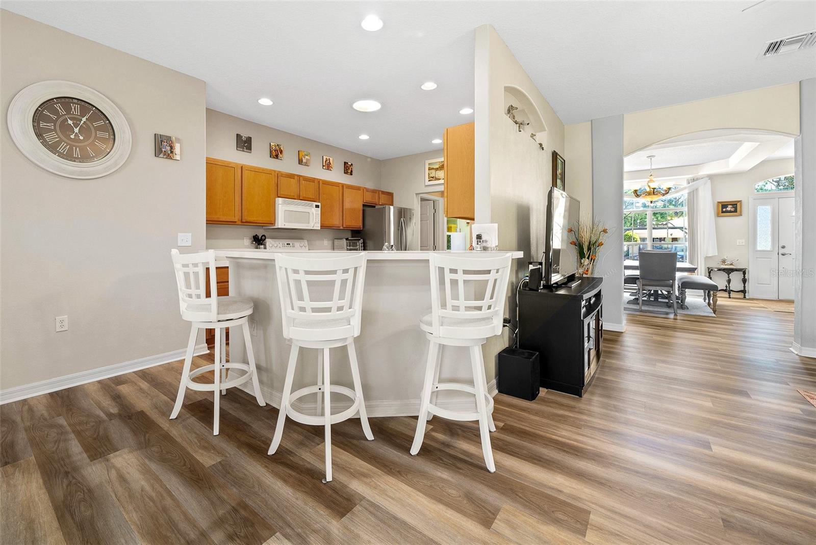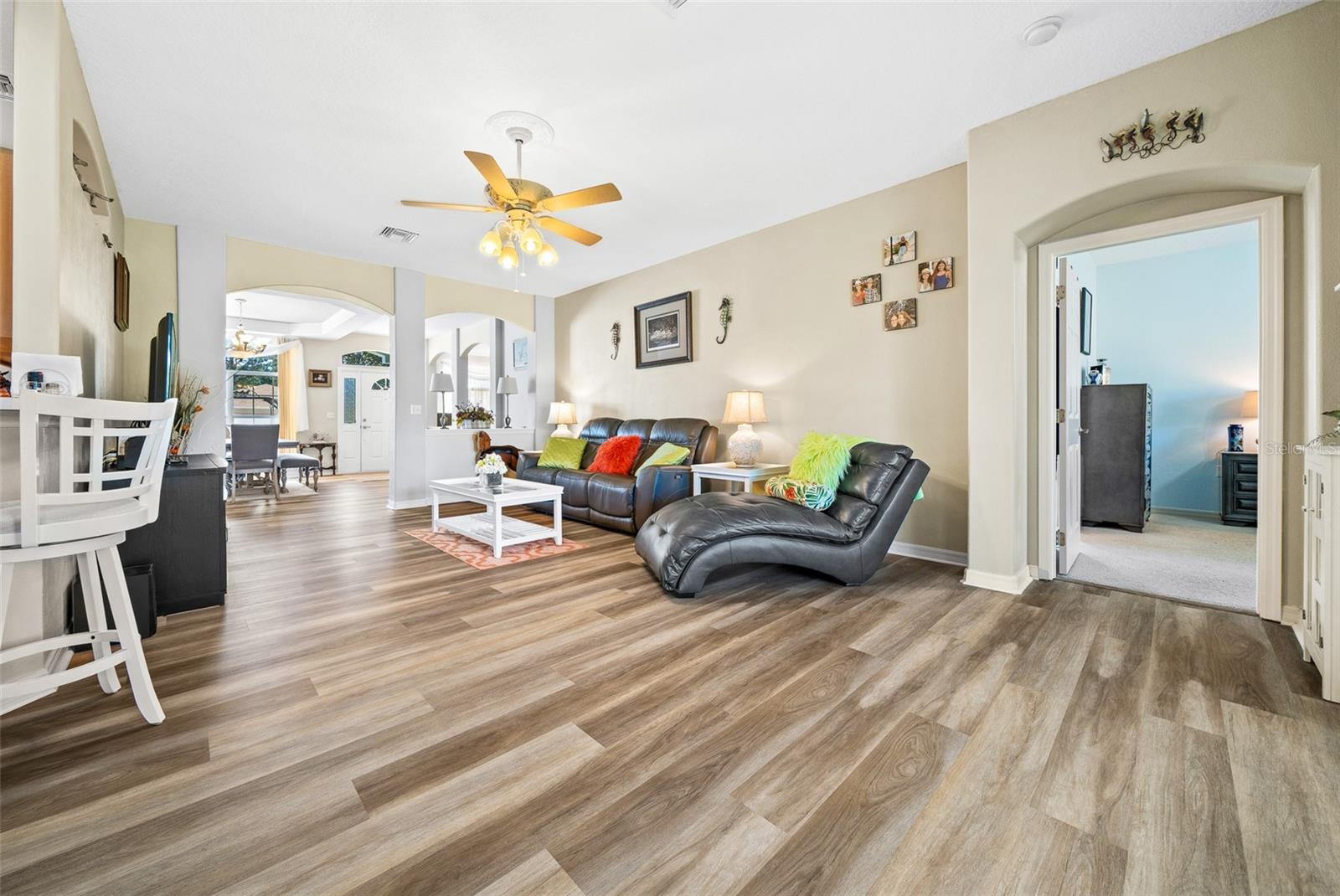 Aqui está o lar perfeito para você se retirar para o lindo e quente estado do sol! No final de um beco sem saída e backup dos buracos 13/14, não é melhor do que isso, especialmente para os aficionados de golfe! Torne a chave com telhado mais recente instalado em dezembro de 2023, aquecedor de AC/água em 2020, pintado recém -pintado por dentro e por fora e tremendo apelo do meio -fio! Após a entrada, você encontrará a área de jantar com piso laminado em todo o espaço principal da casa com um tapete mais recente na cova. À medida que você se afasta, você notará tetos de 9 pés durante toda a sala de estar com portas deslizantes que se abrem para a exibida em Lanai, perfeita para relaxar. A suíte master é enorme com um banheiro igualmente grande e um closet ainda maior! Do outro lado da casa, além da área da cozinha e do canto, há dois quartos com tamanho decente e o segundo banheiro. A área da cozinha tem o bar de café da manhã e o canto, ao lado da geladeira e da máquina de lavar louça com apenas alguns anos de idade. Se isso não bastasse, há um quarto extra em um canto da casa atualmente sendo usado como um escritório que poderia ser facilmente convertido em um quarto quarto. Lavanderia dentro de casa, o que leva à garagem de 2 carros grandes. A casa está equipada com sistema de aspersão e linha de gás (aquece o aquecedor de CA e água) e, apenas para você, a manutenção do gramado totalmente transferível após a venda. Comunidades comunitárias: Wi -Fi, cabo, grama, piscina, quadras de tênis, softbol, jardinagem, parque de cães e o melhor de tudo incluem estacionamento de RV/trailers.