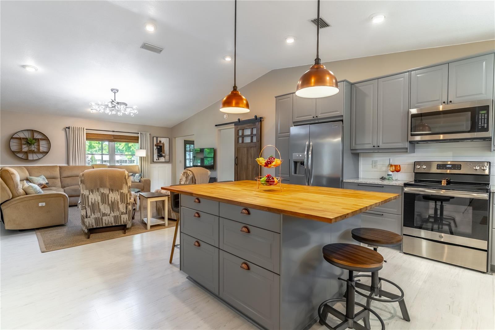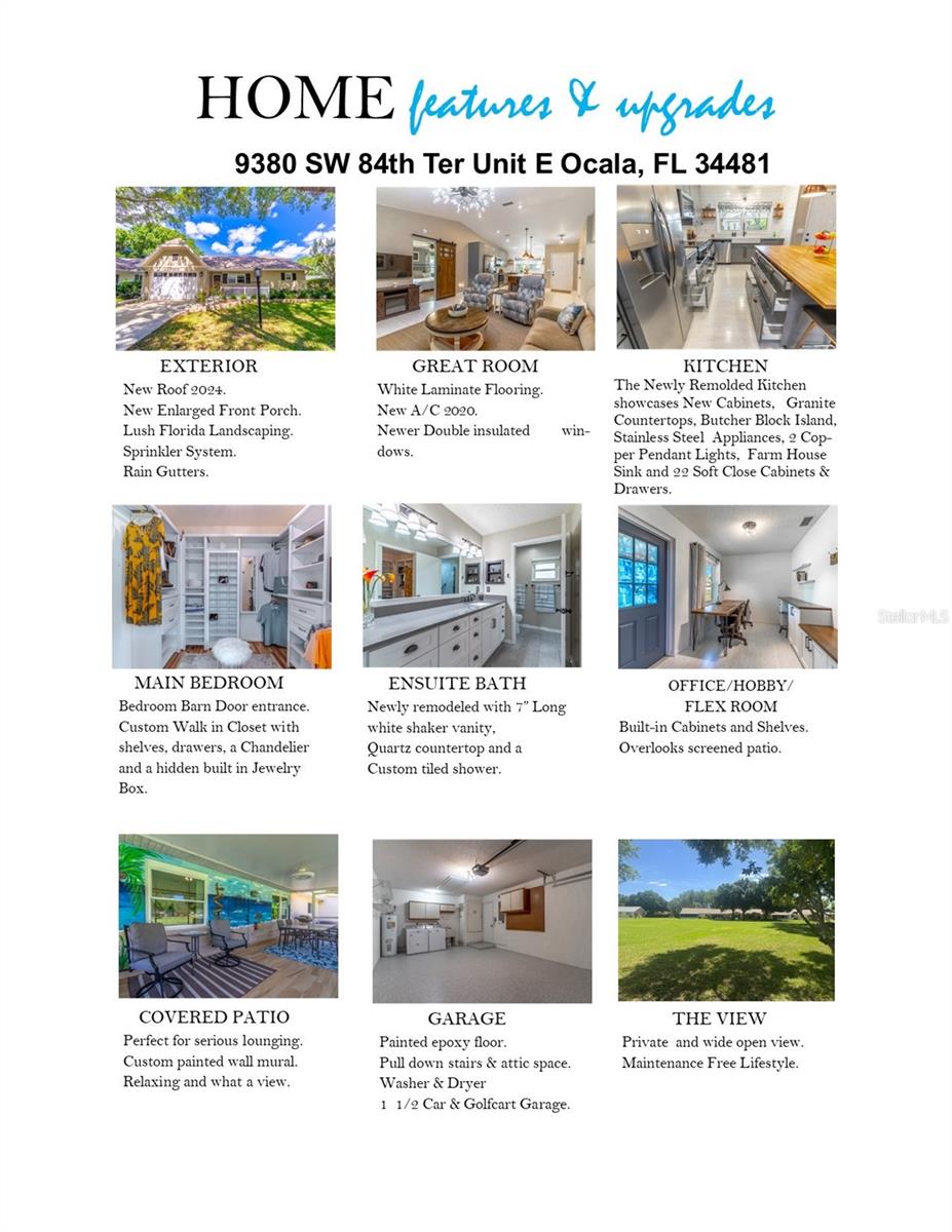 Você não acreditará nesta unidade de extremidade de cima para baixo remodelada Villa no topo da comunidade mundial em Sunny Ocala, FL. A parte de trás é uma terra aberta, sem vizinhos atrás de você! Há um campo de futebol inteiro de espaço aberto para desfrutar! Assim que você entrar, você notará o distinto piso laminado branco que unifica a cozinha aberta e a grande sala, criando um espaço moderno e expansivo para a vida cotidiana ou uma festa com os amigos. A cozinha recém -remoldada exibe novos armários, bancadas de granito, Butcher Block Island com acomodações 4, utensílios de aço inoxidável, 2 luzes pendentes de cobre, pia da casa da fazenda e 22 armários e gavetas de fechamento suaves. Em seguida, abre a porta do celeiro para o seu quarto principal com uma caminhada personalizada, para que você se sinta como um molho estrela para o tapete vermelho. Prateleiras personalizadas, gavetas, caixa de jóias escondidas embutidas e até um lustre. O recém-remodelado banheiro privativo ostenta uma vaidade de shaker branca de 7 ”de comprimento com bancada de quartzo e um chuveiro de ladrilhos personalizado deslumbrante que fará você dizer ooh-la-la! Precisa de um local para suas idéias selvagens? Não tema! O escritório/hobby/sala flexível construiu armários e espaço de trabalho para todas as suas atividades bem-intencionadas. O pátio coberto rastreado é perfeito para relaxar com seu mural de parede pintado personalizado e a vista aberta. Aproveite sua privacidade e um estilo de vida livre de preocupações com um novo telhado em 2024 e novo A/C em 2020. A garagem de 1 ½ carros também tem espaço para o seu carro e carrinho de golfe!