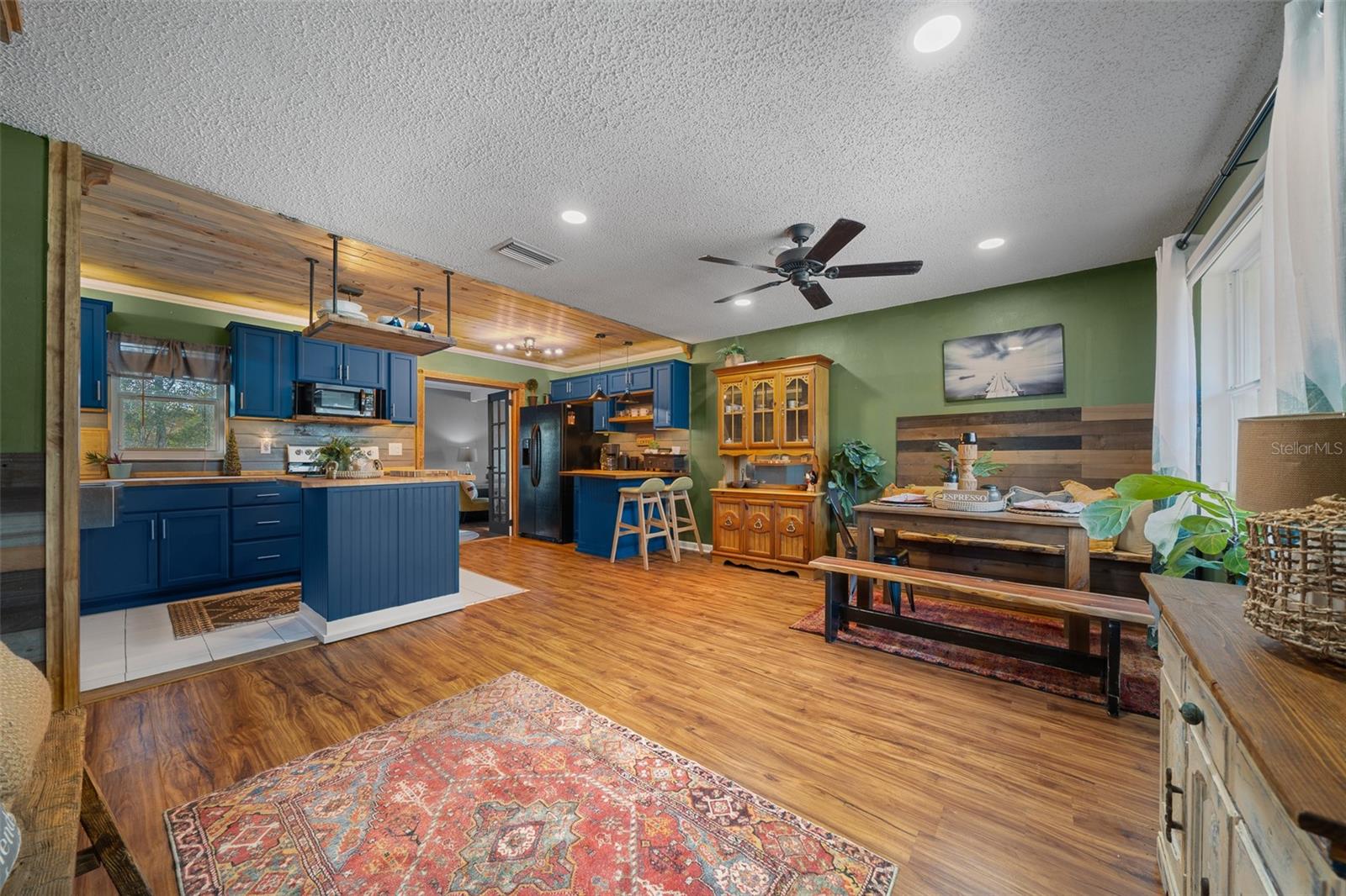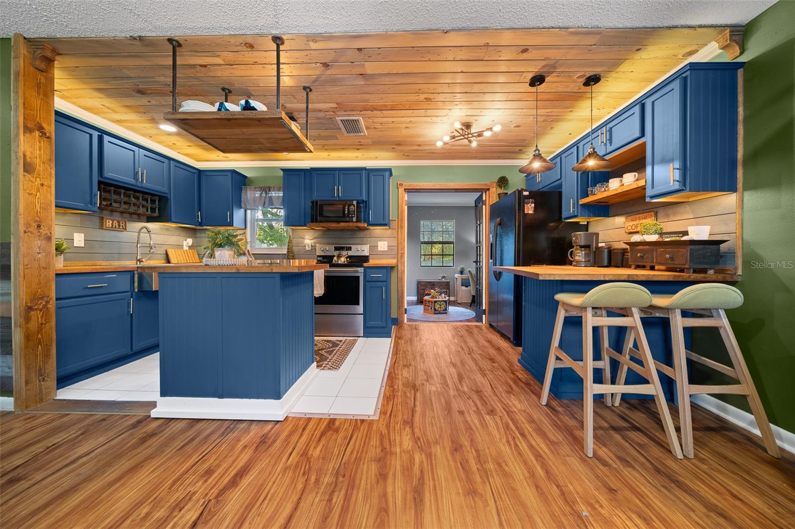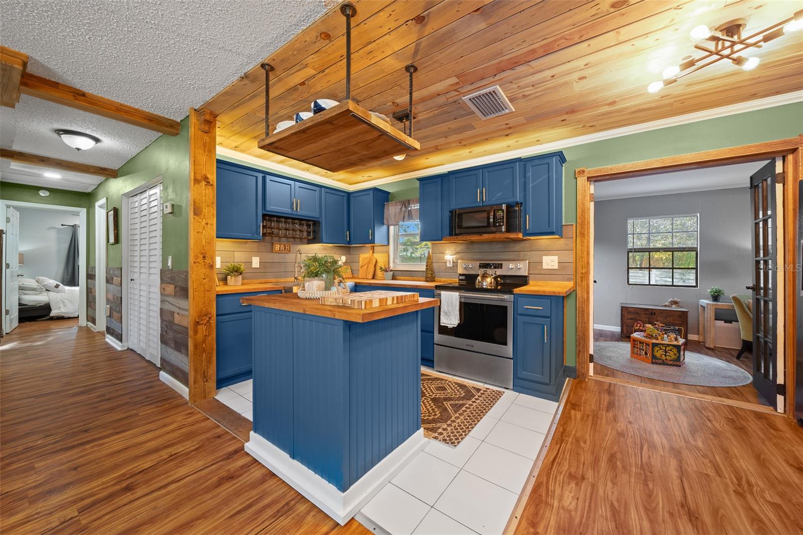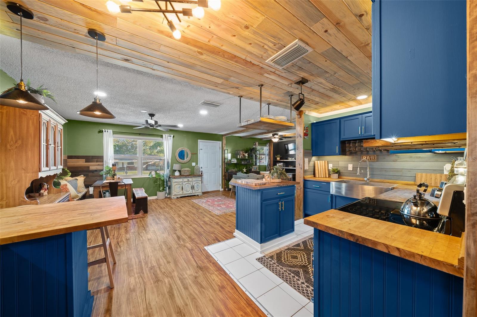 Bem-vindo ao 3716 SW 147th St, Ocala-uma casa lindamente atualizada de 2 quartos e 1 banheiro com uma sala de bônus/flexão, perfeita para um escritório, espaço para hóspedes ou sala de hobby. Cuidado renovado com recursos personalizados, esta casa combina toques modernos com charme quente e rústico. Entre para encontrar as bancadas do bloco de açougueiro na cozinha, complementadas por tetos impressionantes de madeira de pinheiro azul que adicionam uma sensação aconchegante e natural. A sala de estar mostra acabamentos de madeira personalizados no teto, criando um ponto focal único. A cozinha é elegante e funcional, apresentando iluminação sobre e sub-cabinetes para o ambiente perfeito. Com um telhado de 2020, esta casa oferece tranquilidade, e a laje de concreto no quintal fornece a base perfeita para um galpão futuro ou espaço ao ar livre. Não perca esta casa única-cambie sua exibição hoje!