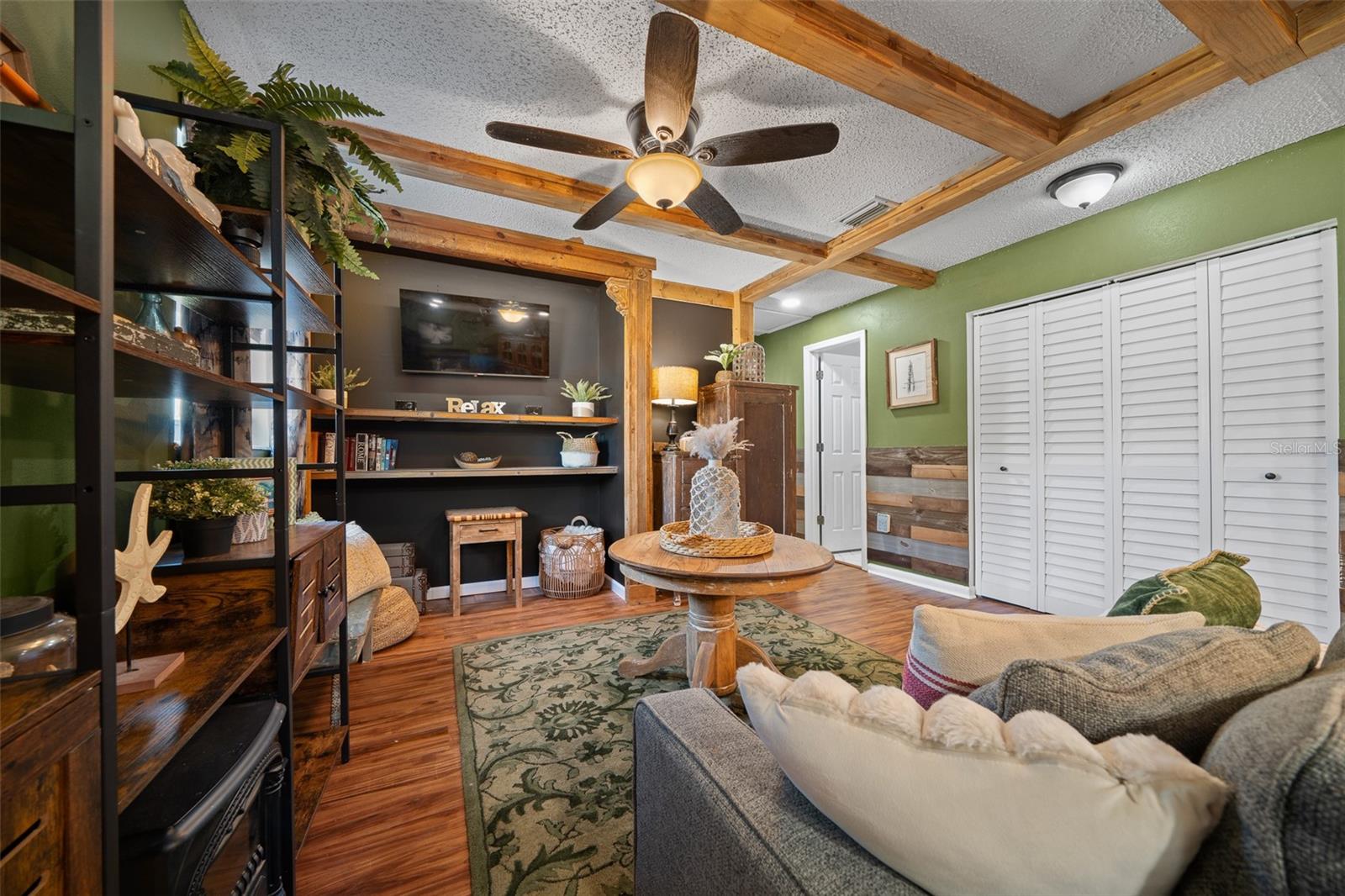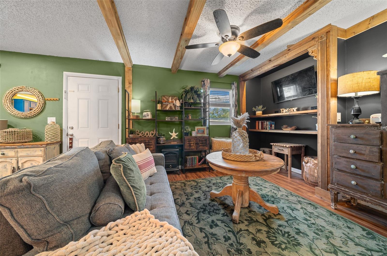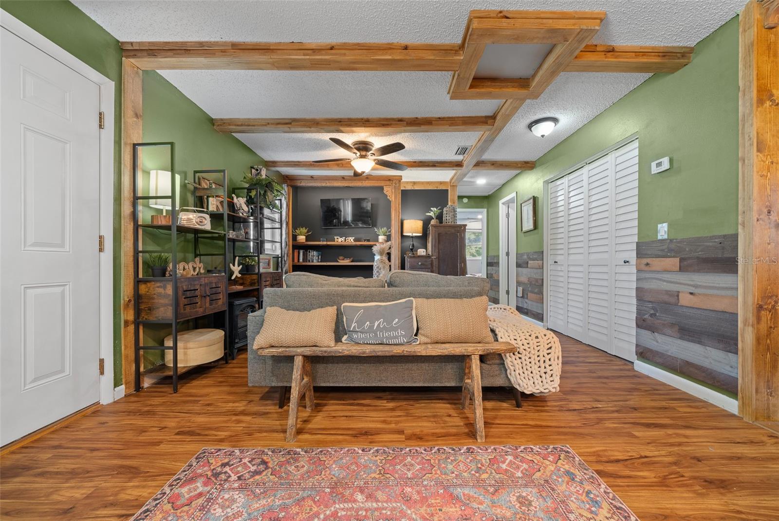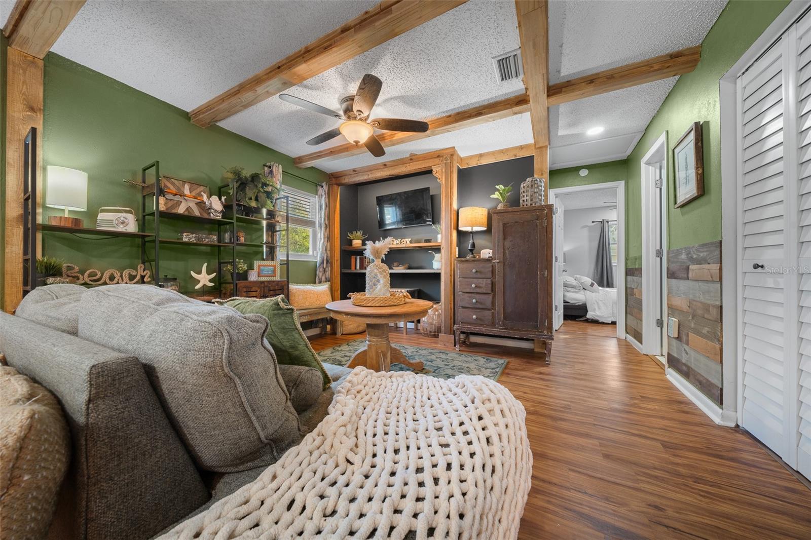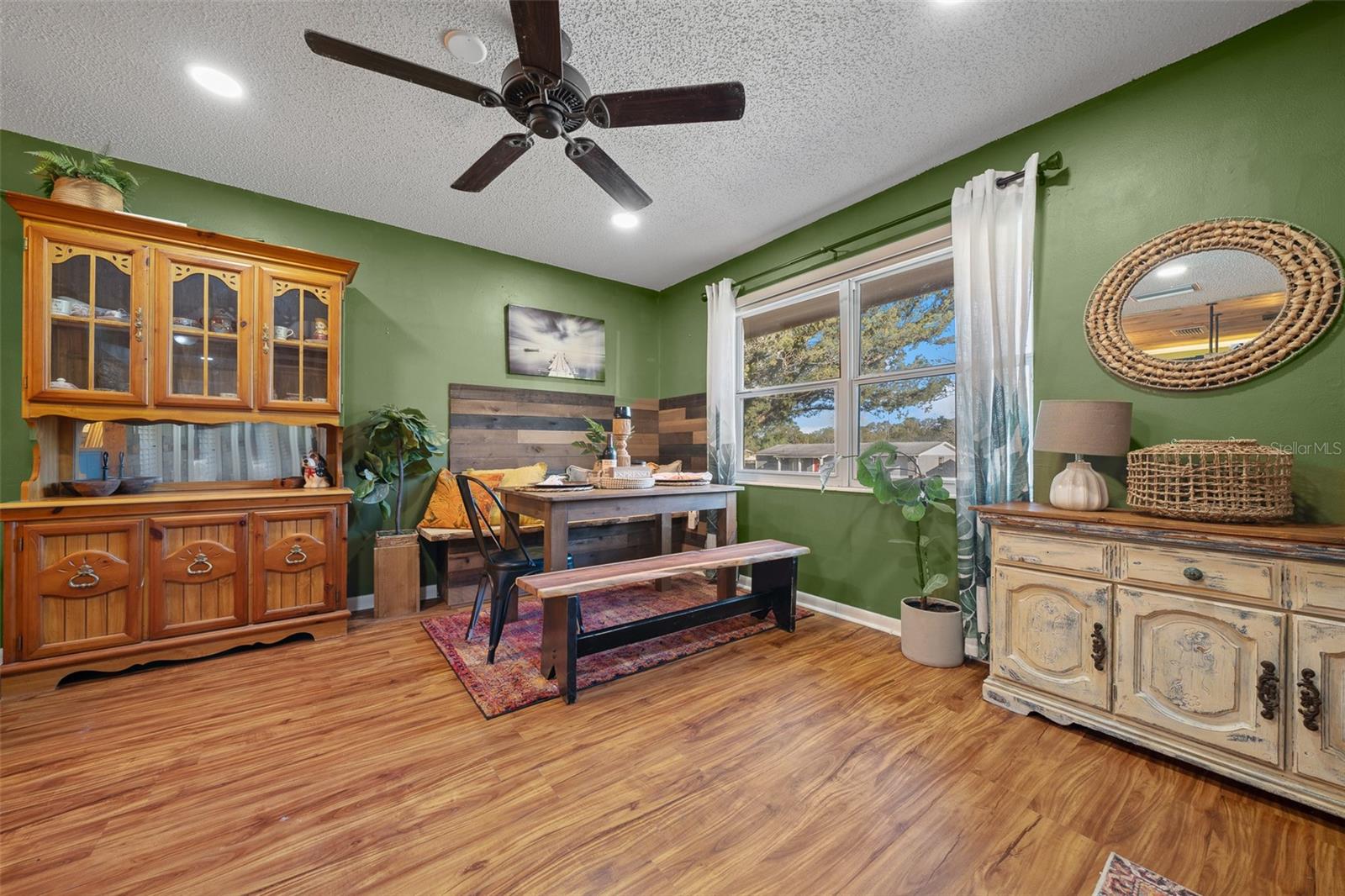 Bem-vindo ao 3716 SW 147th St, Ocala-uma casa lindamente atualizada de 2 quartos e 1 banheiro com uma sala de bônus/flexão, perfeita para um escritório, espaço para hóspedes ou sala de hobby. Cuidado renovado com recursos personalizados, esta casa combina toques modernos com charme quente e rústico. Entre para encontrar as bancadas do bloco de açougueiro na cozinha, complementadas por tetos impressionantes de madeira de pinheiro azul que adicionam uma sensação aconchegante e natural. A sala de estar mostra acabamentos de madeira personalizados no teto, criando um ponto focal único. A cozinha é elegante e funcional, apresentando iluminação sobre e sub-cabinetes para o ambiente perfeito. Com um telhado de 2020, esta casa oferece tranquilidade, e a laje de concreto no quintal fornece a base perfeita para um galpão futuro ou espaço ao ar livre. Não perca esta casa única-cambie sua exibição hoje!