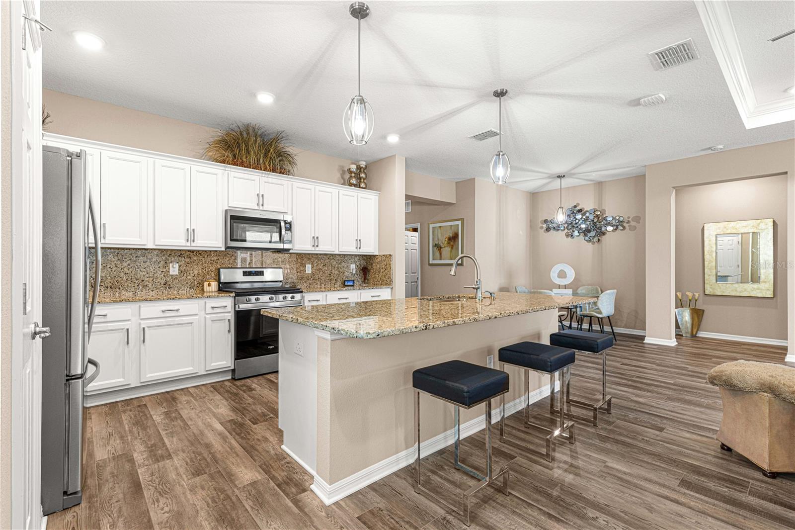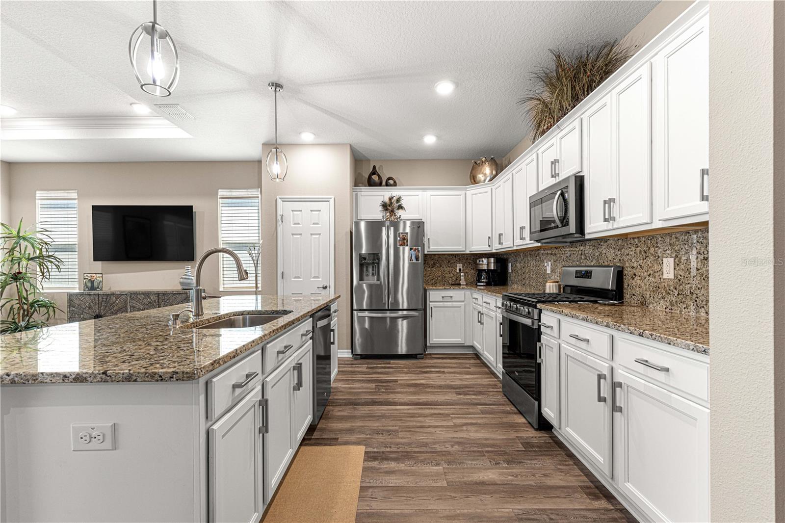 Tremenda melhoria de preço nesta deslumbrante casa inteligente Sunflower! Por que construir quando você pode mudar-se diretamente para esta linda casa na comunidade de Weybourne Landing em On Top of the World! Como nova, esta bela casa possui cores neutras e quentes e está repleta de atualizações de construtores e milhares de dólares em melhorias pós-venda. A casa possui tetos de bandeja e sancas elegantes nas áreas principais, uma grande lavanderia com armários, pia e prateleiras extras para maior comodidade, lindas bancadas de granito e um fogão a gás na cozinha, e recentemente instalado piso de pranchas de vinil de luxo de qualidade por toda parte. O proprietário tem um gosto requintado em decoração e instalou ventiladores de teto e luminárias de luxo, além de coberturas de janelas de alta qualidade em toda a casa. O quarto principal possui um amplo closet e banheiro privativo com box amplo atualizado e pias duplas. Outro atributo desta casa é o fabuloso quintal, vedado, com pátio decorativo e jardim zen. Outros recursos incluem amaciante de água, racks extras de armazenamento no teto na garagem e câmeras de segurança que podem ser acessadas por meio de aplicativos domésticos inteligentes. Weybourne Landing é um bairro maravilhoso com suas próprias comodidades privadas. Não perca - coloque este na sua lista!
