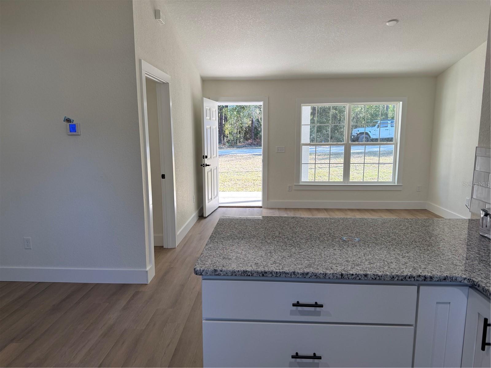 Pronto para mover-se! Casa recém -construída em comunidade tranquila. Plano dividido com teto abobadado, piso laminado resistente à água, construção de blocos de concreto com acabamento de estuque, telhas arquitetônicas, área de estar de varanda da frente de 20'x5 ', séptico privado e poço privado.