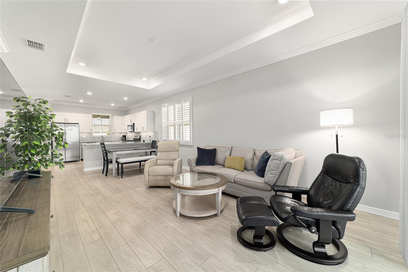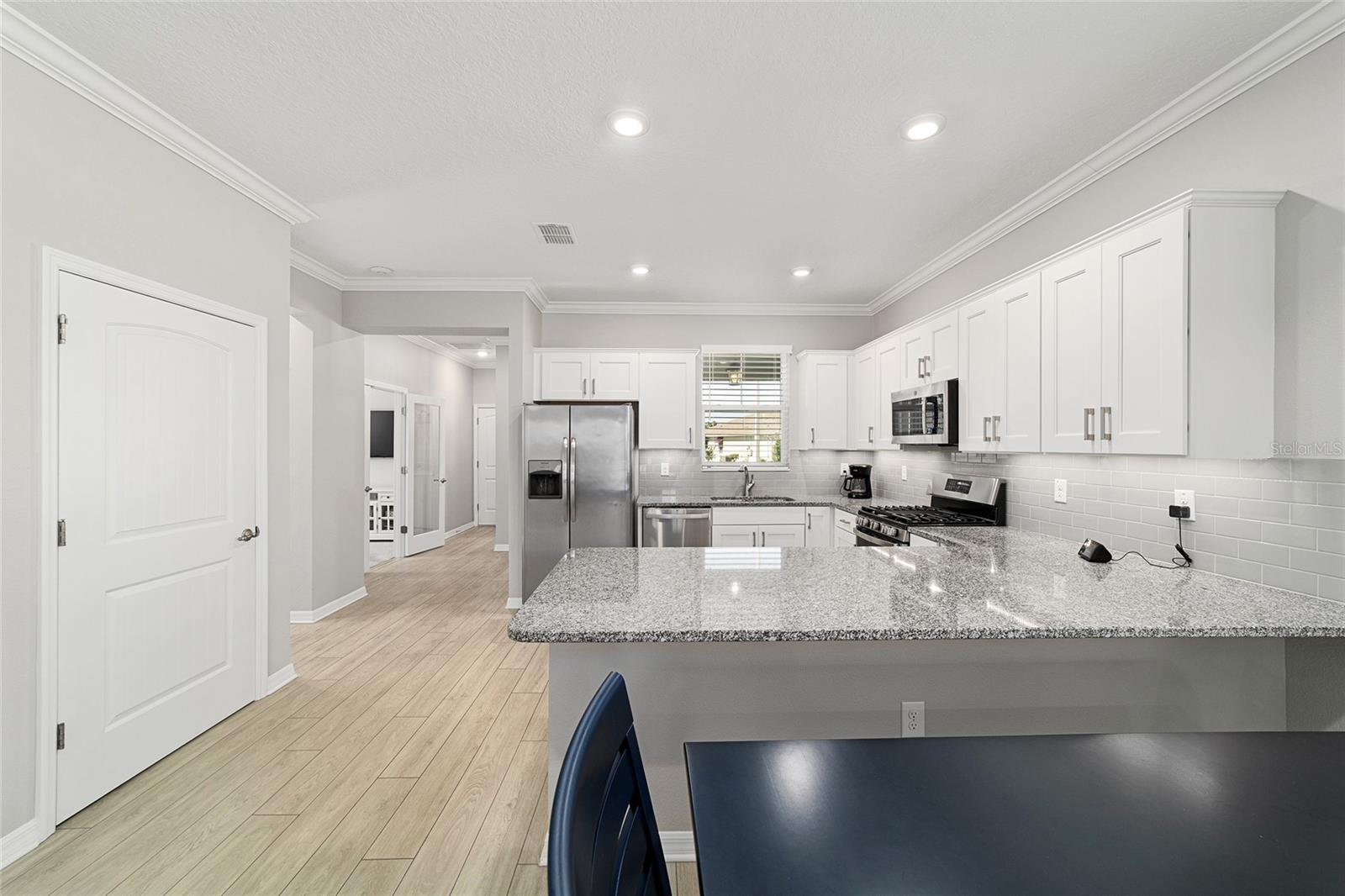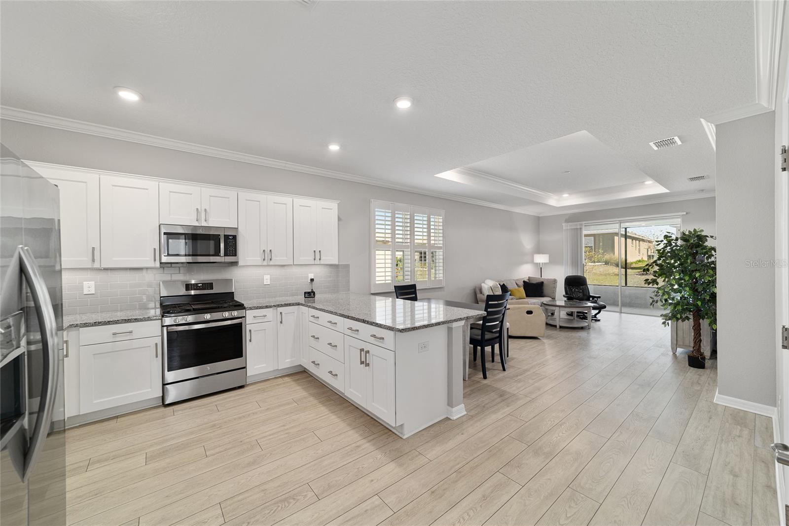 Este tamar "inteligente" imaculadamente mantido está localizado em Longleaf Ridge 1 in topo do mundo, perto do centro de amenidades dos arboras, bem como do cume, a mais nova comodidade de Otow. Com 2 quartos, 2 banheiros, garagem de 2 carros e uma sala flexível que pode dobrar como um terceiro quarto, escritório ou sala de artesanato, esta casa tem muitas atualizações e tem um preço de venda. A cozinha deslumbrante tem iluminação de armários, utensílios de aço inoxidável, balcões de granito e backsplash de ladrilhos de vidro de metrô. Os armários brancos foram atualizados com moldagem da coroa e cauda de cauda, recursos suaves. Desfrute de pisos de tábua de vinil de luxo em todos os espaços e cozinha enquanto tinham o conforto do tapete nos quartos. Esta casa possui tantos recursos notáveis dos tetos da bandeja, moldagem por coroa, cores de tinta personalizadas, piso de garagem epóxia, garagem de pavimentação de tijolos expandida e persianas no estilo do obturador para os banheiros atualizados que têm um chuveiro de azulejos complementados por listos. O quarto principal tem um grande closet, bem como um banheiro privativo com pia de vaidade dupla e um grande chuveiro de entrada zero com um gabinete de chuveiro sem moldura. O chuveiro também tem assentos de bancada e piso de rocha no rio, além de 2 nichos de chuveiro que facilmente se afastam dos itens essenciais do chuveiro. Se a vida ao ar livre é uma prioridade, o pátio de pavimentação de tijolos de 10x30 com uma linha de gás para grelhar ao ar livre não decepcionará. Também facilmente observado nesta casa de 2021, nada foi pendurado nas paredes, o que significa que não há buracos desagradáveis para corrigir ... É uma lousa em branco esperando por um novo proprietário. No topo do mundo, está o primeiro campo de golfe de 55 mais de 55 anos da Ocala, a comunidade de estilo resort com acesso ao carrinho de golfe a compras, bancos, restaurantes, entretenimento, saúde e beleza.