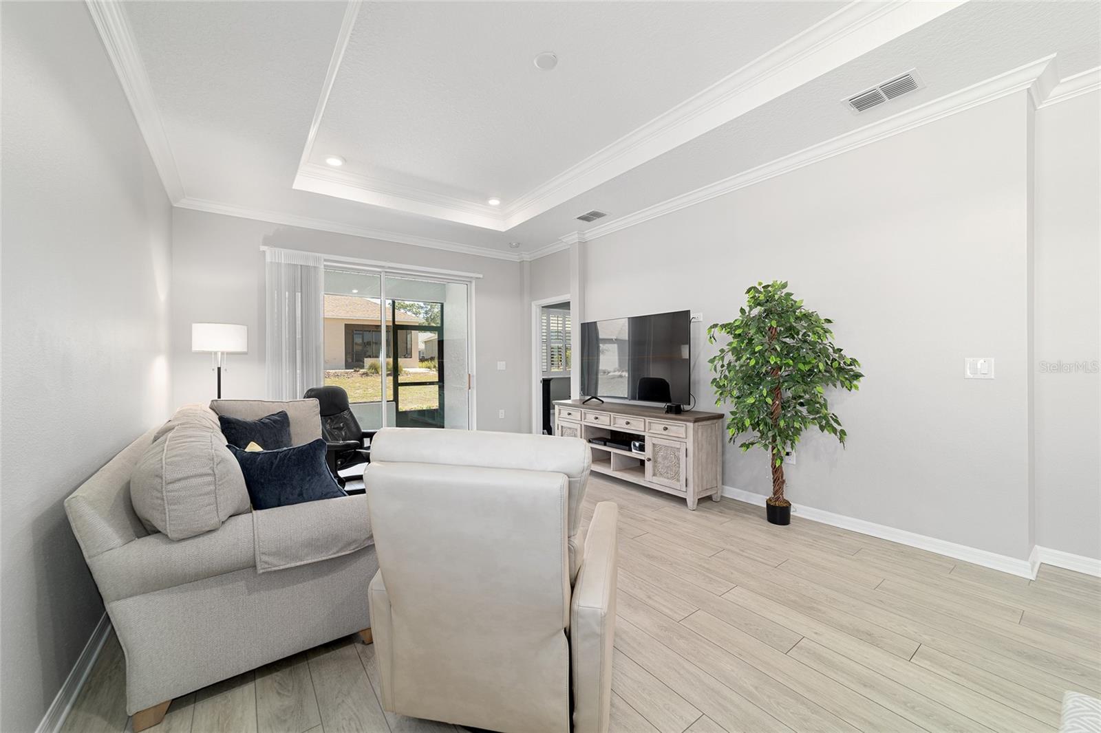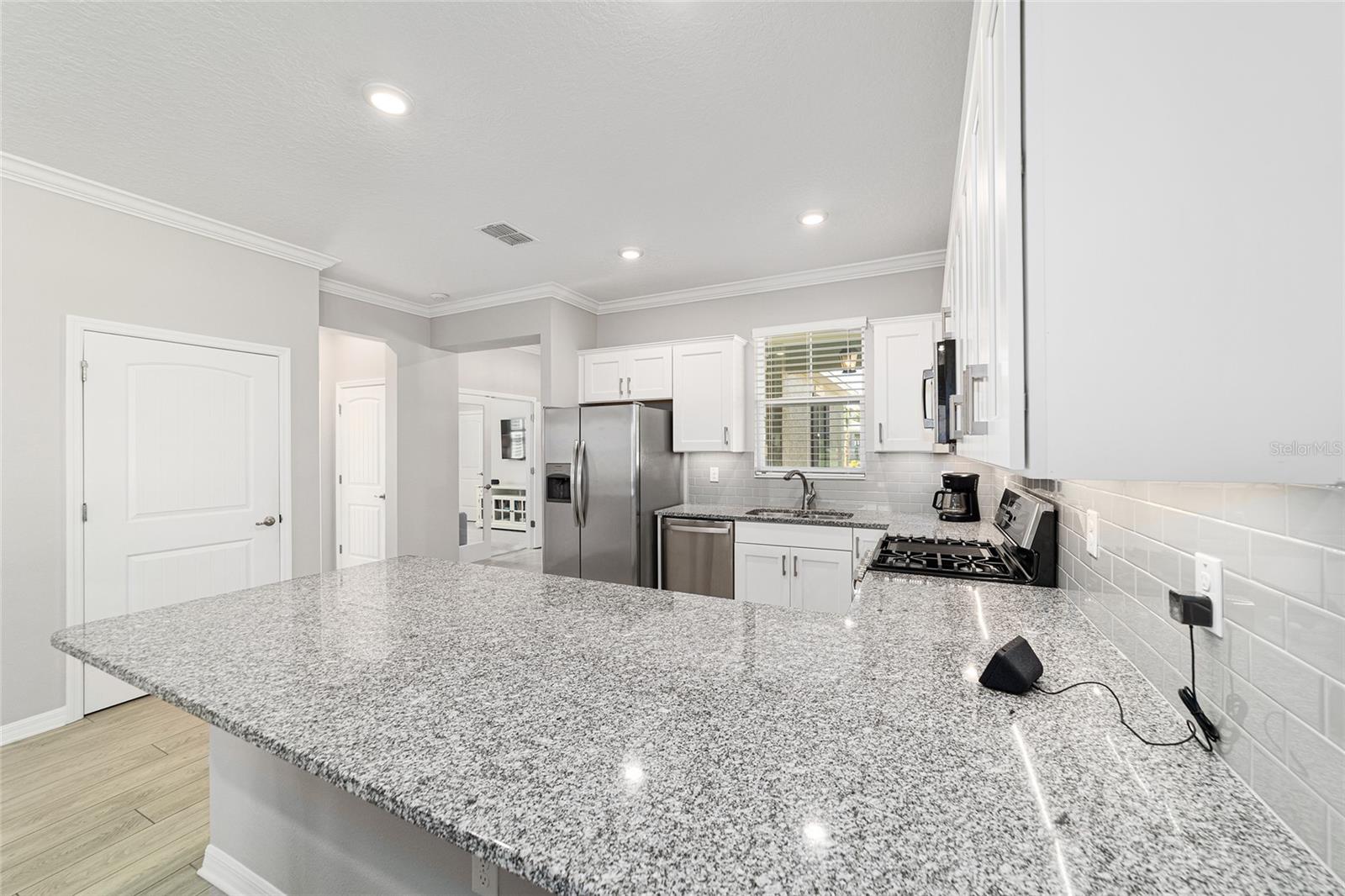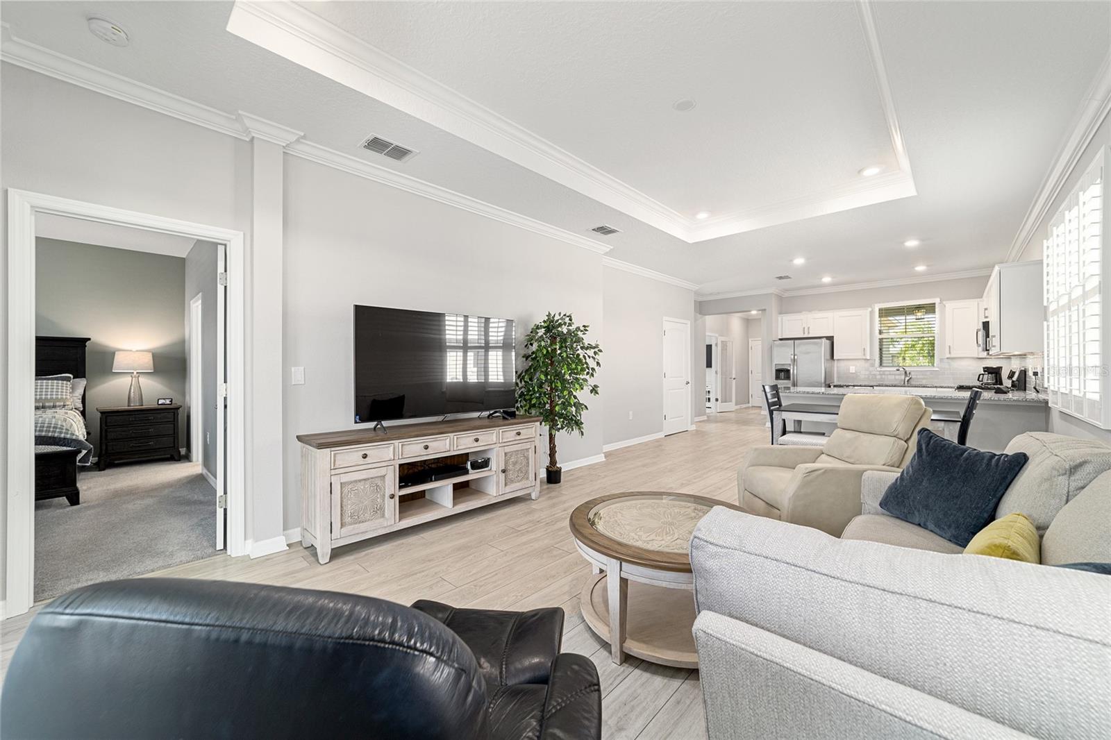 Este tamar "inteligente" imaculadamente mantido está localizado em Longleaf Ridge 1 in topo do mundo, perto do centro de amenidades dos arboras, bem como do cume, a mais nova comodidade de Otow. Com 2 quartos, 2 banheiros, garagem de 2 carros e uma sala flexível que pode dobrar como um terceiro quarto, escritório ou sala de artesanato, esta casa tem muitas atualizações e tem um preço de venda. A cozinha deslumbrante tem iluminação de armários, utensílios de aço inoxidável, balcões de granito e backsplash de ladrilhos de vidro de metrô. Os armários brancos foram atualizados com moldagem da coroa e cauda de cauda, recursos suaves. Desfrute de pisos de tábua de vinil de luxo em todos os espaços e cozinha enquanto tinham o conforto do tapete nos quartos. Esta casa possui tantos recursos notáveis dos tetos da bandeja, moldagem por coroa, cores de tinta personalizadas, piso de garagem epóxia, garagem de pavimentação de tijolos expandida e persianas no estilo do obturador para os banheiros atualizados que têm um chuveiro de azulejos complementados por listos. O quarto principal tem um grande closet, bem como um banheiro privativo com pia de vaidade dupla e um grande chuveiro de entrada zero com um gabinete de chuveiro sem moldura. O chuveiro também tem assentos de bancada e piso de rocha no rio, além de 2 nichos de chuveiro que facilmente se afastam dos itens essenciais do chuveiro. Se a vida ao ar livre é uma prioridade, o pátio de pavimentação de tijolos de 10x30 com uma linha de gás para grelhar ao ar livre não decepcionará. Também facilmente observado nesta casa de 2021, nada foi pendurado nas paredes, o que significa que não há buracos desagradáveis para corrigir ... É uma lousa em branco esperando por um novo proprietário. No topo do mundo, está o primeiro campo de golfe de 55 mais de 55 anos da Ocala, a comunidade de estilo resort com acesso ao carrinho de golfe a compras, bancos, restaurantes, entretenimento, saúde e beleza.