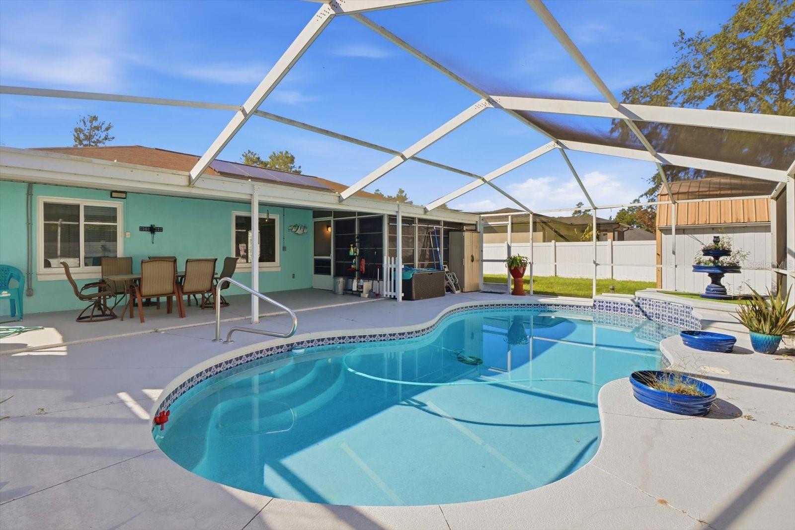 SEU OÁSIS NA FLÓRIDA - UMA LINDA CASA COM PISCINA PARA DESFRUTAR O ANO TODO! Bem-vindo a esta casa pronta para morar com 3 quartos e 2 banheiros que oferece mais de 2.800 pés quadrados de conforto e estilo - perfeita para aposentados, profissionais ou compradores de primeira viagem que buscam conveniência, eficiência e relaxamento. Não se deixe enganar pelo ano de construção - esta casa foi cuidadosamente atualizada com atualizações projetadas para uma vida fácil e baixa manutenção. As melhorias recentes incluem piso e carpete de pranchas de vinil de luxo totalmente novos, uma nova lavadora e secadora, um novo aquecedor de água, um sistema HVAC atualizado, um sistema de tratamento de água, ventiladores de teto, tratamentos de janela, uma geladeira de aço inoxidável e janelas de painel duplo com classificação de furacão em toda a propriedade. Os recursos adicionais incluem um sistema de segurança com fio e uma planta dividida desejável que oferece privacidade e conveniência. Saia para o seu oásis privado! Aproveite a cintilante piscina com cascata sob uma espaçosa gaiola com proteção para pássaros, perfeita para entretenimento ou simplesmente para aproveitar o sol da Flórida. Ao lado da piscina, uma varanda totalmente fechada com tela de vinil oferece o local ideal para o café da manhã ou uma tarde relaxante com um bom livro. O quintal é totalmente cercado com cerca de privacidade em PVC branco de 6 pés e portões laterais duplos, oferecendo segurança e amplo espaço para atividades ao ar livre. Uma versátil oficina/"caverna-galpão" com eletricidade, dois lofts e portas duplas expande ainda mais suas possibilidades. Com localização central entre The Villages e Ocala, esta casa oferece acesso rápido a lojas, restaurantes, instalações médicas e escolas - com a I-75 nas proximidades para facilitar o deslocamento. Experimente o melhor da Flórida vivendo nesta casa convidativa e com baixo consumo de energia. Por que esperar para construir? Mude-se e comece a desfrutar da sua piscina subterrânea e do estilo de vida da Flórida hoje mesmo! A eficiência energética brilha com novas janelas de painel duplo resistentes a furacões e um sistema de painel solar totalmente pago que mantém os custos de serviços públicos baixos durante todo o ano. Os recursos adicionais incluem um sistema de segurança ADT e uma planta dividida desejável que oferece privacidade e conveniência. Saia para o seu oásis privado! Aproveite a cintilante piscina com cascata sob uma espaçosa gaiola com proteção para pássaros, perfeita para entretenimento ou simplesmente para aproveitar o sol da Flórida. Ao lado da piscina, uma varanda com tela de vinil oferece o local ideal para o café da manhã ou uma tarde relaxante com um bom livro. O quintal é totalmente cercado com cerca de privacidade em PVC branco de 6 pés e portões laterais duplos, oferecendo segurança e amplo espaço para atividades ao ar livre. Uma versátil oficina/"caverna-galpão" com eletricidade, dois lofts e portas duplas expande ainda mais suas possibilidades. Com localização central entre The Villages e Ocala, esta casa oferece acesso rápido a lojas, restaurantes, instalações médicas e escolas - com a I-75 nas proximidades para facilitar o deslocamento. Experimente o melhor da Flórida vivendo nesta casa convidativa e com baixo consumo de energia. Por que esperar para construir? Mude-se e comece a desfrutar da sua piscina subterrânea e do estilo de vida da Flórida hoje mesmo!