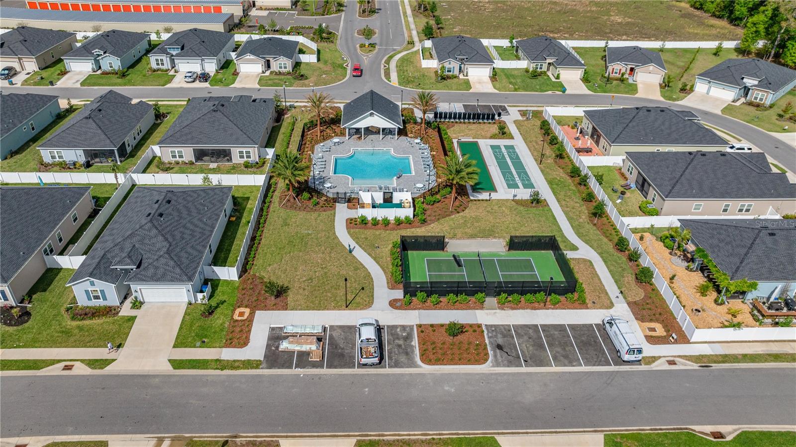 Bem-vindo para casa nesta praticamente nova jóia construída em 2023, meticulosamente mantida e cuidadosamente projetada para conforto e conveniência! Entre para descobrir pisos de ladrilhos elegantes em todas as áreas comuns, complementadas por carpetes macios nos quartos para aquele toque aconchegante. O coração da casa é a cozinha moderna e espaçosa, com armários deslumbrantes de estilo shaker branco, bancadas elegantes de granito, amplo espaço de balcão, uma grande despensa e uma ilha central perfeita para reunir e jantar casual. A sala de estar brilhante e aberta convida a luz natural, criando uma atmosfera arejada ideal para relaxar ou divertir. As portas francesas o levam ao Den Private, um espaço versátil perfeito para um escritório em casa, sala de mídia ou retiro de hóspedes. A expansiva suíte primária oferece espaço abundante, luz natural e um luxuoso banho de banheiro privativo equipado com vaidades duplas, um closet de tamanho generoso e um lindo chuveiro de barragem de cerâmica. Os hóspedes se sentirão em casa no quarto secundário considerável, convenientemente situado perto de outro banheiro de hóspedes lindamente decorado, também com um espaçoso chuveiro. Saia para o seu grande lanai, com vista para o lindamente paisagístico e parcialmente cercado, adornado com canteiros encantadores. Desfrute de vistas serenas e manhãs deliciosas cumprimentando os animais vizinhos, incluindo vacas e até um burro! Esta comunidade deliciosa oferece comodidades fantásticas, incluindo uma piscina comunitária cintilante, e possui uma localização privilegiada perto do mundo, Stone Creek, supermercados, instalações médicas, shopping centers e opções de entretenimento vibrantes. Não perca - escaste sua turnê privada hoje e experimente o charme e conforte que esta casa tem a oferecer!