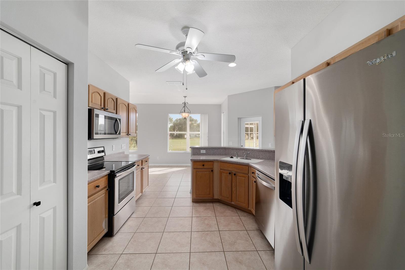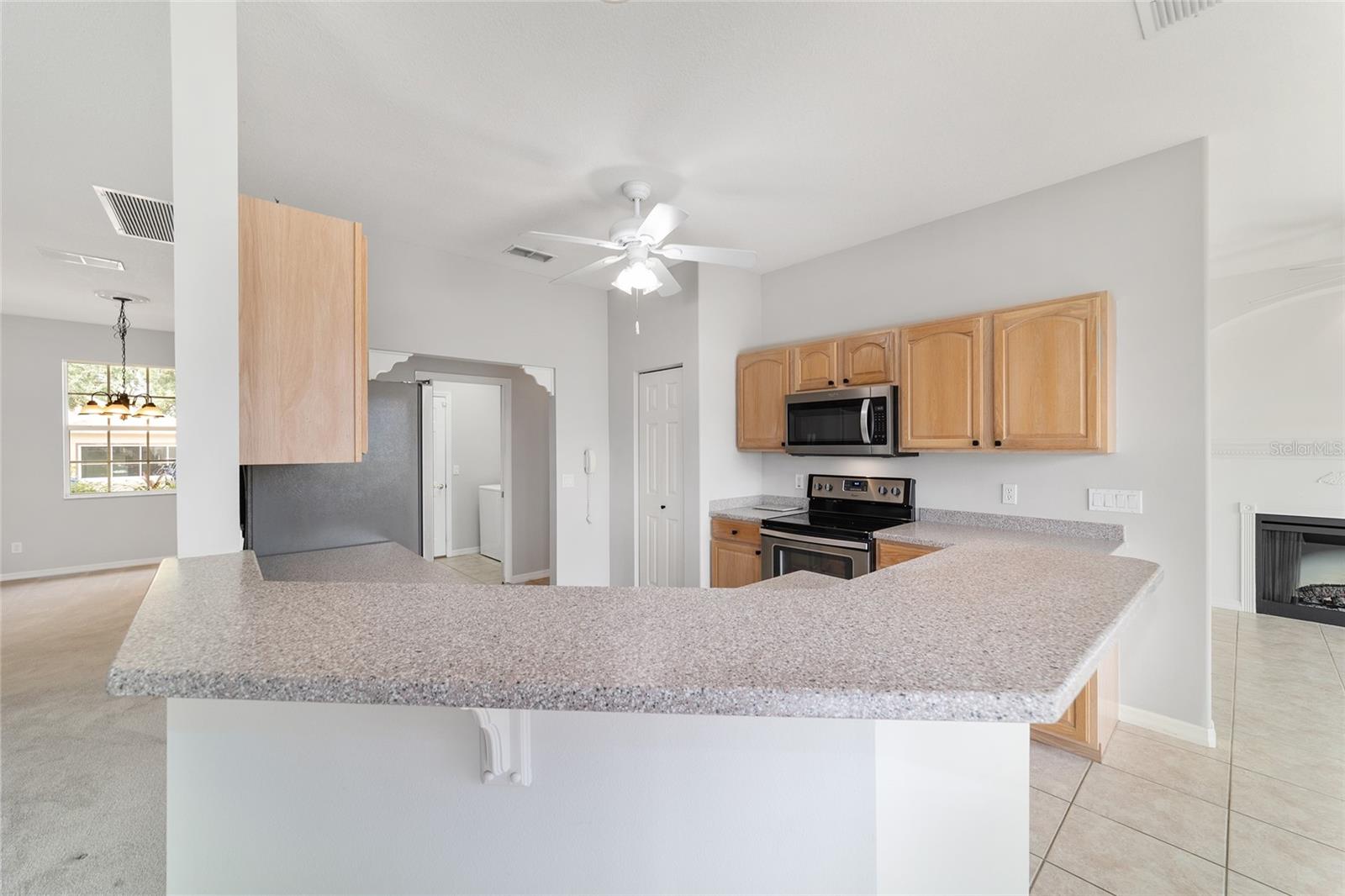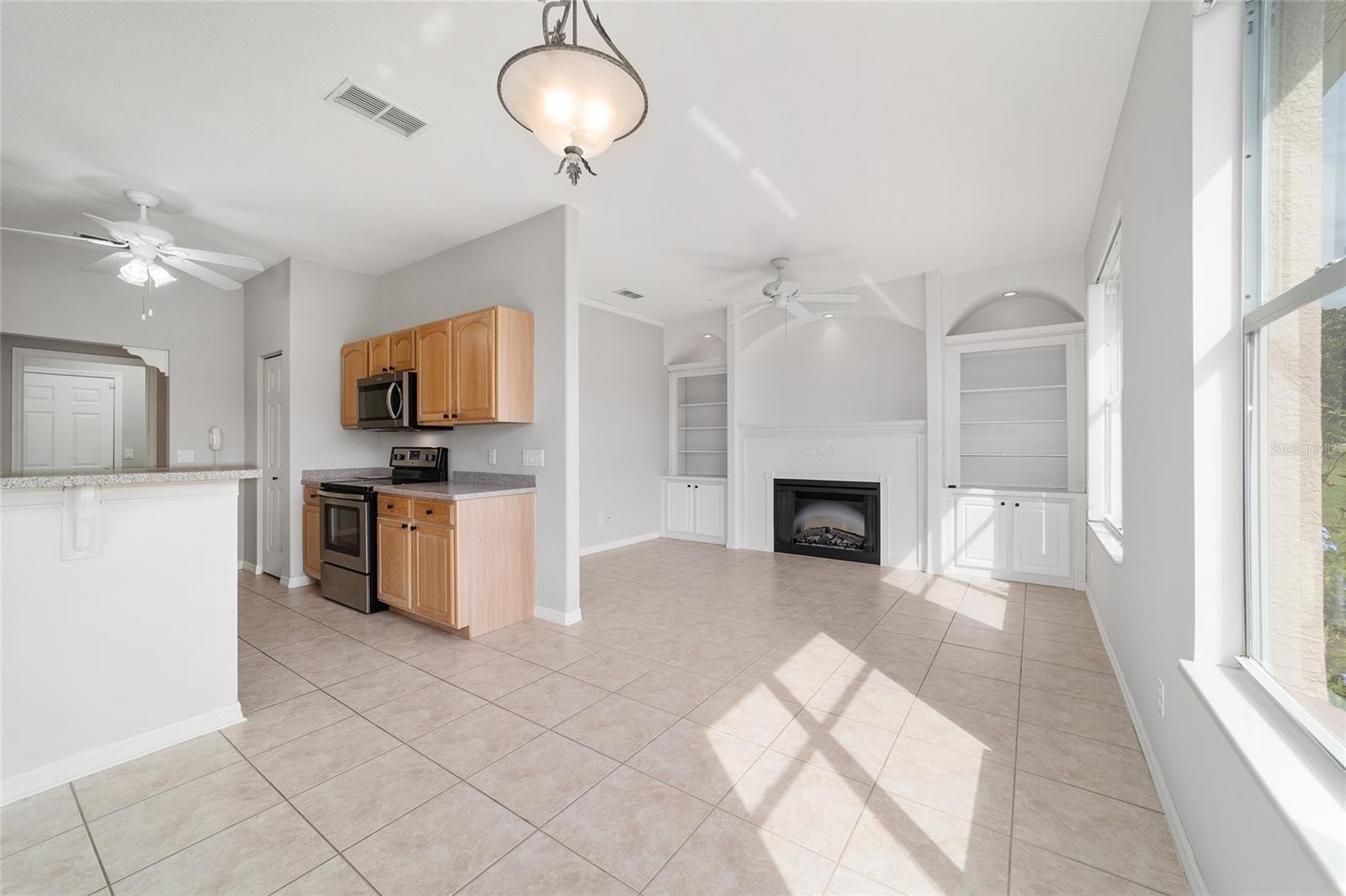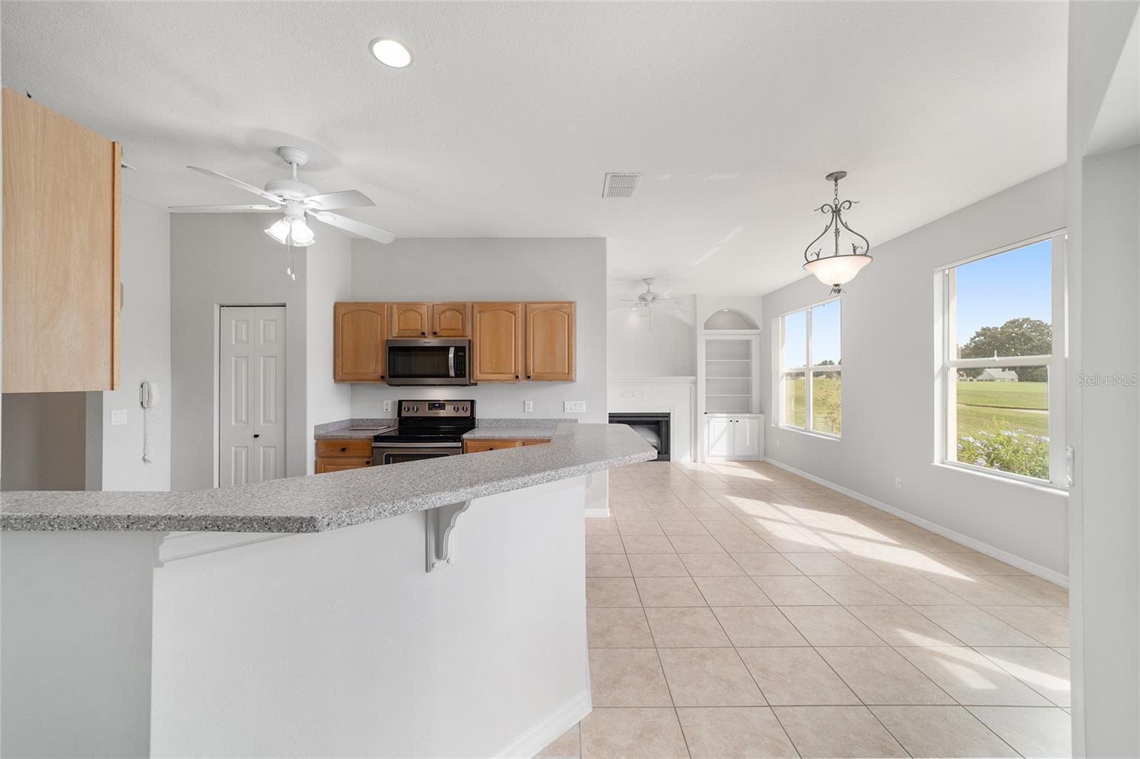 Vendedor motivado! Casa do Campo de Golfe no 11º Green! Bem-vindo a este encantador modelo de Jamestown com 2 quartos, 2 banheiros e uma espaçosa garagem para 2 carros. Entre em uma sala de estar formal e área de jantar, com controles deslizantes que oferecem uma vista serena do campo de golfe. A cozinha flui para uma aconchegante copa e sala de família, completa com estantes embutidas e lareira elétrica. A suíte principal possui controles deslizantes para a varanda, um grande banheiro privativo com chuveiro de vidro recém-atualizado e armários e balcões abundantes. No lado oposto da casa, você encontrará um quarto de hóspedes privativo e banheiro completo. Desfrute da vida ao ar livre na varanda grande com ventiladores de teto, perfeita para relaxar enquanto aprecia a vista do campo. As principais atualizações incluem: Telhado (2022) HVAC (TRANE de 3 toneladas, 2023), repintura externa programada para 2027 (o comprador pode escolher as cores). Como bônus, um carrinho de golfe 2021 Evolution (menos de 700 milhas!) Está incluído na venda. Localizada no principal condomínio fechado com mais de 55 pessoas de Ocala, esta propriedade oferece comodidades em estilo resort e acesso conveniente em carrinho de golfe a dois shopping centers. Um achado raro no campo – não perca esta oportunidade!