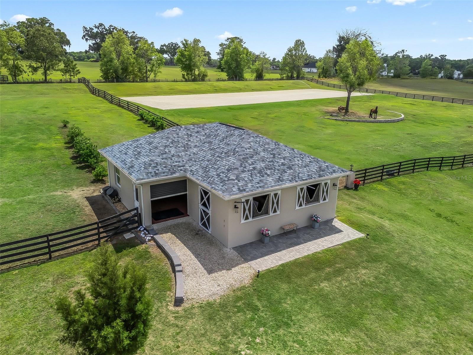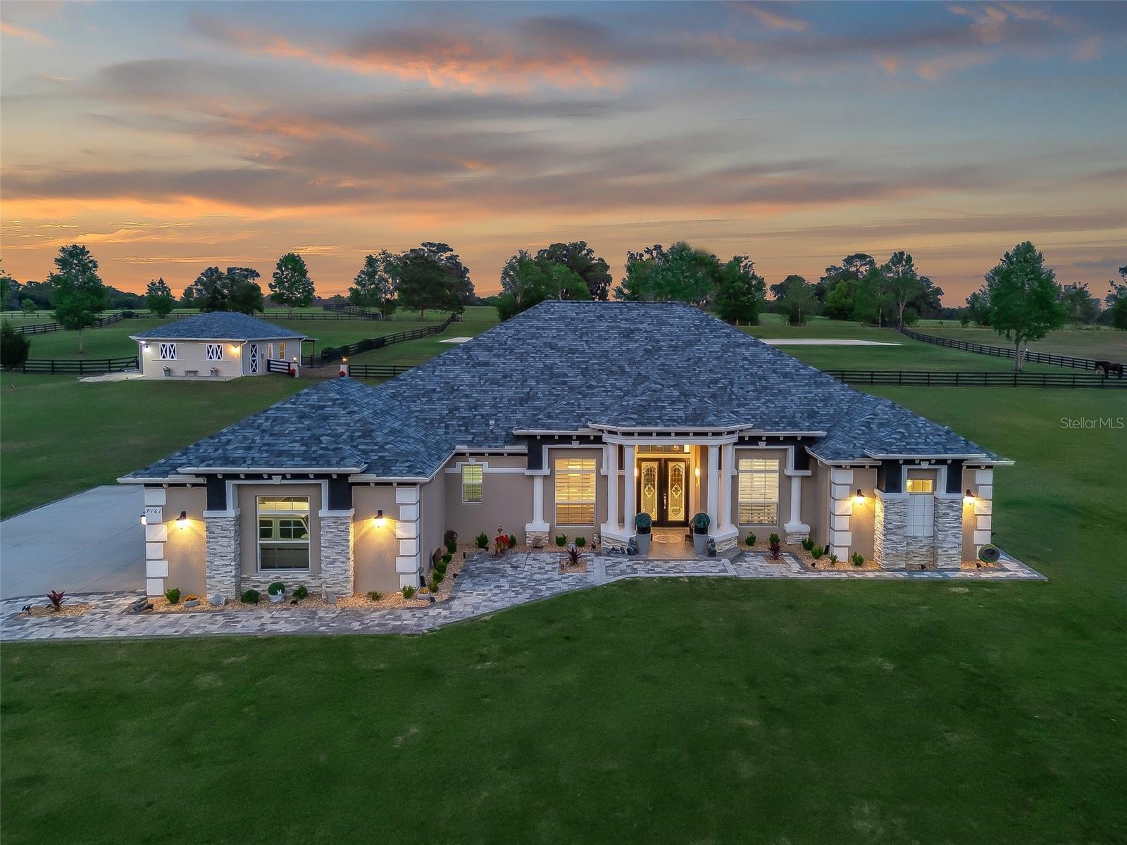 Bem -vindo à sua propriedade dos sonhos - onde a elegância atemporal encontra a excelência equestre em 5,25 acres mantidos impecavelmente mantidos. A poucos minutos do centro de Ocala, com menos de 20 minutos para o centro equestre mundial e dentro de 1,5 horas de Tampa e Orlando. Entre através de uma nova entrada fechada movida a energia solar com colunas personalizadas para encontrar um santuário privado e totalmente cercado com três pastagens. O celeiro de bloqueio personalizado de 2023 oferece barracas de grandes dimensões, sala de aderência a/c, lustres, barraca de lavagem, tapetes premium, fãs apertados de vapor interior e externo, pavimentadores de borracha de luxo - projetados para conforto e função. Uma arena de grau profissional de 2024 (aproximadamente 80x220 pés) apresenta base durante todo o ano, sistema de aspersão e drenagem para pilotagem ideal. A residência principal recebe você com pilares imponentes e portas francesas acessíveis a deficientes. No interior: pisos de mármore falso, lustres de hardware de restauração, tetos de bandeja de 10 a 11 pés e um layout de quartos divididos com suíte primário privado. A cozinha do chef brilha com aparelhos Bosch, pia da fazenda, armários personalizados, barra seca e balcões de lançamento - perfeitos para entretenimento. A sala se abre para vistas do pasto rolante e um lanai selecionado com uma piscina de água salgada (cachoeiras duplas, sistema de transbordamento) e cozinha externa completa. Atualizações recentes: tinta interior/externa, câmeras POE com fio, sistema de alarme, 2022 gerador de casa inteira com tanque de propano de 500 m, amaciador/filtração de água, estação de carregamento Tesla, painéis elétricos extras e nova conexão RV. Com utilidades baixas, acabamentos sofisticados e comodidades equestres em uma localização privilegiada, esta propriedade oferece luxo e funcionalidade. MOVIMENTO PRONTO-FUNHINGS OPCIONAL, VÍDEO DISPONÍVEL DISPONÍVEL, INSPEÇÃO DE JULHO DE 2025