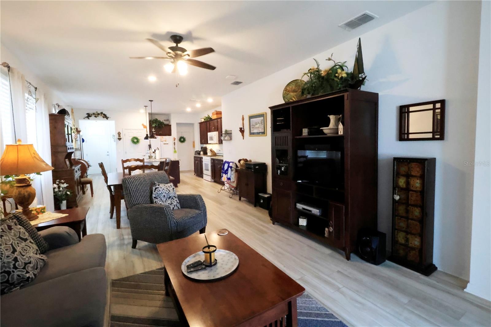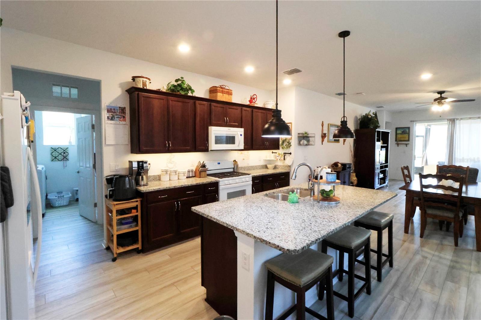 Preço reduzido! Esta casa está localizada na comunidade Premiere 55+ de On Top of the World, na Crescent Ridge Unit IV. É um modelo de rimon atualizado com uma sala de flex/bônus. A casa possui um conceito aberto com planta baixa dividida no quarto. A cozinha inclui uma ilha com luzes de estar e soltar por cima, bancadas de granito, muitos armários com moldagem por gabinete e iluminação de gabinete. Há uma bela lanai exibida na sala de estar. Existem muitas atualizações nesse modelo, que incluem pisos de tábua de vinil de luxo com carpete nos quartos. Além disso, ventiladores de teto em quartos, área de estar e lanai. Do lado de fora, existem pavimentadoras na área do convés e cercas de vinil branco. Esta linda casa é melhor que a nova, sendo construída em 2022. Todo o trabalho foi feito!
