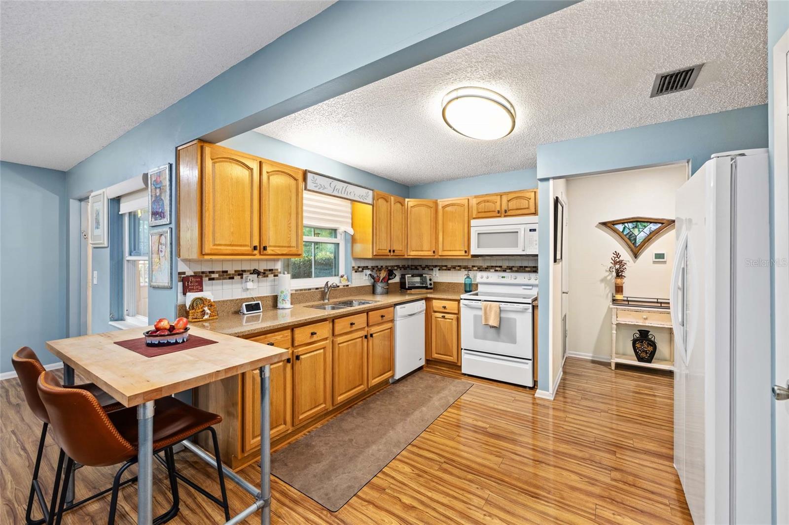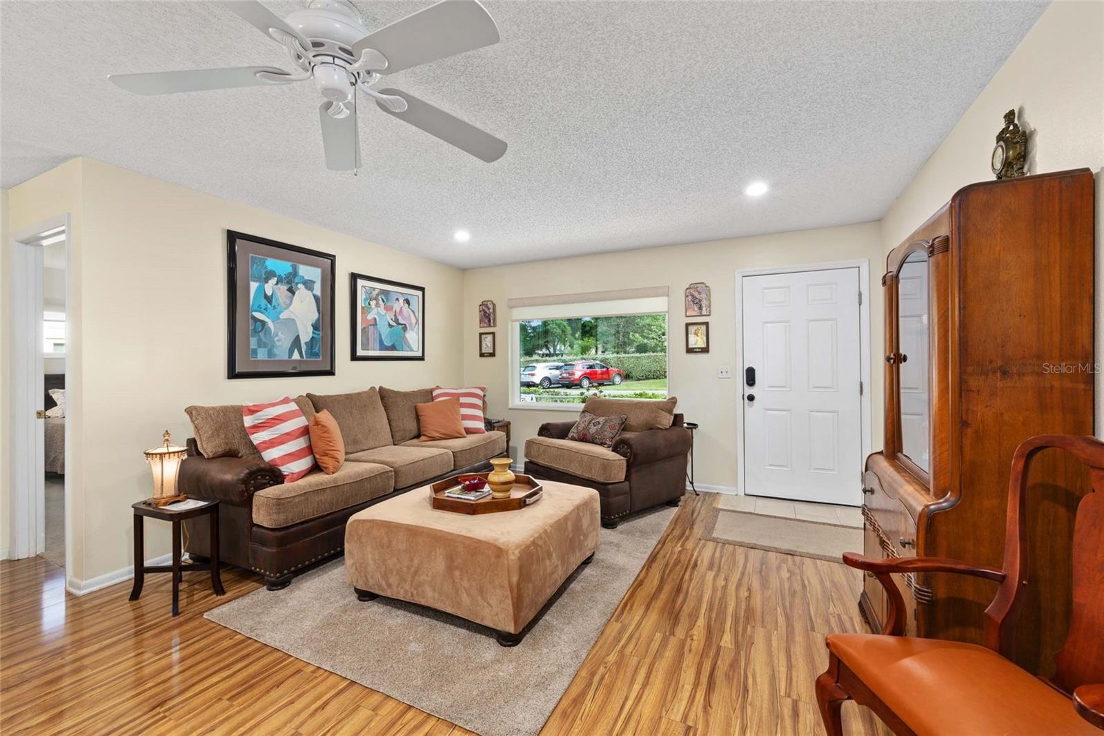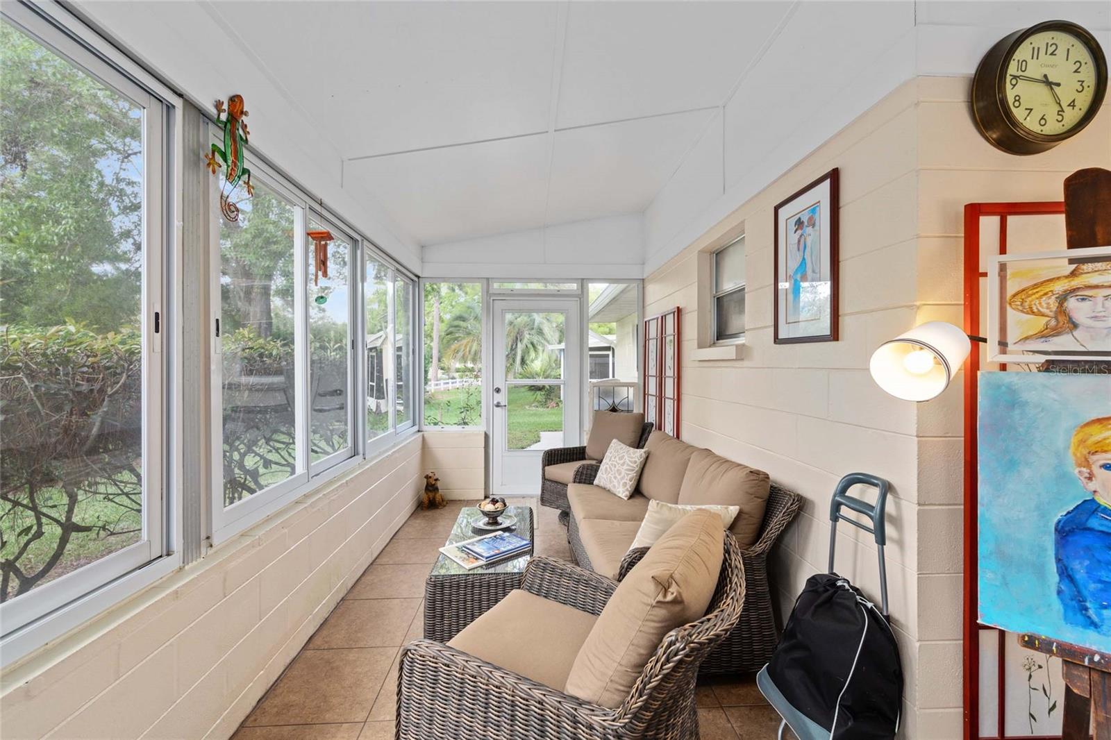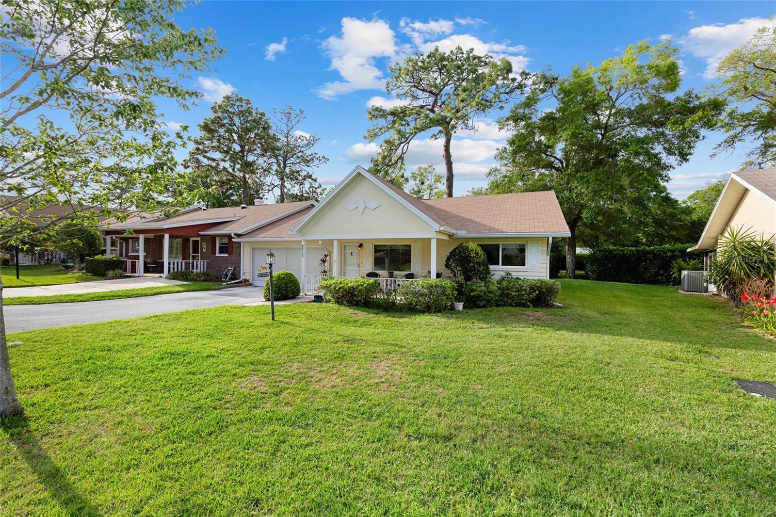 Este modelo de Montgomery de unidade final mantida imaculadamente mantida, recebe você para tornar este seu lar para sempre no altamente procurado no topo do mundo! Antes mesmo de entrar na casa, você percebe a varanda da frente e a calçada, que são adornadas com belas pavimentadoras, bem como a grande janela de imagens da sala, permitindo que a luz flua para esta casa acolhedora. A área de estar/jantar é espaçosa, proporcionando muito espaço para entretenimento. A cozinha com bancadas sólidas de pedra, é acessível à sala da família, que fica na parte traseira da casa, proporcionando privacidade e visão completa do quintal privado. Um Lanai de tamanho generoso, que está sob calor e ar, oferece espaço de vida adicional que pode ser usado de várias maneiras. Esta casa possui dois quartos e dois banheiros. A suíte no grande quarto primário foi atualizada com um novo chuveiro e iluminação. Um armário também complementa o quarto principal. As comodidades abundam nesta comunidade animada. Piscinas, centros de fitness, tênis, pickleball, softball, arco e flecha, bola de bocha, shuffleboard, sapatos de cavalo, campo de vôo de controle remoto, biblioteca e muitos clubes para mencionar. Se você quer uma bela casa que não precise de absolutamente trabalho, basta levar seus móveis para esta comunidade ativa de carros de golfe e mudar; Você encontrou sua nova casa!