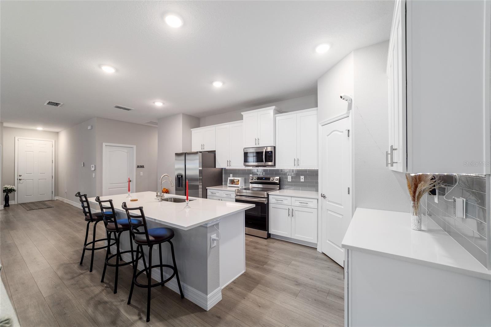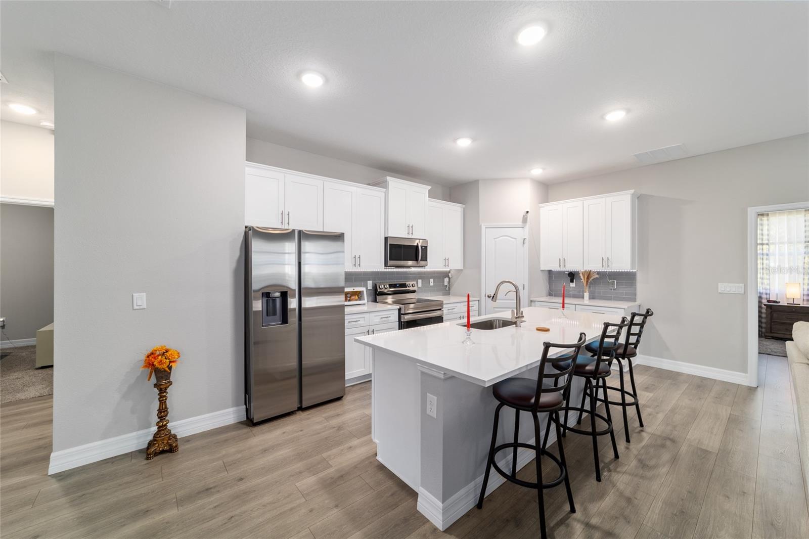 Melhoria de preços- US $ 370.000 e inclui gerador de residências (Ryobi 6.500 Watt Gasoline Powerd Gerator comprado em 2023 e usado apenas uma vez)! Entre em estilo e conforto com este lindamente mantido 4 quartos e 3 banheiros em casa de concreto, oferecendo 2.081 pés quadrados de espaço de estar, construído em 2022! Localizado em uma localização Prime Ocala, ao sul da SW 49th Avenue e ao norte da Hwy 484, com acesso rápido à I-75 e à Turnpike da Flórida, esta casa oferece muitas atualizações e conveniência sem o ônus de um HOA ou Taxas de CDD. Ao entrar, você é recebido por um conceito aberto, cheio de luz natural e tetos altos. A cozinha espaçosa flui sem esforço para a área de estar e jantar. As atualizações da casa incluem: aparelhos Samsung de aço inoxidável, incluindo lavadora e secadora. Belos armários de madeira com característica de fechamento suave. Sistema de amaciador de água e purificação de água adicionados em 2023. Piso LVP resistente a arranhões e água em áreas comuns e quarto principal. A casa também está equipada com um pacote doméstico inteligente, oferecendo automação moderna para maior segurança e eficiência energética. A suíte do proprietário é um verdadeiro retiro, gabando-se de tetos de bandeja, armários walk-in, um luxo luxuoso com vaidade de pia dupla e azulejo de grife, chuveiro fechado de vidro que oferece um spa como toque! Os banheiros sobressalentes também oferecem banheiras de azulejos atualizadas, uma vaidade de pia dupla em um banheiro e um quarto de suíte adicional perfeito para visitantes ou vida multigeracional. Aproveite o ar livre no pátio traseiro exibido com vista para um metro completamente cercado, completo em 2024. A casa está equipada com um sistema de irrigação, calhas de chuva, luzes de movimento e com fio para um sistema de segurança e câmeras. Esta casa está cheia de atualizações modernas, localização imbatível e recursos elegantes- agende sua exibição particular hoje e se apaixone por esta casa pronta para casa!