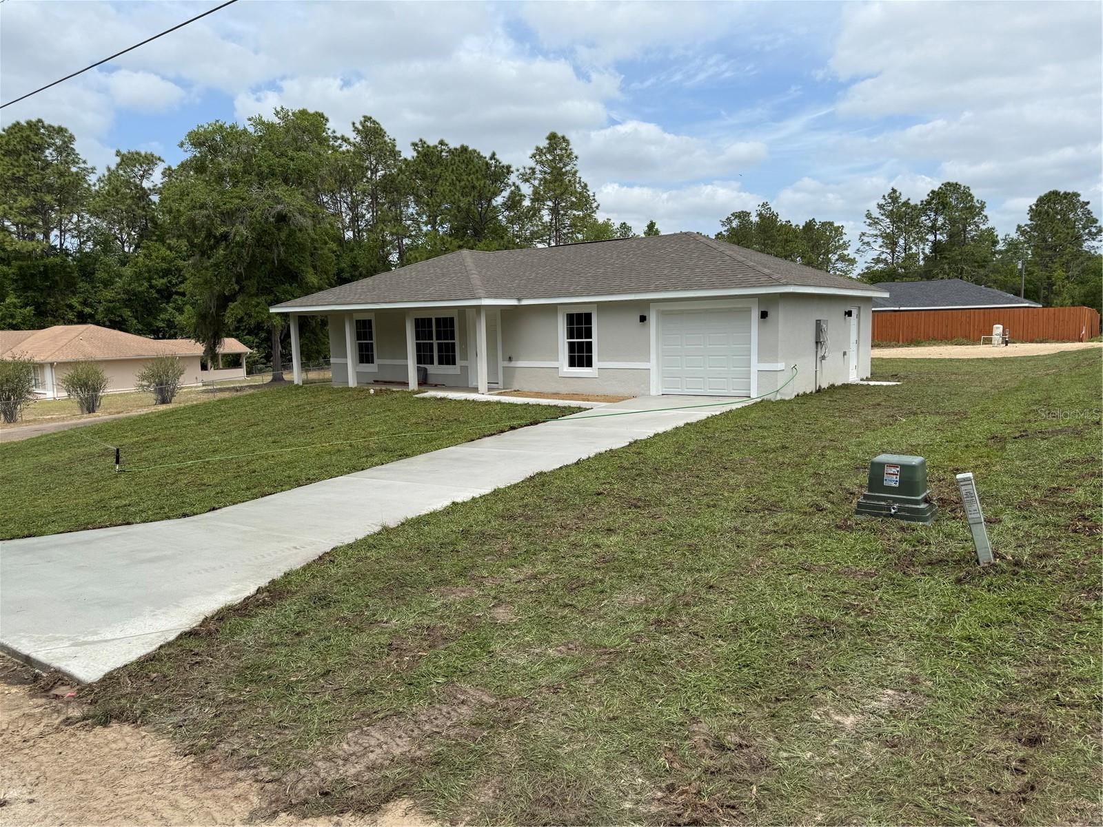 Pronto para mover-se! Casa recém -construída em comunidade tranquila. Plano dividido com teto abobadado, piso de laminado resistente à água, construção de blocos de concreto com acabamento de estuque, telhas arquitetônicas, área de estar na varanda da frente de 20'x5, lote de canto, séptico privado e poço particular.