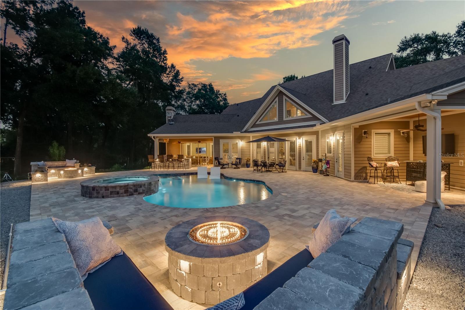 Localizado na tranquila área de Hill Shady, esta impressionante fazenda de cavalos da Flórida Central combina a vida de luxo com funcionalidade equestre. Situado em quase 5 acres fechados e fechados com carvalhos maduros, a propriedade oferece um ambiente privado e parecido com um parque. A casa principal de dois andares personalizada possui 4 quartos, 4 banheiros completos e 2 meio, mostrando acabamentos de luxo por toda parte. Os destaques interiores incluem tetos altos com bandeja, catedral e detalhes em capital, moldagem por coroa, embutidos e janelas amplas com vistas dos terrenos. A cozinha do chef oferece aparelhos de aço inoxidável, gama de gás, ilha central grande com bar de café da manhã, armários generosos e despensa, abrindo para um recanto de café da manhã e sala de família com lareira a gás e portas francesas para o convés da piscina. A suíte primária do primeiro andar possui uma lareira a gás, armários personalizados e um enluite no estilo de spa, com vaidades duplas, chuveiro e banheira de jacuzzi. No andar de cima são quartos adicionais, vários banheiros e uma sala de bônus versátil acima da garagem. Perfeito para entretenimento, a área de estar ao ar livre possui uma piscina e spa de água salgada personalizados, lanchonete coberto com cozinha de verão, bar embutido e vários fogueiras, todos complementados por um sistema de iluminação completo. Uma casa de carruagem personalizada isolada oferece acomodações flexíveis de hóspedes ou sogros, facilmente acessíveis, graças a uma nova via de pavimentação. Uma garagem de ônibus em tamanho normal e uma garagem para brinquedos de 2 baías também estão no local, oferecendo amplo espaço para veículos extras de todas as formas e tamanhos. As comodidades equestres incluem um celeiro de 2 salas com sala de alimentação e um pasto grande, facilmente adaptável para paddocks adicionais. Idealmente, a minutos do Florida Horse Park e a 30 minutos do World Equestrian Center (WEC), hits, OBS e Ocala International Airport, esta propriedade excepcional oferece uma combinação incomparável de vida de luxo e conveniência equestre.