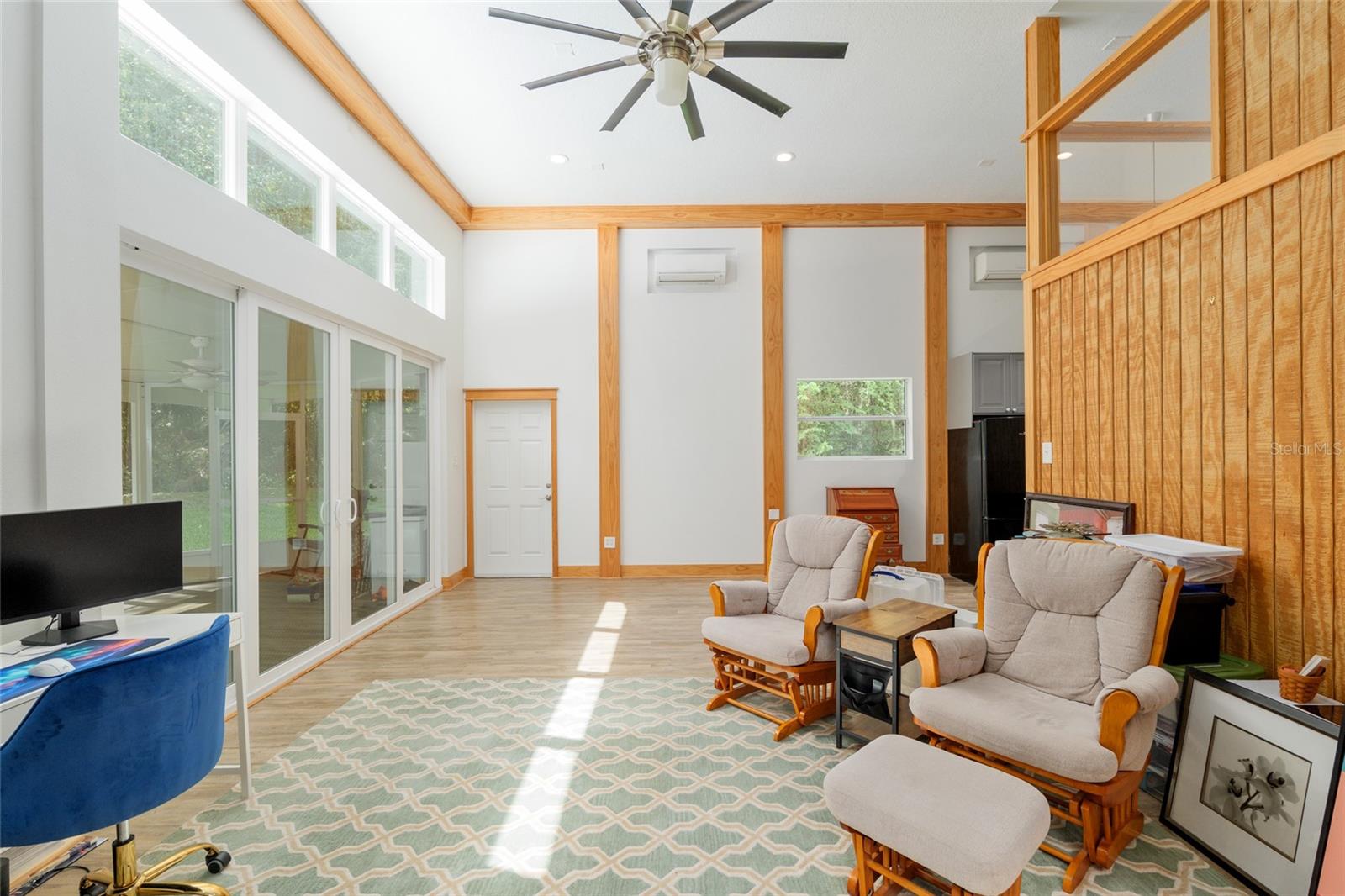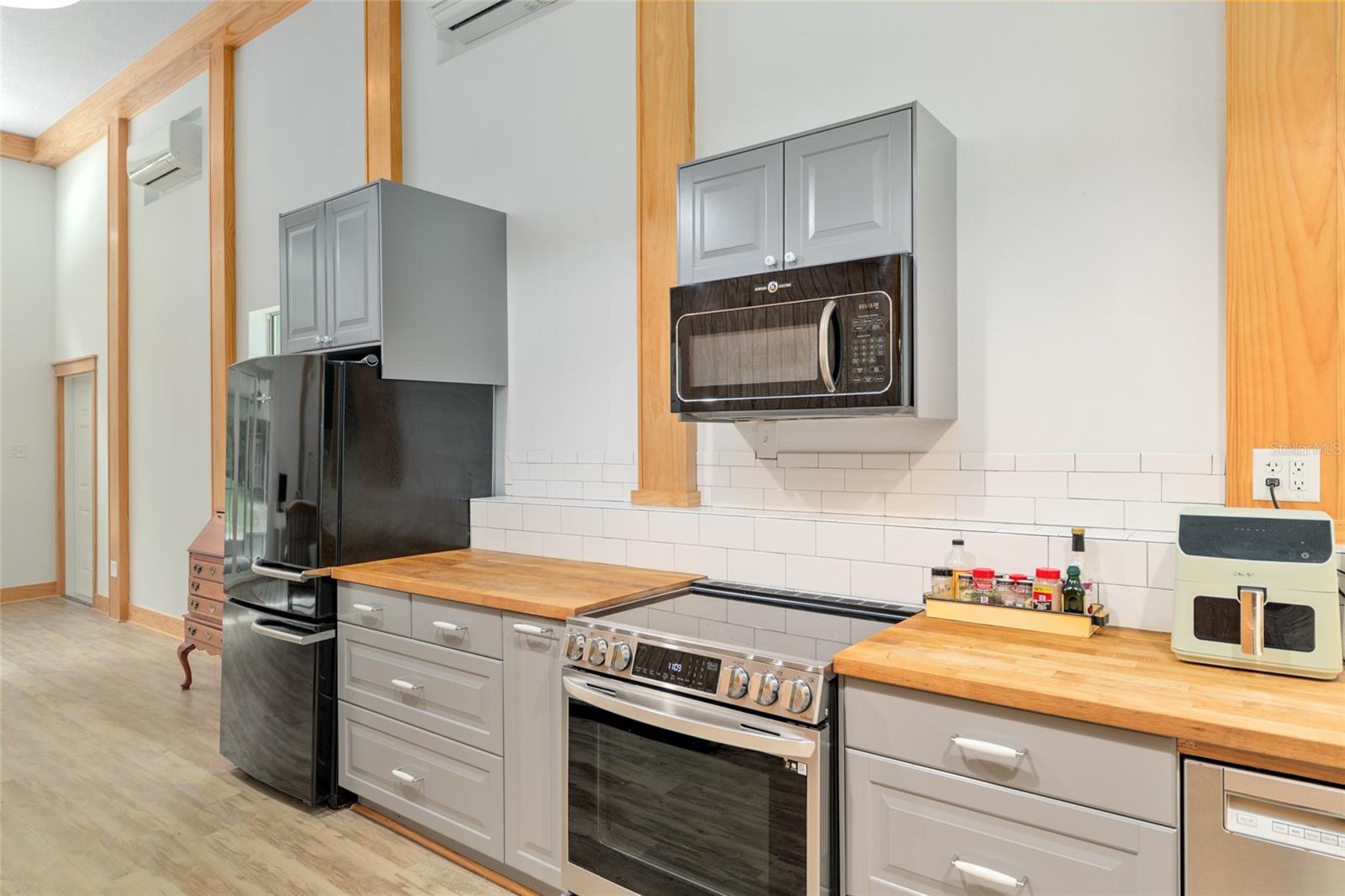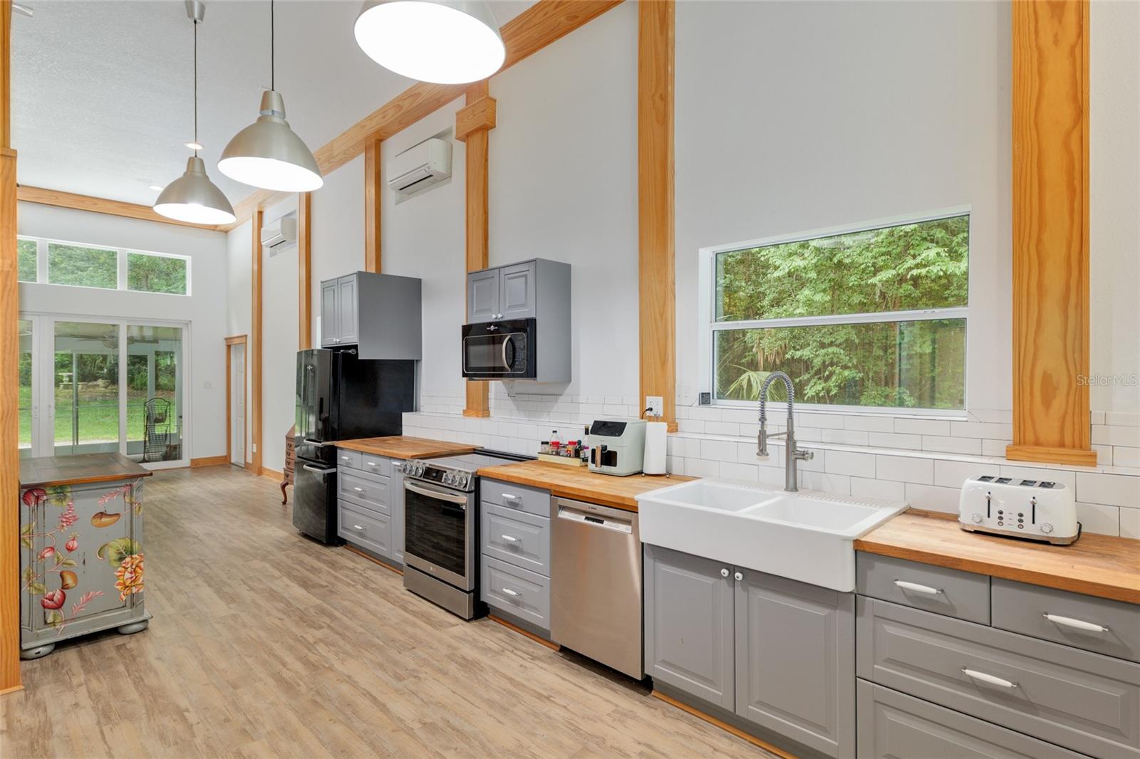 Duas lindas casas em 5 acres isolados e cercados no coração de Se Ocala e o altamente desejável corredor 475. A casa principal é uma garagem de 3/2.5/2 carros com 2000 pés quadrados vivos com um novo telhado arquitetônico e 3 clarabóias em 2024. As áreas principais, incluindo a suíte primária, têm pisos de madeira reais e tetos e paredes de madeira personalizados. A sala de estar possui um teto de feixe de catedral, lareira a lenha frontal de pedra com um plano aberto para a área de jantar e cozinha. A cozinha leve e brilhante possui uma barra de café da manhã, pia de estilo agrícola, ilha de cozinha com capuz inoxidável, utensílios de aço inoxidável, incluindo uma geladeira com vista para vidro, forno de parede e microondas, lava -louças de duas gavetas, balcões de granito, caminhada em despensa e paredes de lap de madeira. O quarto principal é de 14 'x 19' com um closet, banheiro privativo, caminhe no chuveiro e penteado de madeira de granito com pias duplas. Segundo e terceiro quartos também têm paredes e tetos personalizados de madeira. Lavanderia tem arruela e secadora de carga frontal e meio banho. Há um adorável oásis de pátio de pavimentação paisagístico do lado de fora, com uma banheira de hidromassagem e chuveiro ao ar livre no quintal isolado. A frente da casa tem um pátio em camadas e paisagismo com canteiros e uma sala de tela de 8 'x 16' para apreciar a privacidade de toda essa propriedade da qual nenhuma outra casa pode ser vista. Upgrades include a whole house water softener system with ultraviolet light purifying, reverse osmosis water at kitchen sink & ice maker, a 19 Seer AC system, new water heater, Anderson windows, newer drain fields (one for each home), utility shed for each home, irrigation system, a golf cart, cedar dry sauna and a 400 Amp electric service backed up by a commercial diesel generator that will run both homes with AC's in uma queda de energia. A segunda casa é um espaço de 1475 pés quadrados que possui um teto alto, com estilo industrial com design de loft. Todo o edifício é eficiente em termos de energia, com paredes de aço isoladas icyneno e teto, janelas de armação de vinil isoladas e sistema CA dividido em Mini Split com várias cabeças de ventilador. Esse plano aberto, o espaço acentuado de madeira tem luz natural de todas as janelas altas e portas de vidro. Há uma cozinha totalmente equipada com aço inoxidável e utensílios pretos, armários cinzentos, balcões de açougueiro, abertos à sala de estar de um lado e jantar do outro. O quarto no andar de baixo tem um banheiro de azulejos com banheira/chuveiro e uma vaidade de mármore. O segundo quarto fica em um loft fechado de vidro para privacidade, juntamente com seu próprio banheiro com chuveiro e vaidade de madeira personalizada. Lavanderia dentro de lavanderia, que também tem conexões de afundamento. A grande varanda de 12 'x 29' tem privacidade das árvores entre as duas casas, juntamente com um pátio em toda a frente da casa. Esta ótima localização, juntamente com seu belo cenário privado, é o que você não vai querer perder.
