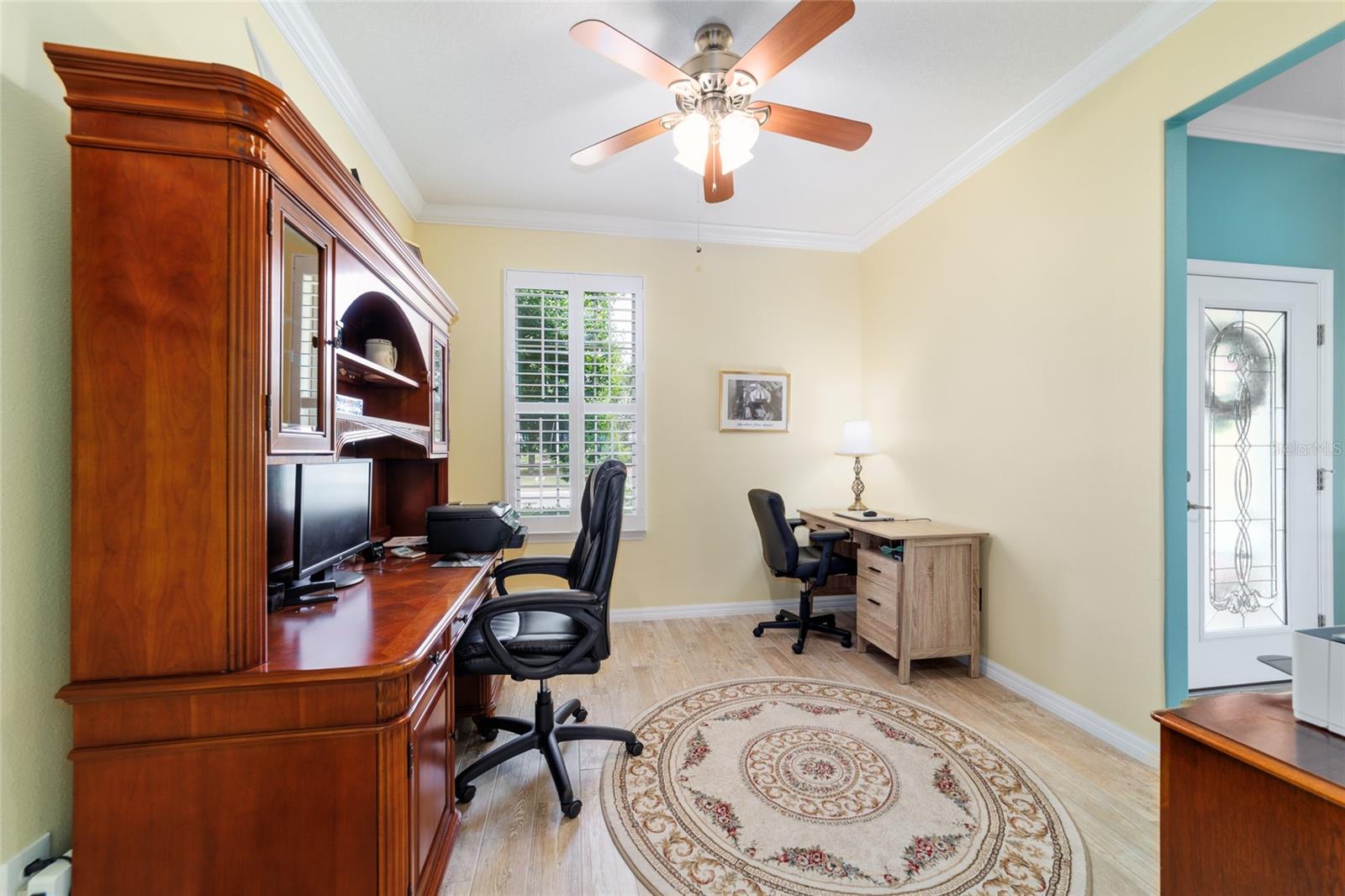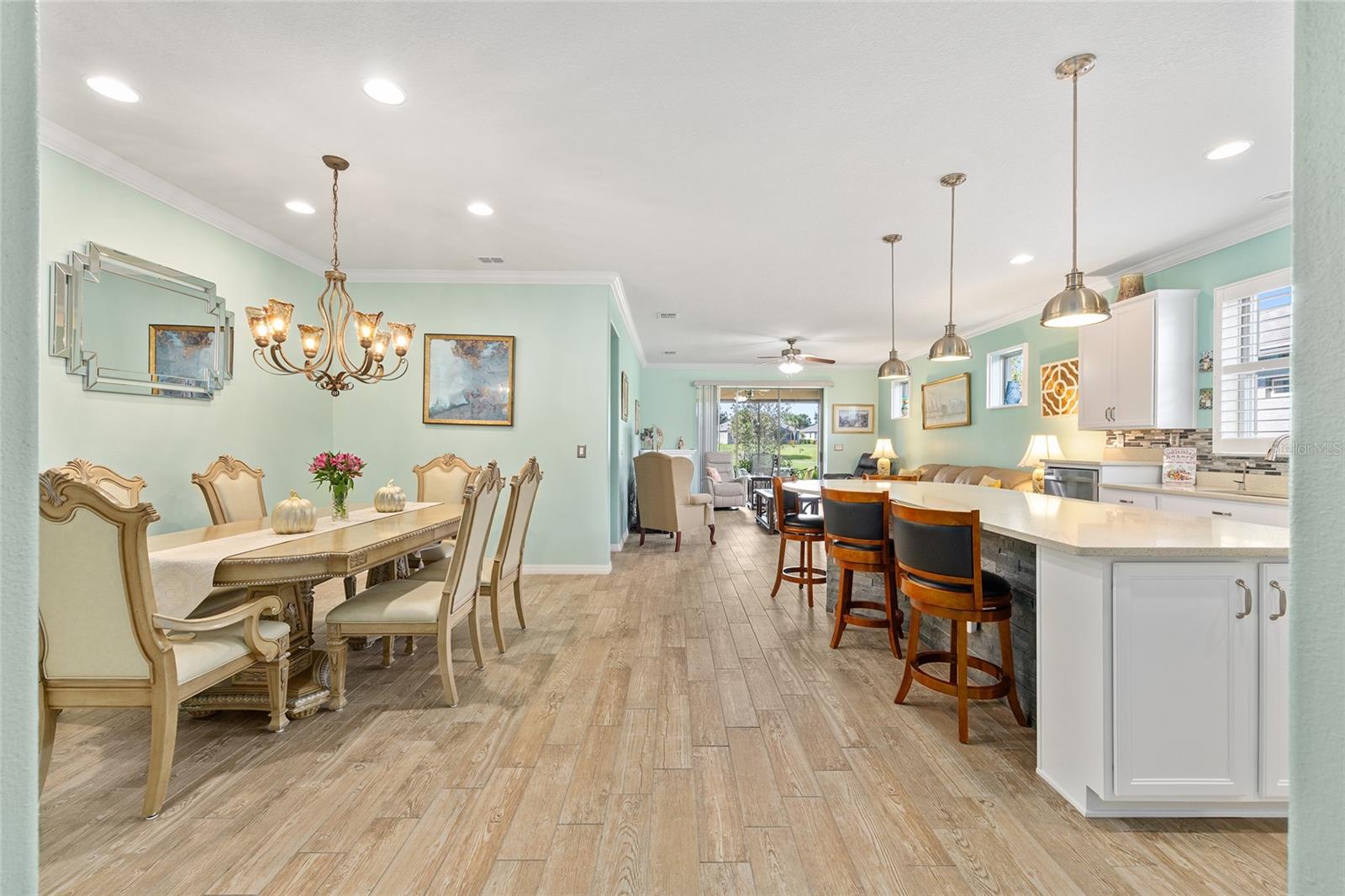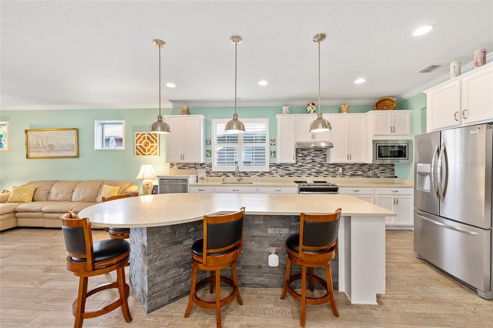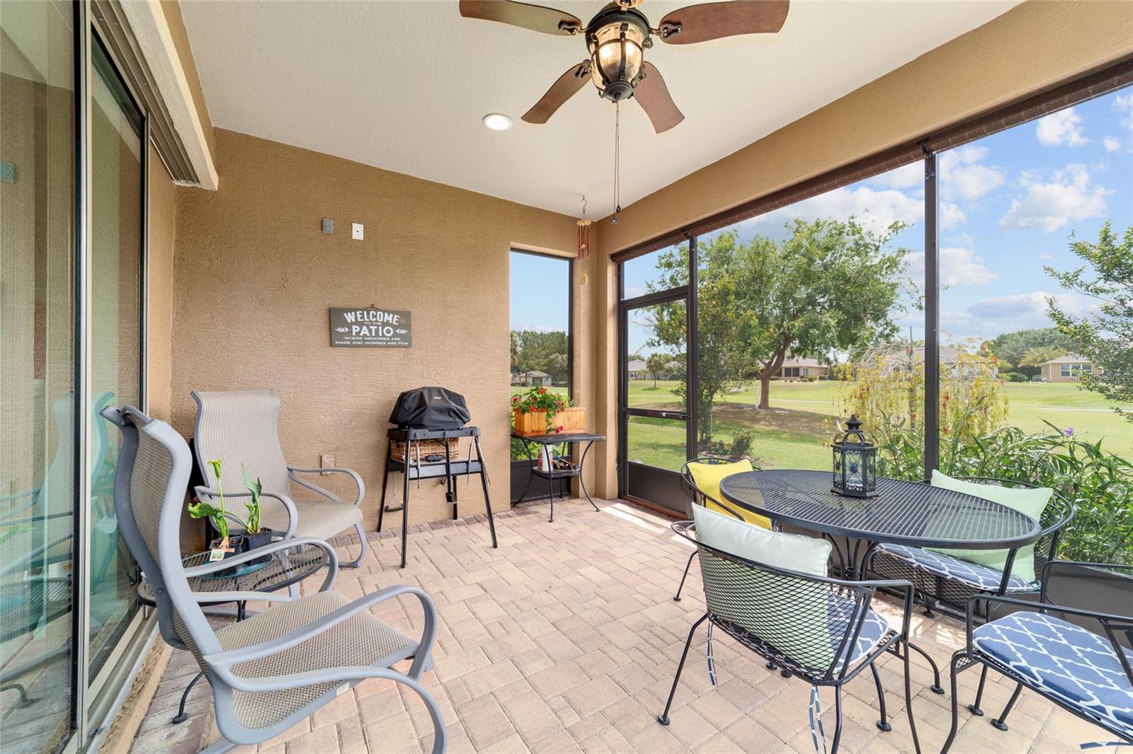 Vistas deslumbrantes do campo de golfe aguardam! Este modelo Martin Ray espaçoso e lindamente projetado, com sala flexível e loft, fica em um lote premium que oferece vistas panorâmicas inestimáveis da caixa do tee do 6º buraco. Situada no condomínio fechado de 55+ Stone Creek, que oferece comodidades premium em estilo resort, esta casa oferece extras e upgrades a cada passo. A atratividade do meio-fio está repleta de belo paisagismo maduro, detalhes em pedras empilhadas, um pórtico flanqueado por colunas, iluminação externa atualizada e meio-fio decorativo de concreto com cobertura de solo rochoso envolvendo o perímetro da casa. Os acabamentos elegantes continuam quando você entra através de uma bela e nova porta de vidro embutida que se abre para espaços iluminados e iluminados, oferecendo piso de tábuas elegante e atualizado, iluminação embutida de LED embutida, sancas e venezianas de luxo por toda parte. A cozinha do chef apresenta armários renovados, eletrodomésticos de aço inoxidável KitchenAid atualizados com uma máquina de lavar louça de altura confortável, bancadas de quartzo, armários extraíveis convenientes, uma despensa personalizada e uma grande ilha com elegante iluminação pendente de níquel e uma base com detalhes em azulejos. A versátil sala de reuniões possui uma lareira elétrica e controles deslizantes de vidro que se abrem para a varanda, perfeita para relaxar ou se divertir ao ar livre enquanto aprecia a vista relaxante do campo de golfe. A suíte do proprietário oferece um espaçoso closet personalizado e uma grande janela que proporciona ótima iluminação natural e vistas fantásticas do campo de golfe. O banheiro privativo atualizado apresenta uma pia dupla de grande altura confortável, vaso sanitário de altura confortável e um box de estilo romano recentemente atualizado com azulejos elegantes e uma janela de popa para iluminação natural. A área do loft está equipada com um segundo controlador de zona AC para maior eficiência energética e um quarto e banheiro adicionais proporcionam privacidade aos hóspedes visitantes. O loft também oferece uma grande área de armazenamento e um valioso espaço flexível que pode ser usado como sala de jogos, sala de mídia ou sala de hobby. Esta casa notável também possui uma garagem ampliada para dois carros com piso com acabamento em epóxi e uma área de 4 pés que oferece espaço para seu carrinho de golfe, um sistema de amaciante de água e um exterior recentemente pintado e selado para maior tranquilidade. Faça a sua mudança hoje mesmo e comece a desfrutar das inúmeras atividades e comodidades comunitárias que atendem a um estilo de vida ativo e vibrante, incluindo um campo de golfe, piscinas em estilo resort, quadras esportivas, spa, viagens organizadas e entretenimento e muito mais!