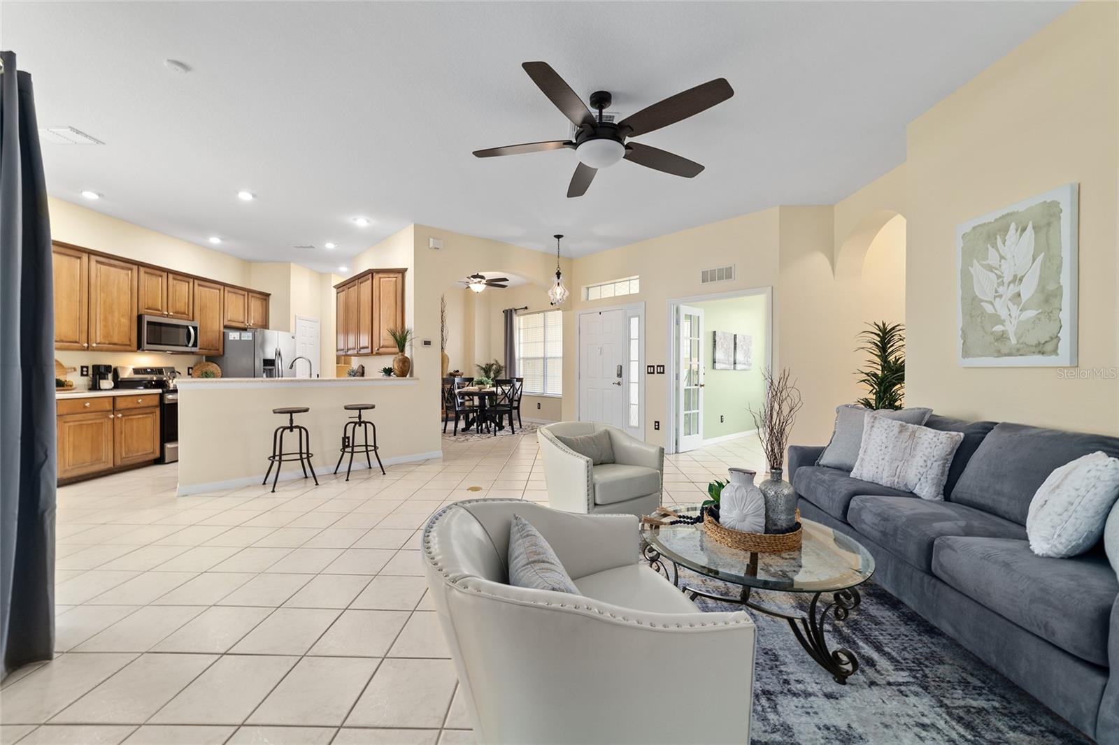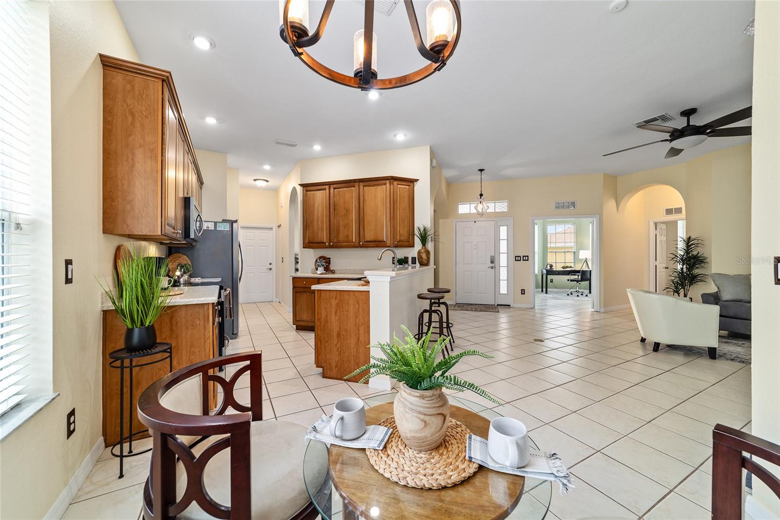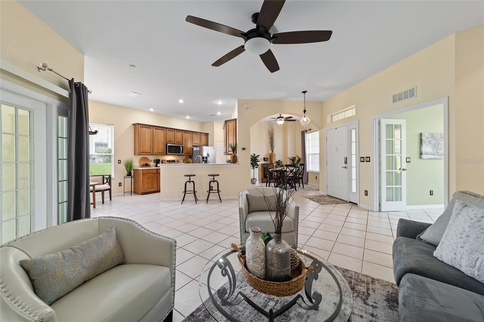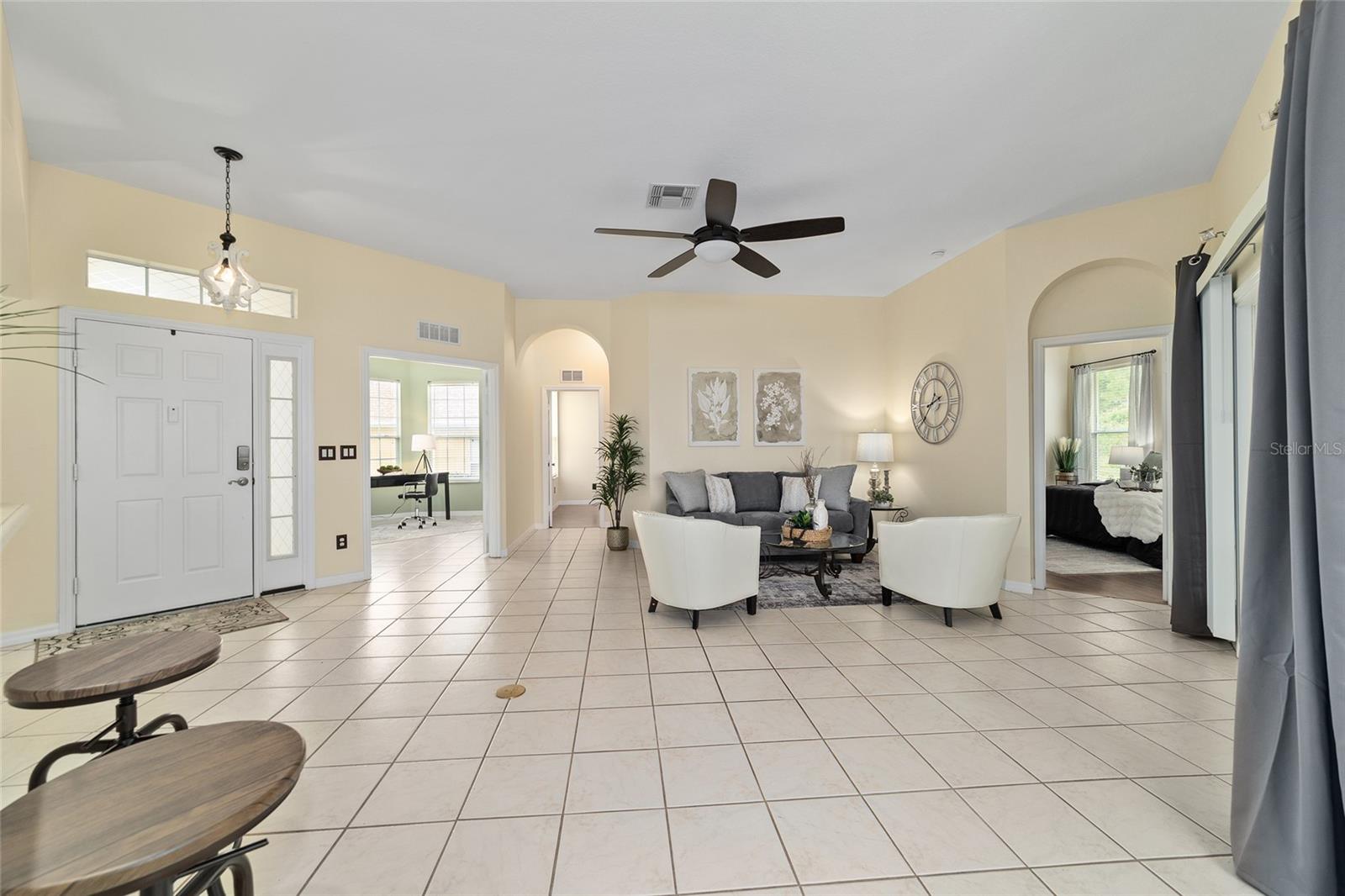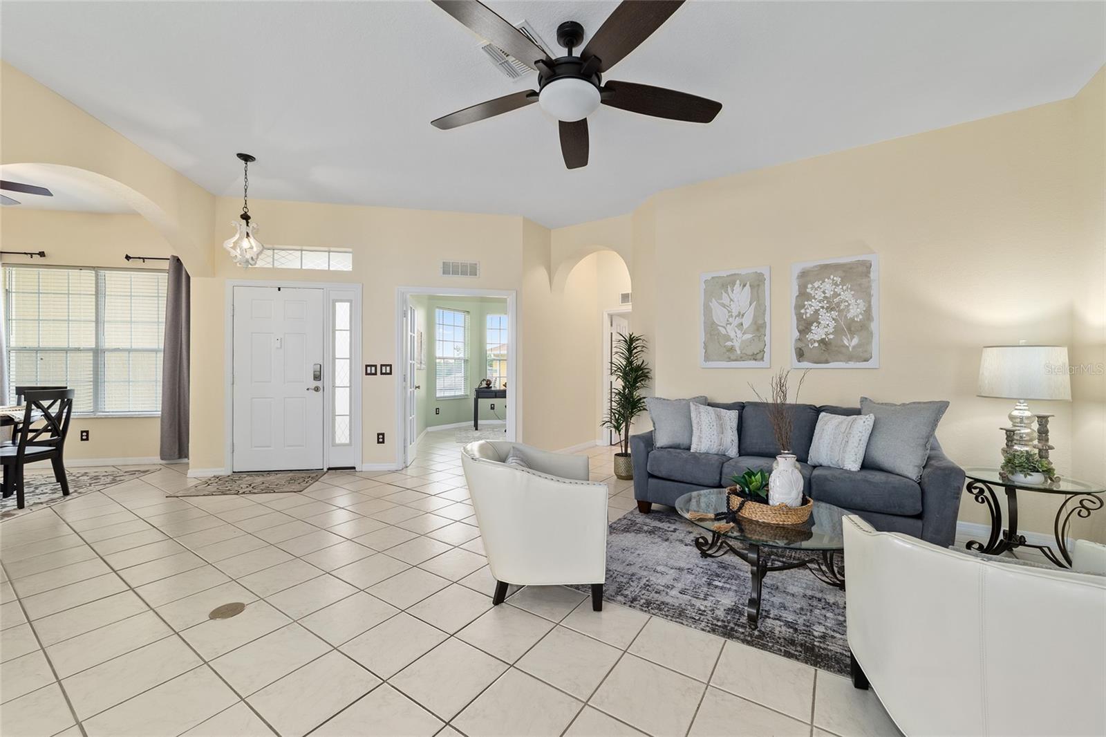 Este 2 camas, 2 banheiros com um escritório, que pode ser o terceiro quarto, está em excelente localização no coração de Ocala! Bela comunidade, com comodidades para toda a família, em Lake View Village, Ocala. Perto de compras, restaurantes e grandes estradas, mas partem em um bairro tranquilo e isolado, com belo paisagismo maduro. Esta adorável casa oferece uma varanda na frente para o seu prazer, bem como um lanai muito grande e fechado, perfeito para a vida ao ar livre da Flórida! A área arborizada atrás da casa garante a privacidade e uma bela vista das árvores. No interior, você encontrará tetos elevados, pisos de fácil assistência e ventiladores de teto em toda a casa. A planta baixa oferece uma sala de estar confortável, uma sala de jantar e um quarto primário separado para privacidade. O segundo quarto fica na frente da casa, bem como no escritório, que pode se tornar um terceiro quarto com um armário adicional. O quarto principal possui um adorável closet com recursos personalizados, e o muito grande EN-Suite anexado tem pias duplas, e um chuveiro adorável e um armário de água privado. Lake View Village tem muitas comodidades para toda a família, incluindo uma piscina, área de recreação, biblioteca, sala de exercícios, sala de eventos e também tem acesso ao Cala Country Club de Cala Hills. Esta é uma excelente oportunidade para criar uma vida inteira de lembranças, em uma bela casa - venha vê -lo hoje!